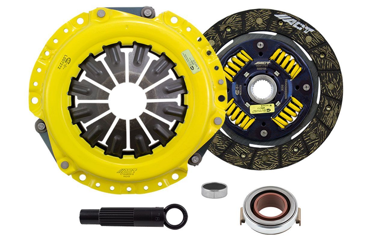 Advanced Clutch Transmission Clutch Kit - AR1-XTSS ⚠ Check if this part fits your vehicle Select your vehicle to confirm fitment before you buy. Select vehicle ACT Extreme Performance Street Sprung Clutch Kit Manufacturer: Advanced Clutch $607.00 Qty: Add to cart Ship to Select country United States of America Afghanistan Åland Islands Albania Algeria American Samoa Andorra Angola Anguilla Antarctica Antigua and Barbuda Argentina Armenia Aruba Australia Austria Azerbaijan Bahamas Bahrain Bangladesh Barbados Belarus Belgium Belize Benin Bermuda Bhutan Bolivia (Plurinational State of) Bonaire, Sint Eustatius and Saba Bosnia and Herzegovina Botswana Bouvet Island Brazil British Indian Ocean Territory Brunei Darussalam Bulgaria Burkina Faso Burundi Cabo Verde Cambodia Cameroon Canada Cayman Islands Central African Republic Chad Chile China Christmas Island Cocos (Keeling) Islands Colombia Comoros Congo Congo (Democratic Republic of the) Cook Islands Costa Rica Côte d'Ivoire Croatia Cuba Curaçao Cyprus Czechia Denmark Djibouti Dominica Dominican Republic Ecuador Egypt El Salvador Equatorial Guinea Eritrea Estonia Eswatini Ethiopia Falkland Islands (Malvinas) Faroe Islands Fiji Finland France French Guiana French Polynesia French Southern Territories Gabon Gambia Georgia Germany Ghana Gibraltar Greece Greenland Grenada Guadeloupe Guam Guatemala Guernsey Guinea Guinea-Bissau Guyana Haiti Heard Island and McDonald Islands Holy See Honduras Hong Kong Hungary Iceland India Indonesia Iran (Islamic Republic of) Iraq Ireland Isle of Man Israel Italy Jamaica Japan Jersey Jordan Kazakhstan Kenya Kiribati Korea (Democratic People's Republic of) Korea (Republic of) Kuwait Kyrgyzstan Lao People's Democratic Republic Latvia Lebanon Lesotho Liberia Libya Liechtenstein Lithuania Luxembourg Macao Madagascar Malawi Malaysia Maldives Mali Malta Marshall Islands Martinique Mauritania Mauritius Mayotte Mexico Micronesia (Federated States of) Moldova (Republic of) Monaco Mongolia Montenegro Montserrat Morocco Mozambique Myanmar Namibia Nauru Nepal Netherlands New Caledonia New Zealand Nicaragua Niger Nigeria Niue Norfolk Island North Macedonia Northern Mariana Islands Norway Oman Pakistan Palau Palestine, State of Panama Papua New Guinea Paraguay Peru Philippines Pitcairn Poland Portugal Puerto Rico Qatar Réunion Romania Russian Federation Rwanda Saint Barthélemy Saint Helena, Ascension and Tristan da Cunha Saint Kitts and Nevis Saint Lucia Saint Martin (French part) Saint Pierre and Miquelon Saint Vincent and the Grenadines Samoa San Marino Sao Tome and Principe Saudi Arabia Senegal Serbia Seychelles Sierra Leone Singapore Sint Maarten (Dutch part) Slovakia Slovenia Solomon Islands Somalia South Africa South Georgia and the South Sandwich Islands South Sudan Spain Sri Lanka Sudan Suriname Svalbard and Jan Mayen Sweden Switzerland Syrian Arab Republic Taiwan, Province of China Tajikistan Tanzania, United Republic of Thailand Timor-Leste Togo Tokelau Tonga Trinidad and Tobago Tunisia Turkey Turkmenistan Turks and Caicos Islands Tuvalu Uganda Ukraine United Arab Emirates United Kingdom of Great Britain and Northern Ireland United States Minor Outlying Islands Uruguay Uzbekistan Vanuatu Venezuela (Bolivarian Republic of) Vietnam Virgin Islands (British) Virgin Islands (U.S.) Wallis and Futuna Western Sahara Yemen Zambia Zimbabwe * Other * Shipping Method Name Estimated Delivery Price No shipping options Apply Custom wishlist OK Add to wishlist Add to compare list Email a friend AR1-XTSS kit features an Xtreme pressure plate for the most demanding driver. ACT Xtreme pressure plates use exclusive diaphragm design to increase clamp load, reduce deflection and maximize clutch life. All diaphragms endure a four-stage, heat-treating process for unparalleled performance. ACT pressure plates have precision cover stampings to provide rigidity and consistency. ACT's Performance street discs are the most popular disc purchased. They feature premium organic materials with high copper content for better heat transfer and steel-backed lining for greater burst strength and durability. These discs have reduced marcel for faster shift action to complement ACT pressure plates. Quiet operation with increased strength and reliability.Note: Moderate to heavy pedal effort, smooth engagement, OE to mild gear rattle; Longer friction life, extended by ACT's exclusive diaphragm design; Carefully engineered, precisely assembled, accurately balanced, with premium organic friction materials for heat tolerance and reduced fade; Recommended for street and race use; 100% clamp load tested and dynamically computer balanced for smooth high RPM reliability Products specifications Attribute name Attribute value Product Weight (lbs.) 11.1 Torque Capacity (ft/lbs.) 340 Torque Capacity Over OE 78% Prop 65 - Short Label WARNING: Cancer and Reproductive Harm - www.p65warnings.ca.gov Prop 65 Long Label Warning: This product can expose you to chemicals including carbon black, glass wool fibers, or silica (in clutch discs), chromium and nickel, which are known to the State of California to cause cancer or birth defects or other reproductive harm. For more information, visit www.P65Warnings.ca.gov Prop 65 Yes/No Yes Flywheel Included No Pilot Bushing Included Yes Pressure Plate Type Xtreme Release Bearing Included Yes Clutch Disc Diameter 8.4, 214 Disc Material Organic Input Spline Quantity 24 Input Shaft Diameter 1.03125 Alignment Tool Included Yes Disc Type Sprung Solid Sprung Pressure Plate Bolts Included No Grease Included Yes Grade Type Performance Clutch Slave Cylinder Included No Flywheel Bolts Included No Pilot Bearing Included No Clutch Master Cylinder Included No Country of Origin KR Condition New 🚗 Compatible with 20 vehicles are compatible with this product Year Make Model 2002 Honda Civic 2003 Honda Civic 2004 Honda Civic 2005 Honda Civic 2006 Honda Civic 2007 Honda Civic 2008 Honda Civic 2009 Honda Civic 2010 Honda Civic 2011 Honda Civic