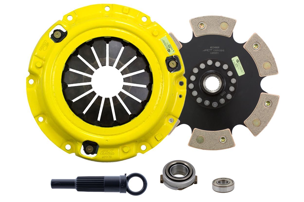 Advanced Clutch Transmission Clutch Kit - FC2-XTR6 ⚠ Check if this part fits your vehicle Select your vehicle to confirm fitment before you buy. Select vehicle ACT Extreme Race Rigid 6 Pad Clutch Kit Manufacturer: Advanced Clutch $563.00 Qty: Add to cart Ship to Select country United States of America Afghanistan Åland Islands Albania Algeria American Samoa Andorra Angola Anguilla Antarctica Antigua and Barbuda Argentina Armenia Aruba Australia Austria Azerbaijan Bahamas Bahrain Bangladesh Barbados Belarus Belgium Belize Benin Bermuda Bhutan Bolivia (Plurinational State of) Bonaire, Sint Eustatius and Saba Bosnia and Herzegovina Botswana Bouvet Island Brazil British Indian Ocean Territory Brunei Darussalam Bulgaria Burkina Faso Burundi Cabo Verde Cambodia Cameroon Canada Cayman Islands Central African Republic Chad Chile China Christmas Island Cocos (Keeling) Islands Colombia Comoros Congo Congo (Democratic Republic of the) Cook Islands Costa Rica Côte d'Ivoire Croatia Cuba Curaçao Cyprus Czechia Denmark Djibouti Dominica Dominican Republic Ecuador Egypt El Salvador Equatorial Guinea Eritrea Estonia Eswatini Ethiopia Falkland Islands (Malvinas) Faroe Islands Fiji Finland France French Guiana French Polynesia French Southern Territories Gabon Gambia Georgia Germany Ghana Gibraltar Greece Greenland Grenada Guadeloupe Guam Guatemala Guernsey Guinea Guinea-Bissau Guyana Haiti Heard Island and McDonald Islands Holy See Honduras Hong Kong Hungary Iceland India Indonesia Iran (Islamic Republic of) Iraq Ireland Isle of Man Israel Italy Jamaica Japan Jersey Jordan Kazakhstan Kenya Kiribati Korea (Democratic People's Republic of) Korea (Republic of) Kuwait Kyrgyzstan Lao People's Democratic Republic Latvia Lebanon Lesotho Liberia Libya Liechtenstein Lithuania Luxembourg Macao Madagascar Malawi Malaysia Maldives Mali Malta Marshall Islands Martinique Mauritania Mauritius Mayotte Mexico Micronesia (Federated States of) Moldova (Republic of) Monaco Mongolia Montenegro Montserrat Morocco Mozambique Myanmar Namibia Nauru Nepal Netherlands New Caledonia New Zealand Nicaragua Niger Nigeria Niue Norfolk Island North Macedonia Northern Mariana Islands Norway Oman Pakistan Palau Palestine, State of Panama Papua New Guinea Paraguay Peru Philippines Pitcairn Poland Portugal Puerto Rico Qatar Réunion Romania Russian Federation Rwanda Saint Barthélemy Saint Helena, Ascension and Tristan da Cunha Saint Kitts and Nevis Saint Lucia Saint Martin (French part) Saint Pierre and Miquelon Saint Vincent and the Grenadines Samoa San Marino Sao Tome and Principe Saudi Arabia Senegal Serbia Seychelles Sierra Leone Singapore Sint Maarten (Dutch part) Slovakia Slovenia Solomon Islands Somalia South Africa South Georgia and the South Sandwich Islands South Sudan Spain Sri Lanka Sudan Suriname Svalbard and Jan Mayen Sweden Switzerland Syrian Arab Republic Taiwan, Province of China Tajikistan Tanzania, United Republic of Thailand Timor-Leste Togo Tokelau Tonga Trinidad and Tobago Tunisia Turkey Turkmenistan Turks and Caicos Islands Tuvalu Uganda Ukraine United Arab Emirates United Kingdom of Great Britain and Northern Ireland United States Minor Outlying Islands Uruguay Uzbekistan Vanuatu Venezuela (Bolivarian Republic of) Vietnam Virgin Islands (British) Virgin Islands (U.S.) Wallis and Futuna Western Sahara Yemen Zambia Zimbabwe * Other * Shipping Method Name Estimated Delivery Price No shipping options Apply Custom wishlist OK Add to wishlist Add to compare list Email a friend FC2-XTR6 kit features an Xtreme pressure plate for the most demanding driver. ACT Xtreme pressure plates use exclusive diaphragm design to increase clamp load, reduce deflection and maximize clutch life. All diaphragms endure a four-stage, heat-treating process for unparalleled performance. ACT pressure plates have precision cover stampings to provide rigidity and consistency. ACT's 6-pad rigid race discs are made with high quality, ceramic friction materials. The chrome-moly hub is heat-treated for strength and durability. The lightweight, rigid design allows for quicker shifts and smooth, trouble-free service. With the 6-pad rigid race disc, engagement is harsher, but shifting is faster. The 6-pad rigid race disc is recommended for larger clutch sizes to absorb more heat.Note: Moderate to heavy pedal effort, aggressive engagement, increased gear rattle; Moderate friction life, extended by ACT's exclusive diaphragm design, rigid design may increase spline wear; Carefully engineered, precisely assembled, accurately balanced, uses select ceramic friction materials for high heat tolerance and maximum performance; Recommended for race use only; 100% clamp load tested and dynamically computer balanced for smooth high RPM reliability Products specifications Attribute name Attribute value Input Shaft Diameter 0.9375 Torque Capacity Over OE 118% Product Weight (lbs.) 13.6 Input Spline Quantity 22 Clutch Disc Diameter 224, 8.8 Torque Capacity (ft/lbs.) 450 Disc Material Ceramic Pilot Bushing Included No Prop 65 - Short Label WARNING: Cancer and Reproductive Harm - www.p65warnings.ca.gov Prop 65 Long Label Warning: This product can expose you to chemicals including carbon black, glass wool fibers, or silica (in clutch discs), chromium and nickel, which are known to the State of California to cause cancer or birth defects or other reproductive harm. For more information, visit www.P65Warnings.ca.gov Pressure Plate Type Xtreme Release Bearing Included Yes Alignment Tool Included Yes Prop 65 Yes/No Yes Disc Type Sprung Solid Solid Clutch Slave Cylinder Included No Pressure Plate Bolts Included No Grease Included Yes Grade Type Performance Flywheel Bolts Included No Pilot Bearing Included Yes Clutch Master Cylinder Included No Country of Origin JP Condition New 🚗 Compatible with 2 vehicles are compatible with this product Year Make Model 1983 Ford Ranger 1984 Ford Ranger