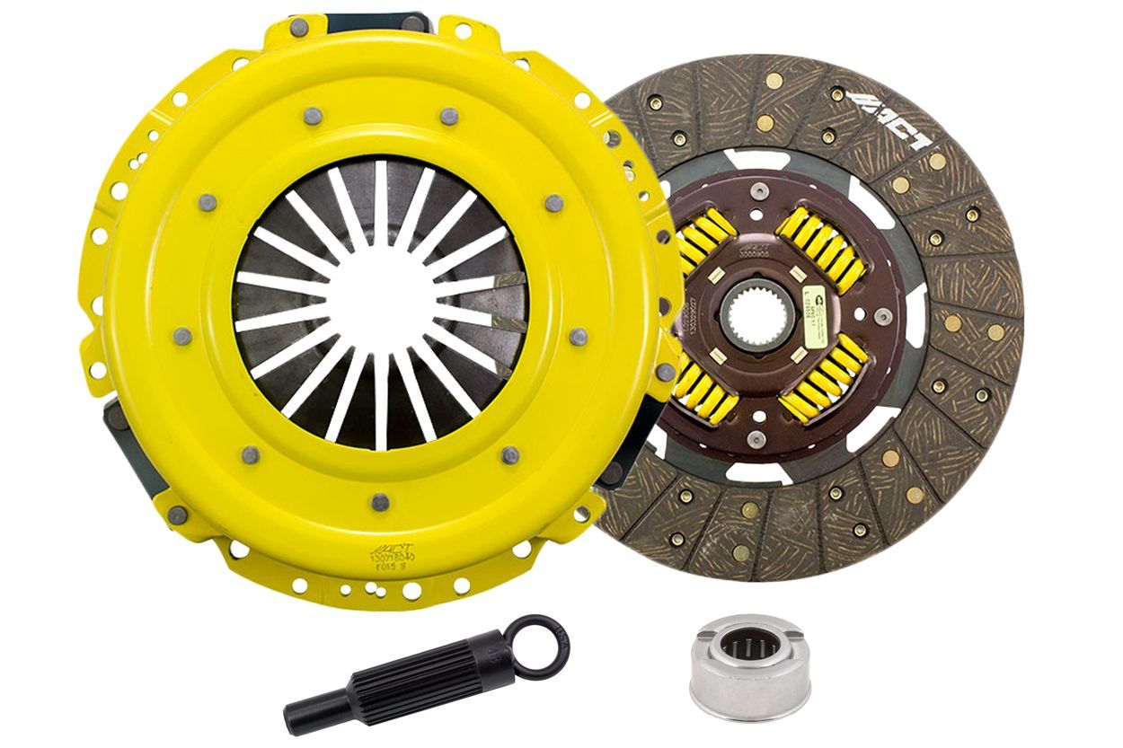 Advanced Clutch Transmission Clutch Kit - FM5-SPSS ⚠ Check if this part fits your vehicle Select your vehicle to confirm fitment before you buy. Select vehicle ACT Sport Performance Street Sprung Clutch Kit Manufacturer: Advanced Clutch $572.00 Qty: Add to cart Ship to Select country United States of America Afghanistan Åland Islands Albania Algeria American Samoa Andorra Angola Anguilla Antarctica Antigua and Barbuda Argentina Armenia Aruba Australia Austria Azerbaijan Bahamas Bahrain Bangladesh Barbados Belarus Belgium Belize Benin Bermuda Bhutan Bolivia (Plurinational State of) Bonaire, Sint Eustatius and Saba Bosnia and Herzegovina Botswana Bouvet Island Brazil British Indian Ocean Territory Brunei Darussalam Bulgaria Burkina Faso Burundi Cabo Verde Cambodia Cameroon Canada Cayman Islands Central African Republic Chad Chile China Christmas Island Cocos (Keeling) Islands Colombia Comoros Congo Congo (Democratic Republic of the) Cook Islands Costa Rica Côte d'Ivoire Croatia Cuba Curaçao Cyprus Czechia Denmark Djibouti Dominica Dominican Republic Ecuador Egypt El Salvador Equatorial Guinea Eritrea Estonia Eswatini Ethiopia Falkland Islands (Malvinas) Faroe Islands Fiji Finland France French Guiana French Polynesia French Southern Territories Gabon Gambia Georgia Germany Ghana Gibraltar Greece Greenland Grenada Guadeloupe Guam Guatemala Guernsey Guinea Guinea-Bissau Guyana Haiti Heard Island and McDonald Islands Holy See Honduras Hong Kong Hungary Iceland India Indonesia Iran (Islamic Republic of) Iraq Ireland Isle of Man Israel Italy Jamaica Japan Jersey Jordan Kazakhstan Kenya Kiribati Korea (Democratic People's Republic of) Korea (Republic of) Kuwait Kyrgyzstan Lao People's Democratic Republic Latvia Lebanon Lesotho Liberia Libya Liechtenstein Lithuania Luxembourg Macao Madagascar Malawi Malaysia Maldives Mali Malta Marshall Islands Martinique Mauritania Mauritius Mayotte Mexico Micronesia (Federated States of) Moldova (Republic of) Monaco Mongolia Montenegro Montserrat Morocco Mozambique Myanmar Namibia Nauru Nepal Netherlands New Caledonia New Zealand Nicaragua Niger Nigeria Niue Norfolk Island North Macedonia Northern Mariana Islands Norway Oman Pakistan Palau Palestine, State of Panama Papua New Guinea Paraguay Peru Philippines Pitcairn Poland Portugal Puerto Rico Qatar Réunion Romania Russian Federation Rwanda Saint Barthélemy Saint Helena, Ascension and Tristan da Cunha Saint Kitts and Nevis Saint Lucia Saint Martin (French part) Saint Pierre and Miquelon Saint Vincent and the Grenadines Samoa San Marino Sao Tome and Principe Saudi Arabia Senegal Serbia Seychelles Sierra Leone Singapore Sint Maarten (Dutch part) Slovakia Slovenia Solomon Islands Somalia South Africa South Georgia and the South Sandwich Islands South Sudan Spain Sri Lanka Sudan Suriname Svalbard and Jan Mayen Sweden Switzerland Syrian Arab Republic Taiwan, Province of China Tajikistan Tanzania, United Republic of Thailand Timor-Leste Togo Tokelau Tonga Trinidad and Tobago Tunisia Turkey Turkmenistan Turks and Caicos Islands Tuvalu Uganda Ukraine United Arab Emirates United Kingdom of Great Britain and Northern Ireland United States Minor Outlying Islands Uruguay Uzbekistan Vanuatu Venezuela (Bolivarian Republic of) Vietnam Virgin Islands (British) Virgin Islands (U.S.) Wallis and Futuna Western Sahara Yemen Zambia Zimbabwe * Other * Shipping Method Name Estimated Delivery Price No shipping options Apply Custom wishlist OK Add to wishlist Add to compare list Email a friend FM5-SPSS kit features a Sport pressure plate for a nice upgrade. ACT Sport pressure plates use exclusive diaphragm design to increase clamp load, reduce deflection and maximize clutch life. All diaphragms endure a four-stage, heat-treating process for unparalleled performance. ACT pressure plates have precision cover stampings to provide rigidity and consistency. ACT's Performance street discs are the most popular disc purchased. They feature premium organic materials with high copper content for better heat transfer and steel-backed lining for greater burst strength and durability. These discs feature a reduced marcel for faster shift action to complement ACT pressure plates. Quiet operation with increased strength and reliability.Note: Light to moderate pedal effort, smooth engagement, OE to mild gear rattle; Longer clutch life achieved through ACT's exclusive diaphragm design; Carefully engineered, precisely assembled, accurately balanced, with premium organic friction materials for heat tolerance and reduced fade; Recommended for street and race use; 100% clamp load tested and dynamically computer balanced for smooth high RPM reliability Products specifications Attribute name Attribute value Input Shaft Diameter 1.125 Clutch Disc Diameter 11, 280 Pilot Bushing Included No Disc Material Organic Pressure Plate Type Sport Prop 65 - Short Label WARNING: Cancer and Reproductive Harm - www.p65warnings.ca.gov Prop 65 Long Label Warning: This product can expose you to chemicals including carbon black, glass wool fibers, or silica (in clutch discs), chromium and nickel, which are known to the State of California to cause cancer or birth defects or other reproductive harm. For more information, visit www.P65Warnings.ca.gov Alignment Tool Included Yes Prop 65 Yes/No Yes Part Fitment Requirement Aftermarket 26 spline. Torque Capacity (ft/lbs.) 505 Product Weight (lbs.) 29.3 Input Spline Quantity 26 Torque Capacity Over OE 21% Disc Type Sprung Solid Sprung Clutch Slave Cylinder Included No Pressure Plate Bolts Included No Grease Included Yes Grade Type Performance Flywheel Bolts Included No Pilot Bearing Included Yes Clutch Master Cylinder Included No Country of Origin KR Condition New 🚗 Compatible with 6 vehicles are compatible with this product Year Make Model 2005 Ford Mustang 2006 Ford Mustang 2007 Ford Mustang 2008 Ford Mustang 2009 Ford Mustang 2010 Ford Mustang