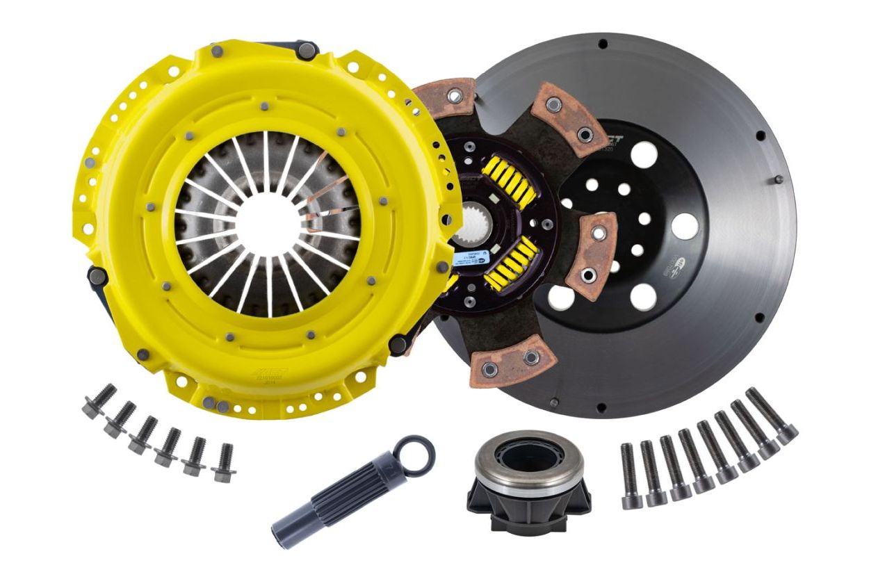 Advanced Clutch Transmission Clutch Kit - JP5-HDG6 ⚠ Check if this part fits your vehicle Select your vehicle to confirm fitment before you buy. Select vehicle ACT Heavy Duty Off-Road Race Sprung 6 Pad Clutch Kit Manufacturer: Advanced Clutch $1,392.00 Ship to Select country United States of America Afghanistan Åland Islands Albania Algeria American Samoa Andorra Angola Anguilla Antarctica Antigua and Barbuda Argentina Armenia Aruba Australia Austria Azerbaijan Bahamas Bahrain Bangladesh Barbados Belarus Belgium Belize Benin Bermuda Bhutan Bolivia (Plurinational State of) Bonaire, Sint Eustatius and Saba Bosnia and Herzegovina Botswana Bouvet Island Brazil British Indian Ocean Territory Brunei Darussalam Bulgaria Burkina Faso Burundi Cabo Verde Cambodia Cameroon Canada Cayman Islands Central African Republic Chad Chile China Christmas Island Cocos (Keeling) Islands Colombia Comoros Congo Congo (Democratic Republic of the) Cook Islands Costa Rica Côte d'Ivoire Croatia Cuba Curaçao Cyprus Czechia Denmark Djibouti Dominica Dominican Republic Ecuador Egypt El Salvador Equatorial Guinea Eritrea Estonia Eswatini Ethiopia Falkland Islands (Malvinas) Faroe Islands Fiji Finland France French Guiana French Polynesia French Southern Territories Gabon Gambia Georgia Germany Ghana Gibraltar Greece Greenland Grenada Guadeloupe Guam Guatemala Guernsey Guinea Guinea-Bissau Guyana Haiti Heard Island and McDonald Islands Holy See Honduras Hong Kong Hungary Iceland India Indonesia Iran (Islamic Republic of) Iraq Ireland Isle of Man Israel Italy Jamaica Japan Jersey Jordan Kazakhstan Kenya Kiribati Korea (Democratic People's Republic of) Korea (Republic of) Kuwait Kyrgyzstan Lao People's Democratic Republic Latvia Lebanon Lesotho Liberia Libya Liechtenstein Lithuania Luxembourg Macao Madagascar Malawi Malaysia Maldives Mali Malta Marshall Islands Martinique Mauritania Mauritius Mayotte Mexico Micronesia (Federated States of) Moldova (Republic of) Monaco Mongolia Montenegro Montserrat Morocco Mozambique Myanmar Namibia Nauru Nepal Netherlands New Caledonia New Zealand Nicaragua Niger Nigeria Niue Norfolk Island North Macedonia Northern Mariana Islands Norway Oman Pakistan Palau Palestine, State of Panama Papua New Guinea Paraguay Peru Philippines Pitcairn Poland Portugal Puerto Rico Qatar Réunion Romania Russian Federation Rwanda Saint Barthélemy Saint Helena, Ascension and Tristan da Cunha Saint Kitts and Nevis Saint Lucia Saint Martin (French part) Saint Pierre and Miquelon Saint Vincent and the Grenadines Samoa San Marino Sao Tome and Principe Saudi Arabia Senegal Serbia Seychelles Sierra Leone Singapore Sint Maarten (Dutch part) Slovakia Slovenia Solomon Islands Somalia South Africa South Georgia and the South Sandwich Islands South Sudan Spain Sri Lanka Sudan Suriname Svalbard and Jan Mayen Sweden Switzerland Syrian Arab Republic Taiwan, Province of China Tajikistan Tanzania, United Republic of Thailand Timor-Leste Togo Tokelau Tonga Trinidad and Tobago Tunisia Turkey Turkmenistan Turks and Caicos Islands Tuvalu Uganda Ukraine United Arab Emirates United Kingdom of Great Britain and Northern Ireland United States Minor Outlying Islands Uruguay Uzbekistan Vanuatu Venezuela (Bolivarian Republic of) Vietnam Virgin Islands (British) Virgin Islands (U.S.) Wallis and Futuna Western Sahara Yemen Zambia Zimbabwe * Other * Shipping Method Name Estimated Delivery Price No shipping options Apply Custom wishlist OK Add to wishlist Add to compare list Email a friend JP5-HDG6 kit features ACT's highly regarded Heavy Duty pressure plate and spring-center 6 pad race disc delivering high torque capacity, aggressive engagement, quiet operation and increased toughness to withstand the demands of off-road racing. ACT’s exclusive diaphragm design increases clamp load, reduces deflection and maximizes clutch life. All diaphragms endure a four-stage heat-treating process for unparalleled performance. ACT precision pressure plate cover stampings provide rigidity and consistency while precision machined pressure plate castings absorb heat. ACT’s spring center 6 pad race discs boast quality parts throughout, with robust spring center sections to absorb driveline shock and premium ceramic friction materials to hold power even under the most abusive conditions.Note: Light to moderate pedal effort, aggressive engagement, OE to mild gear rattle, confidence during hard shifts; Moderate friction life, extended by ACT's exclusive diaphragm design, increased durability and heat capacity; Carefully engineered, precisely assembled, accurately balanced, uses premium ceramic friction materials for high heat tolerance and maximum performance, premium bearings and hardware; Recommended for race use only; 100% clamp load tested and dynamically computer balanced for smooth high RPM reliability, key areas induction hardened for longer life Products specifications Attribute name Attribute value Input Shaft Diameter 1.125 Clutch Disc Diameter 11, 280 Input Spline Quantity 21 Product Weight (lbs.) 50.2 Torque Capacity (ft/lbs.) 613 Torque Capacity Over OE 69% Disc Material Ceramic Part Fitment Requirement Conversion Kit. Includes ACT Street-Mass flywheel. Flywheel bolts included (M10-1.00 x 40mm). Pressure plate bolts included (M8-1.25 x 16mm). Pressure Plate Type Heavy Duty Flywheel Type Street-Mass Prop 65 - Short Label WARNING: Cancer and Reproductive Harm - www.p65warnings.ca.gov Prop 65 Long Label Warning: This product can expose you to chemicals including carbon black, glass wool fibers, or silica (in clutch discs), chromium and nickel, which are known to the State of California to cause cancer or birth defects or other reproductive harm. For more information, visit www.P65Warnings.ca.gov Flywheel Included Yes Release Bearing Included Yes Alignment Tool Included Yes Prop 65 Yes/No Yes Disc Type Sprung Solid Sprung Clutch Slave Cylinder Included No Flywheel Bolts Included Yes Clutch Master Cylinder Included No Pressure Plate Bolts I