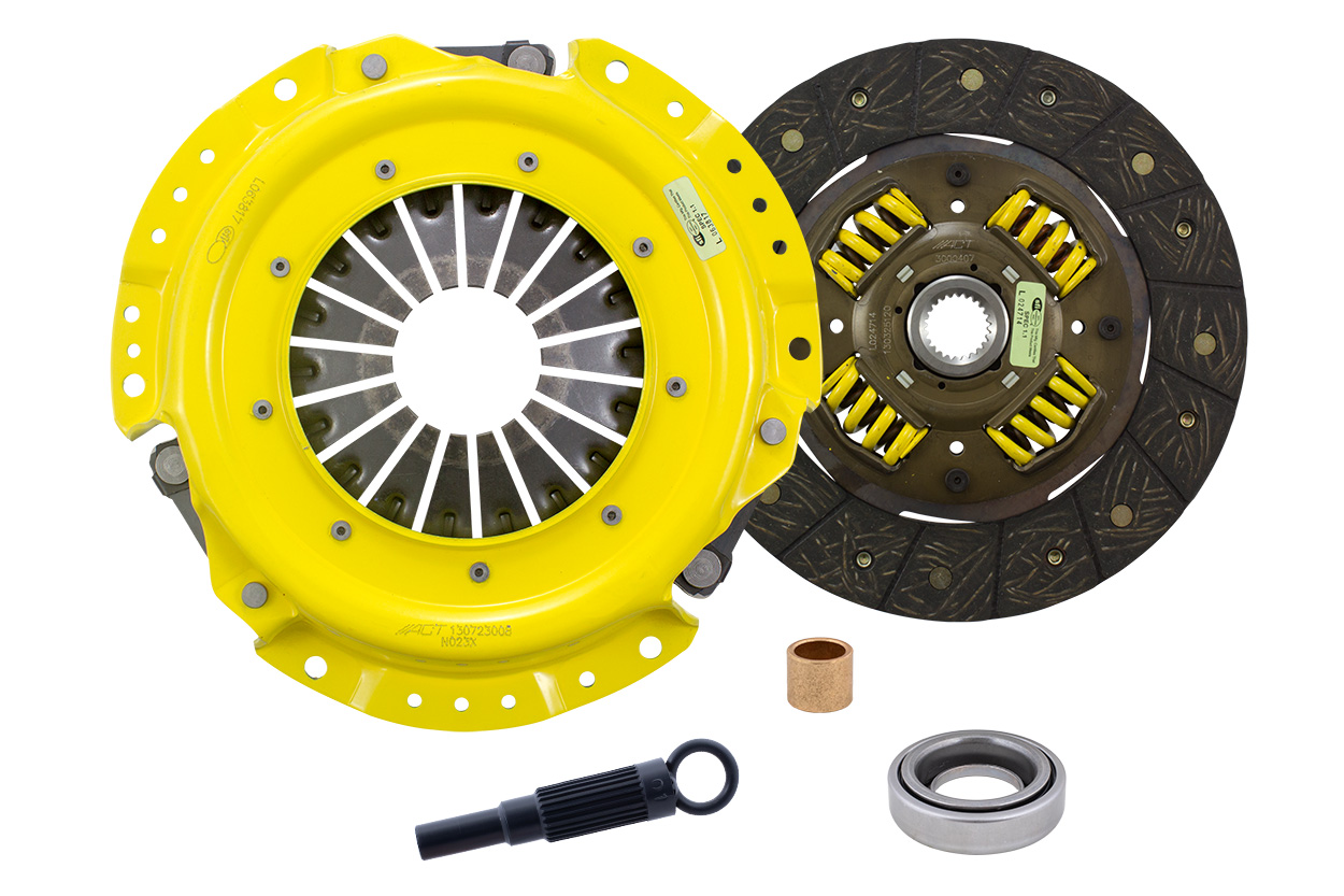 Advanced Clutch Transmission Clutch Kit - NX4-XTSS ⚠ Check if this part fits your vehicle Select your vehicle to confirm fitment before you buy. Select vehicle ACT Extreme Performance Street Sprung Clutch Kit Manufacturer: Advanced Clutch $541.00 Ship to Select country United States of America Afghanistan Åland Islands Albania Algeria American Samoa Andorra Angola Anguilla Antarctica Antigua and Barbuda Argentina Armenia Aruba Australia Austria Azerbaijan Bahamas Bahrain Bangladesh Barbados Belarus Belgium Belize Benin Bermuda Bhutan Bolivia (Plurinational State of) Bonaire, Sint Eustatius and Saba Bosnia and Herzegovina Botswana Bouvet Island Brazil British Indian Ocean Territory Brunei Darussalam Bulgaria Burkina Faso Burundi Cabo Verde Cambodia Cameroon Canada Cayman Islands Central African Republic Chad Chile China Christmas Island Cocos (Keeling) Islands Colombia Comoros Congo Congo (Democratic Republic of the) Cook Islands Costa Rica Côte d'Ivoire Croatia Cuba Curaçao Cyprus Czechia Denmark Djibouti Dominica Dominican Republic Ecuador Egypt El Salvador Equatorial Guinea Eritrea Estonia Eswatini Ethiopia Falkland Islands (Malvinas) Faroe Islands Fiji Finland France French Guiana French Polynesia French Southern Territories Gabon Gambia Georgia Germany Ghana Gibraltar Greece Greenland Grenada Guadeloupe Guam Guatemala Guernsey Guinea Guinea-Bissau Guyana Haiti Heard Island and McDonald Islands Holy See Honduras Hong Kong Hungary Iceland India Indonesia Iran (Islamic Republic of) Iraq Ireland Isle of Man Israel Italy Jamaica Japan Jersey Jordan Kazakhstan Kenya Kiribati Korea (Democratic People's Republic of) Korea (Republic of) Kuwait Kyrgyzstan Lao People's Democratic Republic Latvia Lebanon Lesotho Liberia Libya Liechtenstein Lithuania Luxembourg Macao Madagascar Malawi Malaysia Maldives Mali Malta Marshall Islands Martinique Mauritania Mauritius Mayotte Mexico Micronesia (Federated States of) Moldova (Republic of) Monaco Mongolia Montenegro Montserrat Morocco Mozambique Myanmar Namibia Nauru Nepal Netherlands New Caledonia New Zealand Nicaragua Niger Nigeria Niue Norfolk Island North Macedonia Northern Mariana Islands Norway Oman Pakistan Palau Palestine, State of Panama Papua New Guinea Paraguay Peru Philippines Pitcairn Poland Portugal Puerto Rico Qatar Réunion Romania Russian Federation Rwanda Saint Barthélemy Saint Helena, Ascension and Tristan da Cunha Saint Kitts and Nevis Saint Lucia Saint Martin (French part) Saint Pierre and Miquelon Saint Vincent and the Grenadines Samoa San Marino Sao Tome and Principe Saudi Arabia Senegal Serbia Seychelles Sierra Leone Singapore Sint Maarten (Dutch part) Slovakia Slovenia Solomon Islands Somalia South Africa South Georgia and the South Sandwich Islands South Sudan Spain Sri Lanka Sudan Suriname Svalbard and Jan Mayen Sweden Switzerland Syrian Arab Republic Taiwan, Province of China Tajikistan Tanzania, United Republic of Thailand Timor-Leste Togo Tokelau Tonga Trinidad and Tobago Tunisia Turkey Turkmenistan Turks and Caicos Islands Tuvalu Uganda Ukraine United Arab Emirates United Kingdom of Great Britain and Northern Ireland United States Minor Outlying Islands Uruguay Uzbekistan Vanuatu Venezuela (Bolivarian Republic of) Vietnam Virgin Islands (British) Virgin Islands (U.S.) Wallis and Futuna Western Sahara Yemen Zambia Zimbabwe * Other * Shipping Method Name Estimated Delivery Price No shipping options Apply Custom wishlist OK Add to wishlist Add to compare list Email a friend NX4-XTSS kit features an Xtreme pressure plate for the most demanding driver. ACT Xtreme pressure plates use exclusive diaphragm design to increase clamp load, reduce deflection and maximize clutch life. All diaphragms endure a four-stage, heat-treating process for unparalleled performance. ACT pressure plates have precision cover stampings to provide rigidity and consistency. ACT's Performance street discs are the most popular disc purchased. They feature premium organic materials with high copper content for better heat transfer and steel-backed lining for greater burst strength and durability. These discs have reduced marcel for faster shift action to complement ACT pressure plates. Quiet operation with increased strength and reliability.Note: Moderate to heavy pedal effort, smooth engagement, OE to mild gear rattle; Longer friction life, extended by ACT's exclusive diaphragm design; Carefully engineered, precisely assembled, accurately balanced, with premium organic friction materials for heat tolerance and reduced fade; Recommended for street and race use; 100% clamp load tested and dynamically computer balanced for smooth high RPM reliability Products specifications Attribute name Attribute value Input Shaft Diameter 1 Torque Capacity Over OE 109% Product Weight (lbs.) 14.6 Clutch Disc Diameter 224, 8.8 Input Spline Quantity 24 Torque Capacity (ft/lbs.) 370 Disc Material Organic Prop 65 - Short Label WARNING: Cancer and Reproductive Harm - www.p65warnings.ca.gov Prop 65 Long Label Warning: This product can expose you to chemicals including carbon black, glass wool fibers, or silica (in clutch discs), chromium and nickel, which are known to the State of California to cause cancer or birth defects or other reproductive harm. For more information, visit www.P65Warnings.ca.gov Pressure Plate Type Xtreme Pilot Bushing Included Yes Release Bearing Included Yes Alignment Tool Included Yes Prop 65 Yes/No Yes Disc Type Sprung Solid Sprung Clutch Slave Cylinder Included No Pressure Plate Bolts Included No Grease Included Yes Grade Type Performance Flywheel Bolts Included No Clutch Master Cylinder Included No Country of Origin KR Condition New 🚗 Compatible with 4 vehicles are compatible with this product Year Make Model 1991 Nissan 240SX 1992 Nissan 240SX 1993 Nissan 240SX 1994 Nissan 240SX