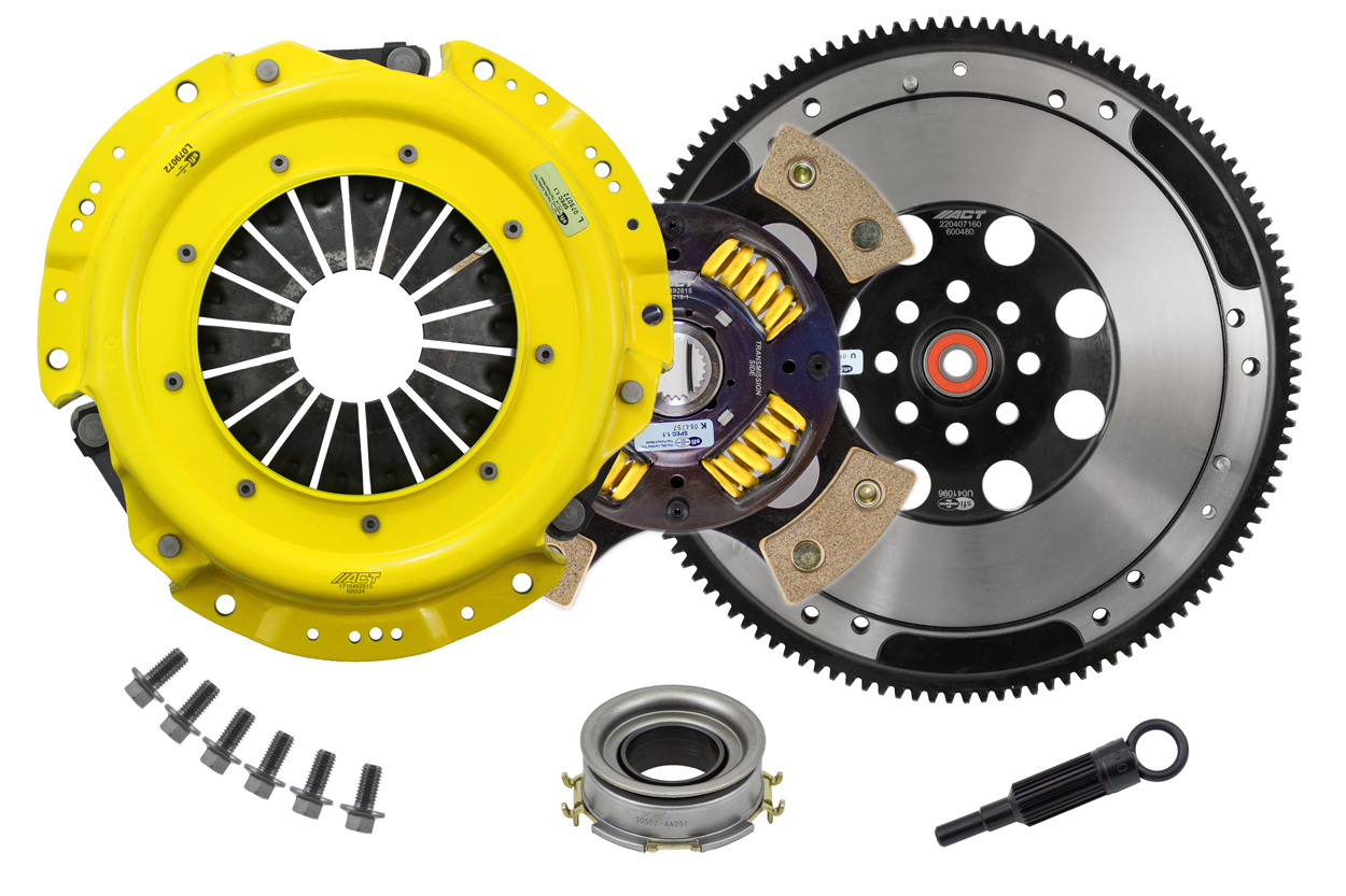 Advanced Clutch Transmission Clutch Kit - SB7-HDG4 ⚠ Check if this part fits your vehicle Select your vehicle to confirm fitment before you buy. Select vehicle ACT Heavy Duty Race Sprung 4 Pad Clutch Kit Manufacturer: Advanced Clutch $982.00 Qty: Add to cart Ship to Select country United States of America Afghanistan Åland Islands Albania Algeria American Samoa Andorra Angola Anguilla Antarctica Antigua and Barbuda Argentina Armenia Aruba Australia Austria Azerbaijan Bahamas Bahrain Bangladesh Barbados Belarus Belgium Belize Benin Bermuda Bhutan Bolivia (Plurinational State of) Bonaire, Sint Eustatius and Saba Bosnia and Herzegovina Botswana Bouvet Island Brazil British Indian Ocean Territory Brunei Darussalam Bulgaria Burkina Faso Burundi Cabo Verde Cambodia Cameroon Canada Cayman Islands Central African Republic Chad Chile China Christmas Island Cocos (Keeling) Islands Colombia Comoros Congo Congo (Democratic Republic of the) Cook Islands Costa Rica Côte d'Ivoire Croatia Cuba Curaçao Cyprus Czechia Denmark Djibouti Dominica Dominican Republic Ecuador Egypt El Salvador Equatorial Guinea Eritrea Estonia Eswatini Ethiopia Falkland Islands (Malvinas) Faroe Islands Fiji Finland France French Guiana French Polynesia French Southern Territories Gabon Gambia Georgia Germany Ghana Gibraltar Greece Greenland Grenada Guadeloupe Guam Guatemala Guernsey Guinea Guinea-Bissau Guyana Haiti Heard Island and McDonald Islands Holy See Honduras Hong Kong Hungary Iceland India Indonesia Iran (Islamic Republic of) Iraq Ireland Isle of Man Israel Italy Jamaica Japan Jersey Jordan Kazakhstan Kenya Kiribati Korea (Democratic People's Republic of) Korea (Republic of) Kuwait Kyrgyzstan Lao People's Democratic Republic Latvia Lebanon Lesotho Liberia Libya Liechtenstein Lithuania Luxembourg Macao Madagascar Malawi Malaysia Maldives Mali Malta Marshall Islands Martinique Mauritania Mauritius Mayotte Mexico Micronesia (Federated States of) Moldova (Republic of) Monaco Mongolia Montenegro Montserrat Morocco Mozambique Myanmar Namibia Nauru Nepal Netherlands New Caledonia New Zealand Nicaragua Niger Nigeria Niue Norfolk Island North Macedonia Northern Mariana Islands Norway Oman Pakistan Palau Palestine, State of Panama Papua New Guinea Paraguay Peru Philippines Pitcairn Poland Portugal Puerto Rico Qatar Réunion Romania Russian Federation Rwanda Saint Barthélemy Saint Helena, Ascension and Tristan da Cunha Saint Kitts and Nevis Saint Lucia Saint Martin (French part) Saint Pierre and Miquelon Saint Vincent and the Grenadines Samoa San Marino Sao Tome and Principe Saudi Arabia Senegal Serbia Seychelles Sierra Leone Singapore Sint Maarten (Dutch part) Slovakia Slovenia Solomon Islands Somalia South Africa South Georgia and the South Sandwich Islands South Sudan Spain Sri Lanka Sudan Suriname Svalbard and Jan Mayen Sweden Switzerland Syrian Arab Republic Taiwan, Province of China Tajikistan Tanzania, United Republic of Thailand Timor-Leste Togo Tokelau Tonga Trinidad and Tobago Tunisia Turkey Turkmenistan Turks and Caicos Islands Tuvalu Uganda Ukraine United Arab Emirates United Kingdom of Great Britain and Northern Ireland United States Minor Outlying Islands Uruguay Uzbekistan Vanuatu Venezuela (Bolivarian Republic of) Vietnam Virgin Islands (British) Virgin Islands (U.S.) Wallis and Futuna Western Sahara Yemen Zambia Zimbabwe * Other * Shipping Method Name Estimated Delivery Price No shipping options Apply Custom wishlist OK Add to wishlist Add to compare list Email a friend SB7-HDG4 kit features ACT's most popular Heavy Duty pressure plate. ACT Heavy Duty pressure plates use exclusive diaphragm design to increase clamp load, reduce deflection and maximize clutch life. All diaphragms endure a four-stage, heat-treating process for unparalleled performance. ACT pressure plates have precision cover stampings to provide rigidity and consistency. ACT's 4-pad spring-centered race disc features a spring-center to properly damp torsional vibrations for quieter operation and resist failure even under harsh conditions. ACT spring retainers utilize wraparound spring windows and thicker retainer stampings to provide spring support, reduce stress concentrations, and increase strength and reliability. With the 4-pad spring-centered race disc, engagement is harsher, but shifting is faster. ACT's 4-pad spring-centered race disc is well-suited for smaller disc sizes in smaller engines.Note: Light to moderate pedal effort, aggressive engagement, OE to mild gear rattle; Moderate friction life, extended by ACT's exclusive diaphragm design; Carefully engineered, precisely assembled, accurately balanced, uses select ceramic friction materials for high heat tolerance and maximum performance; Recommended for high horsepower street or race use; 100% clamp load tested and dynamically computer balanced for smooth high RPM reliability Products specifications Attribute name Attribute value Product Weight (lbs.) 26.1 Flywheel Type Streetlite Prop 65 - Short Label WARNING: Cancer and Reproductive Harm - www.p65warnings.ca.gov Prop 65 Long Label Warning: This product can expose you to chemicals including carbon black, glass wool fibers, or silica (in clutch discs), chromium and nickel, which are known to the State of California to cause cancer or birth defects or other reproductive harm. For more information, visit www.P65Warnings.ca.gov Flywheel Included Yes Prop 65 Yes/No Yes Input Shaft Diameter 1 Torque Capacity Over OE 104% Clutch Disc Diameter 224, 8.8 Input Spline Quantity 24 Torque Capacity (ft/lbs.) 332 Disc Material Ceramic Part Fitment Requirement Conversion kit. Includes ACT Streetlite flywheel. Must use ACT flywheel (included in kit). Flywheel bolts included (M10-1.0 x 25mm). Pressure plate bolts included (M8-1.25 x 16mm). Pressure Plate Type Heavy Duty Clutch Master Cylinder Included No Pilot Bushing Included No Clutch Slave Cylinder Included No Pilot Bearing Included No Grade Type Performance Disc Type Sprung Solid Sprung Grease