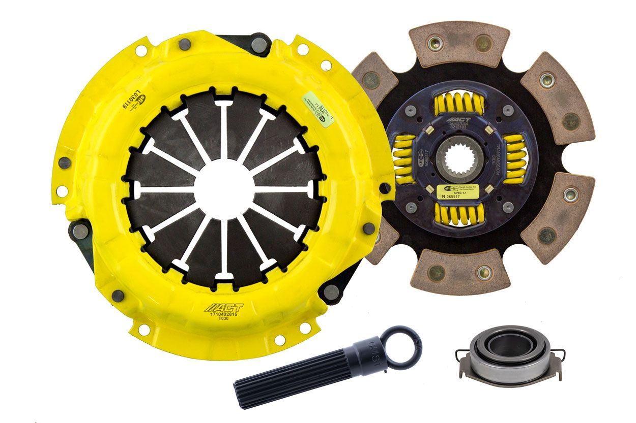 Advanced Clutch Transmission Clutch Kit - SC1-HDG6 ⚠ Check if this part fits your vehicle Select your vehicle to confirm fitment before you buy. Select vehicle ACT Heavy Duty Race Sprung 6 Pad Clutch Kit Manufacturer: Advanced Clutch $559.00 Qty: Add to cart Ship to Select country United States of America Afghanistan Åland Islands Albania Algeria American Samoa Andorra Angola Anguilla Antarctica Antigua and Barbuda Argentina Armenia Aruba Australia Austria Azerbaijan Bahamas Bahrain Bangladesh Barbados Belarus Belgium Belize Benin Bermuda Bhutan Bolivia (Plurinational State of) Bonaire, Sint Eustatius and Saba Bosnia and Herzegovina Botswana Bouvet Island Brazil British Indian Ocean Territory Brunei Darussalam Bulgaria Burkina Faso Burundi Cabo Verde Cambodia Cameroon Canada Cayman Islands Central African Republic Chad Chile China Christmas Island Cocos (Keeling) Islands Colombia Comoros Congo Congo (Democratic Republic of the) Cook Islands Costa Rica Côte d'Ivoire Croatia Cuba Curaçao Cyprus Czechia Denmark Djibouti Dominica Dominican Republic Ecuador Egypt El Salvador Equatorial Guinea Eritrea Estonia Eswatini Ethiopia Falkland Islands (Malvinas) Faroe Islands Fiji Finland France French Guiana French Polynesia French Southern Territories Gabon Gambia Georgia Germany Ghana Gibraltar Greece Greenland Grenada Guadeloupe Guam Guatemala Guernsey Guinea Guinea-Bissau Guyana Haiti Heard Island and McDonald Islands Holy See Honduras Hong Kong Hungary Iceland India Indonesia Iran (Islamic Republic of) Iraq Ireland Isle of Man Israel Italy Jamaica Japan Jersey Jordan Kazakhstan Kenya Kiribati Korea (Democratic People's Republic of) Korea (Republic of) Kuwait Kyrgyzstan Lao People's Democratic Republic Latvia Lebanon Lesotho Liberia Libya Liechtenstein Lithuania Luxembourg Macao Madagascar Malawi Malaysia Maldives Mali Malta Marshall Islands Martinique Mauritania Mauritius Mayotte Mexico Micronesia (Federated States of) Moldova (Republic of) Monaco Mongolia Montenegro Montserrat Morocco Mozambique Myanmar Namibia Nauru Nepal Netherlands New Caledonia New Zealand Nicaragua Niger Nigeria Niue Norfolk Island North Macedonia Northern Mariana Islands Norway Oman Pakistan Palau Palestine, State of Panama Papua New Guinea Paraguay Peru Philippines Pitcairn Poland Portugal Puerto Rico Qatar Réunion Romania Russian Federation Rwanda Saint Barthélemy Saint Helena, Ascension and Tristan da Cunha Saint Kitts and Nevis Saint Lucia Saint Martin (French part) Saint Pierre and Miquelon Saint Vincent and the Grenadines Samoa San Marino Sao Tome and Principe Saudi Arabia Senegal Serbia Seychelles Sierra Leone Singapore Sint Maarten (Dutch part) Slovakia Slovenia Solomon Islands Somalia South Africa South Georgia and the South Sandwich Islands South Sudan Spain Sri Lanka Sudan Suriname Svalbard and Jan Mayen Sweden Switzerland Syrian Arab Republic Taiwan, Province of China Tajikistan Tanzania, United Republic of Thailand Timor-Leste Togo Tokelau Tonga Trinidad and Tobago Tunisia Turkey Turkmenistan Turks and Caicos Islands Tuvalu Uganda Ukraine United Arab Emirates United Kingdom of Great Britain and Northern Ireland United States Minor Outlying Islands Uruguay Uzbekistan Vanuatu Venezuela (Bolivarian Republic of) Vietnam Virgin Islands (British) Virgin Islands (U.S.) Wallis and Futuna Western Sahara Yemen Zambia Zimbabwe * Other * Shipping Method Name Estimated Delivery Price No shipping options Apply Custom wishlist OK Add to wishlist Add to compare list Email a friend SC1-HDG6 kit features ACT's most popular Heavy Duty pressure plate. ACT Heavy Duty pressure plates use exclusive diaphragm design to increase clamp load, reduce deflection and maximize clutch life. All diaphragms endure a four-stage, heat-treating process for unparalleled performance. ACT pressure plates have precision cover stampings to provide rigidity and consistency. ACT's 6-pad, spring-centered race disc features a spring-center to properly damp torsional vibrations and resist failure under harsh conditions. ACT spring retainers utilize wraparound spring windows and thicker retainer stampings to provide spring support, reduce stress concentrations, and increase strength and reliability. With the 6-pad, spring-centered race disc, engagement is harsher, but shifting is faster. The 6-pad, spring-centered disc is recommended for larger clutch sizes to absorb more heat.Note: Light to moderate pedal effort, aggressive engagement, OE to mild gear rattle; Moderate friction life, extended by ACT's exclusive diaphragm design; Carefully engineered, precisely assembled, accurately balanced, uses select ceramic friction materials for high heat tolerance and maximum performance; Recommended for high horsepower street or race use; 100% clamp load tested and dynamically computer balanced for smooth high RPM reliability Products specifications Attribute name Attribute value Product Weight (lbs.) 12.5 Torque Capacity (ft/lbs.) 305 Torque Capacity Over OE 69% Prop 65 - Short Label WARNING: Cancer and Reproductive Harm - www.p65warnings.ca.gov Prop 65 Long Label Warning: This product can expose you to chemicals including carbon black, glass wool fibers, or silica (in clutch discs), chromium and nickel, which are known to the State of California to cause cancer or birth defects or other reproductive harm. For more information, visit www.P65Warnings.ca.gov Prop 65 Yes/No Yes Input Shaft Diameter 0.9375 Input Spline Quantity 21 Clutch Disc Diameter 212, 8.3 Disc Material Ceramic Pressure Plate Type Heavy Duty Clutch Master Cylinder Included No Flywheel Included No Pilot Bushing Included No Alignment Tool Included No Clutch Slave Cylinder Included No Flywheel Bolts Included No Pilot Bearing Included No Disc Type Sprung Solid Sprung Release Bearing Included Yes Pressure Plate Bolts Included No Grease Included Yes Grade Type Performance Country of Origin CN Condition New 🚗 Compatible with 7 vehicles are compatible with this product Year Make Model 2008 Scion 
