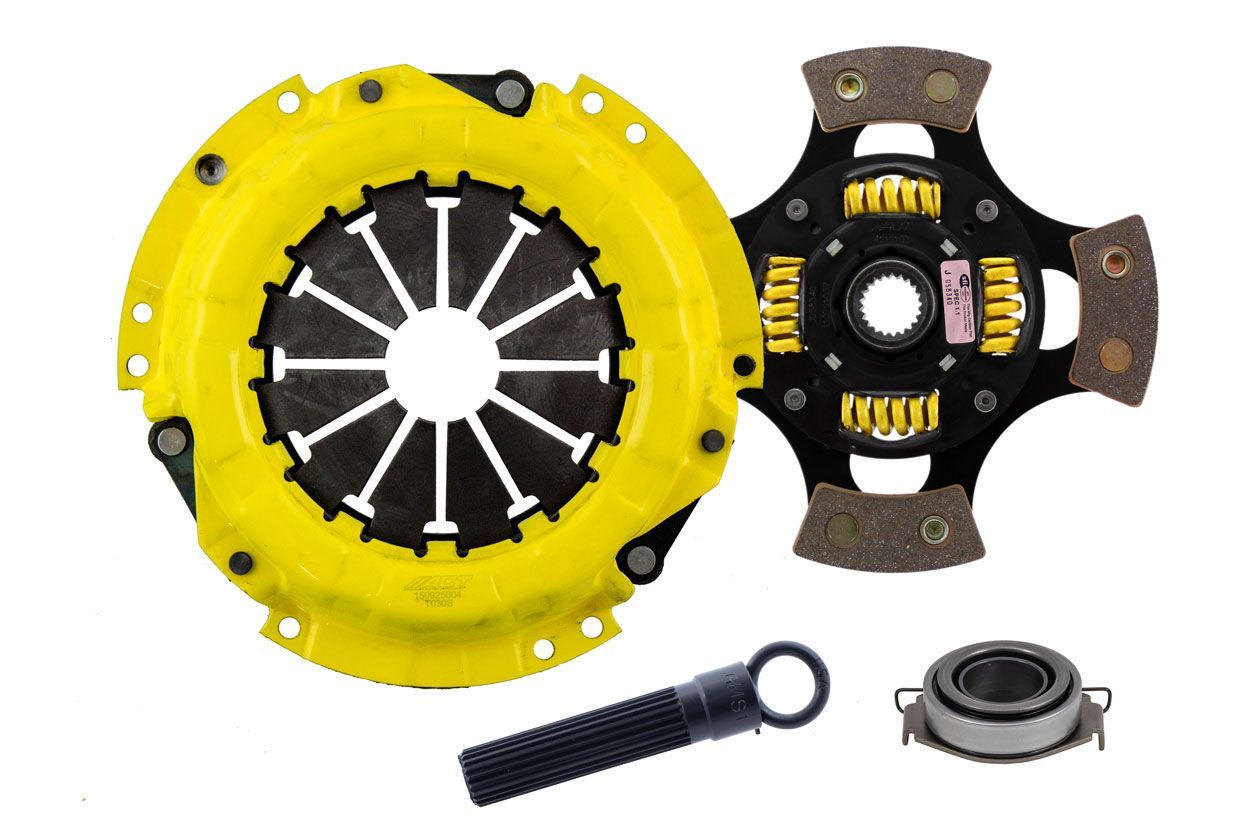 Advanced Clutch Transmission Clutch Kit - SC1-SPG4 ⚠ Check if this part fits your vehicle Select your vehicle to confirm fitment before you buy. Select vehicle ACT Sport Race Sprung 4 Pad Clutch Kit Manufacturer: Advanced Clutch $462.00 Qty: Add to cart Ship to Select country United States of America Afghanistan Åland Islands Albania Algeria American Samoa Andorra Angola Anguilla Antarctica Antigua and Barbuda Argentina Armenia Aruba Australia Austria Azerbaijan Bahamas Bahrain Bangladesh Barbados Belarus Belgium Belize Benin Bermuda Bhutan Bolivia (Plurinational State of) Bonaire, Sint Eustatius and Saba Bosnia and Herzegovina Botswana Bouvet Island Brazil British Indian Ocean Territory Brunei Darussalam Bulgaria Burkina Faso Burundi Cabo Verde Cambodia Cameroon Canada Cayman Islands Central African Republic Chad Chile China Christmas Island Cocos (Keeling) Islands Colombia Comoros Congo Congo (Democratic Republic of the) Cook Islands Costa Rica Côte d'Ivoire Croatia Cuba Curaçao Cyprus Czechia Denmark Djibouti Dominica Dominican Republic Ecuador Egypt El Salvador Equatorial Guinea Eritrea Estonia Eswatini Ethiopia Falkland Islands (Malvinas) Faroe Islands Fiji Finland France French Guiana French Polynesia French Southern Territories Gabon Gambia Georgia Germany Ghana Gibraltar Greece Greenland Grenada Guadeloupe Guam Guatemala Guernsey Guinea Guinea-Bissau Guyana Haiti Heard Island and McDonald Islands Holy See Honduras Hong Kong Hungary Iceland India Indonesia Iran (Islamic Republic of) Iraq Ireland Isle of Man Israel Italy Jamaica Japan Jersey Jordan Kazakhstan Kenya Kiribati Korea (Democratic People's Republic of) Korea (Republic of) Kuwait Kyrgyzstan Lao People's Democratic Republic Latvia Lebanon Lesotho Liberia Libya Liechtenstein Lithuania Luxembourg Macao Madagascar Malawi Malaysia Maldives Mali Malta Marshall Islands Martinique Mauritania Mauritius Mayotte Mexico Micronesia (Federated States of) Moldova (Republic of) Monaco Mongolia Montenegro Montserrat Morocco Mozambique Myanmar Namibia Nauru Nepal Netherlands New Caledonia New Zealand Nicaragua Niger Nigeria Niue Norfolk Island North Macedonia Northern Mariana Islands Norway Oman Pakistan Palau Palestine, State of Panama Papua New Guinea Paraguay Peru Philippines Pitcairn Poland Portugal Puerto Rico Qatar Réunion Romania Russian Federation Rwanda Saint Barthélemy Saint Helena, Ascension and Tristan da Cunha Saint Kitts and Nevis Saint Lucia Saint Martin (French part) Saint Pierre and Miquelon Saint Vincent and the Grenadines Samoa San Marino Sao Tome and Principe Saudi Arabia Senegal Serbia Seychelles Sierra Leone Singapore Sint Maarten (Dutch part) Slovakia Slovenia Solomon Islands Somalia South Africa South Georgia and the South Sandwich Islands South Sudan Spain Sri Lanka Sudan Suriname Svalbard and Jan Mayen Sweden Switzerland Syrian Arab Republic Taiwan, Province of China Tajikistan Tanzania, United Republic of Thailand Timor-Leste Togo Tokelau Tonga Trinidad and Tobago Tunisia Turkey Turkmenistan Turks and Caicos Islands Tuvalu Uganda Ukraine United Arab Emirates United Kingdom of Great Britain and Northern Ireland United States Minor Outlying Islands Uruguay Uzbekistan Vanuatu Venezuela (Bolivarian Republic of) Vietnam Virgin Islands (British) Virgin Islands (U.S.) Wallis and Futuna Western Sahara Yemen Zambia Zimbabwe * Other * Shipping Method Name Estimated Delivery Price No shipping options Apply Custom wishlist OK Add to wishlist Add to compare list Email a friend SC1-SPG4 kit features a Sport pressure plate for a nice upgrade. ACT Sport pressure plates use exclusive diaphragm design to increase clamp load, reduce deflection and maximize clutch life. All diaphragms endure a four-stage, heat-treating process for unparalleled performance. ACT pressure plates have precision cover stampings to provide rigidity and consistency. ACT's 4-pad spring-centered race disc features a spring-center construction to properly damp torsional vibrations for quieter operation and resist failure even under harsh conditions. ACT spring retainers utilize wraparound spring windows and thicker retainer stampings to provide spring support, reduce stress concentrations, and increase strength and reliability. With the 4-pad spring-centered race disc, engagement is harsher, but shifting is faster. ACT's 4-pad spring-centered race disc is well-suited for smaller disc sizes in smaller engines.Note: Light to moderate pedal effort, aggressive engagement, OE to mild gear rattle; Moderate friction life, extended by ACT's exclusive diaphragm design; Carefully engineered, precisely assembled, accurately balanced, uses select ceramic friction materials for high heat tolerance and maximum performance; Recommended for high horsepower street or race use; 100% clamp load tested and dynamically computer balanced for smooth high RPM reliability Products specifications Attribute name Attribute value Product Weight (lbs.) 12.0 Torque Capacity (ft/lbs.) 285 Torque Capacity Over OE 59% Prop 65 - Short Label WARNING: Cancer and Reproductive Harm - www.p65warnings.ca.gov Prop 65 Long Label Warning: This product can expose you to chemicals including carbon black, glass wool fibers, or silica (in clutch discs), chromium and nickel, which are known to the State of California to cause cancer or birth defects or other reproductive harm. For more information, visit www.P65Warnings.ca.gov Prop 65 Yes/No Yes Input Shaft Diameter 0.9375 Input Spline Quantity 21 Clutch Disc Diameter 212, 8.3 Disc Material Ceramic Clutch Master Cylinder Included No Flywheel Included No Pilot Bushing Included No Alignment Tool Included No Clutch Slave Cylinder Included No Flywheel Bolts Included No Pilot Bearing Included No Pressure Plate Type Sport Disc Type Sprung Solid Sprung Release Bearing Included Yes Pressure Plate Bolts Included No Grease Included Yes Grade Type Performance Country of Origin CN Condition New 🚗 Compatible with 7 vehicles are compatible with this product Yea