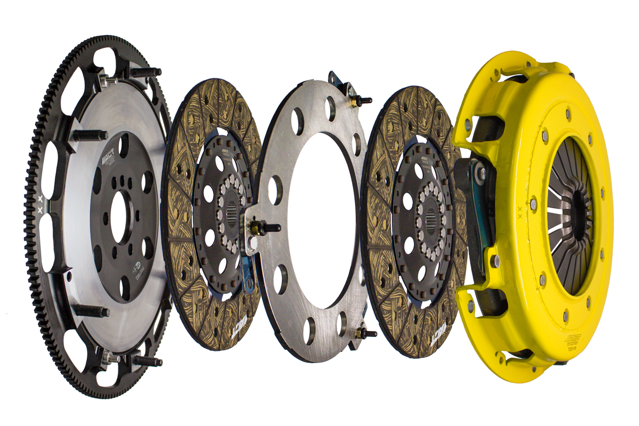 Advanced Clutch Transmission Clutch Kit - T1S-G02 ⚠ Check if this part fits your vehicle Select your vehicle to confirm fitment before you buy. Select vehicle ACT Twin Disc Heavy Duty Street Clutch Kit Manufacturer: Advanced Clutch $1,490.00 Qty: Add to cart Ship to Select country United States of America Afghanistan Åland Islands Albania Algeria American Samoa Andorra Angola Anguilla Antarctica Antigua and Barbuda Argentina Armenia Aruba Australia Austria Azerbaijan Bahamas Bahrain Bangladesh Barbados Belarus Belgium Belize Benin Bermuda Bhutan Bolivia (Plurinational State of) Bonaire, Sint Eustatius and Saba Bosnia and Herzegovina Botswana Bouvet Island Brazil British Indian Ocean Territory Brunei Darussalam Bulgaria Burkina Faso Burundi Cabo Verde Cambodia Cameroon Canada Cayman Islands Central African Republic Chad Chile China Christmas Island Cocos (Keeling) Islands Colombia Comoros Congo Congo (Democratic Republic of the) Cook Islands Costa Rica Côte d'Ivoire Croatia Cuba Curaçao Cyprus Czechia Denmark Djibouti Dominica Dominican Republic Ecuador Egypt El Salvador Equatorial Guinea Eritrea Estonia Eswatini Ethiopia Falkland Islands (Malvinas) Faroe Islands Fiji Finland France French Guiana French Polynesia French Southern Territories Gabon Gambia Georgia Germany Ghana Gibraltar Greece Greenland Grenada Guadeloupe Guam Guatemala Guernsey Guinea Guinea-Bissau Guyana Haiti Heard Island and McDonald Islands Holy See Honduras Hong Kong Hungary Iceland India Indonesia Iran (Islamic Republic of) Iraq Ireland Isle of Man Israel Italy Jamaica Japan Jersey Jordan Kazakhstan Kenya Kiribati Korea (Democratic People's Republic of) Korea (Republic of) Kuwait Kyrgyzstan Lao People's Democratic Republic Latvia Lebanon Lesotho Liberia Libya Liechtenstein Lithuania Luxembourg Macao Madagascar Malawi Malaysia Maldives Mali Malta Marshall Islands Martinique Mauritania Mauritius Mayotte Mexico Micronesia (Federated States of) Moldova (Republic of) Monaco Mongolia Montenegro Montserrat Morocco Mozambique Myanmar Namibia Nauru Nepal Netherlands New Caledonia New Zealand Nicaragua Niger Nigeria Niue Norfolk Island North Macedonia Northern Mariana Islands Norway Oman Pakistan Palau Palestine, State of Panama Papua New Guinea Paraguay Peru Philippines Pitcairn Poland Portugal Puerto Rico Qatar Réunion Romania Russian Federation Rwanda Saint Barthélemy Saint Helena, Ascension and Tristan da Cunha Saint Kitts and Nevis Saint Lucia Saint Martin (French part) Saint Pierre and Miquelon Saint Vincent and the Grenadines Samoa San Marino Sao Tome and Principe Saudi Arabia Senegal Serbia Seychelles Sierra Leone Singapore Sint Maarten (Dutch part) Slovakia Slovenia Solomon Islands Somalia South Africa South Georgia and the South Sandwich Islands South Sudan Spain Sri Lanka Sudan Suriname Svalbard and Jan Mayen Sweden Switzerland Syrian Arab Republic Taiwan, Province of China Tajikistan Tanzania, United Republic of Thailand Timor-Leste Togo Tokelau Tonga Trinidad and Tobago Tunisia Turkey Turkmenistan Turks and Caicos Islands Tuvalu Uganda Ukraine United Arab Emirates United Kingdom of Great Britain and Northern Ireland United States Minor Outlying Islands Uruguay Uzbekistan Vanuatu Venezuela (Bolivarian Republic of) Vietnam Virgin Islands (British) Virgin Islands (U.S.) Wallis and Futuna Western Sahara Yemen Zambia Zimbabwe * Other * Shipping Method Name Estimated Delivery Price No shipping options Apply Custom wishlist OK Add to wishlist Add to compare list Email a friend T1S-G02 street, twin disc kit offers twice the number of disc surfaces for better wear, heat capacity and long life compared to single disc kits. These kits use a proprietary Positive Lift Floater System design, which results in quiet operation with no floater rattle and no posts to wear. ACT twin disc kits endure an exclusive four-stage, heat-treating process on all diaphragms. The ACT twin disc kits features the ability to adjust for disc wear and provides equal disengagement for discs. The Performance street rigid-hub discs feature premium organic materials with high copper content for better heat transfer and steel-backed lining for greater burst strength and durability. The chrome-moly hub is heat-treated for strength and durability. Rivet design and materials are carefully selected for maximum strength. All ACT twin disc kits include a CNC-machined and dynamically balanced flywheel to ensure trouble-free installation and operation. ACT twin disc kits include a pressure plate, two discs, a floater, flywheel and alignment tool. Some kits may include a pilot bearing and release bearing.Note: Light pedal effort, smooth engagement, OE to mild gear rattle; Disc surfaces doubled for better wear, heat capacity and longer life, further extended by ACT's exclusive diaphragm design; Carefully engineered, precisely assembled, accurately balanced, with premium organic friction materials for heat tolerance and reduced fade; Recommended for high horsepower street or race use; 100% clamp load tested and dynamically computer balanced for smooth high RPM reliability Products specifications Attribute name Attribute value SFI 1.2 Product Weight (lbs.) 43.8 Torque Capacity Over OE 86% Torque Capacity (ft/lbs.) 891 Prop 65 - Short Label WARNING: Cancer and Reproductive Harm - www.p65warnings.ca.gov Prop 65 Long Label Warning: This product can expose you to chemicals including carbon black, glass wool fibers, or silica (in clutch discs), chromium and nickel, which are known to the State of California to cause cancer or birth defects or other reproductive harm. For more information, visit www.P65Warnings.ca.gov Flywheel Included Yes Prop 65 Yes/No Yes Pilot Bushing Included No Release Bearing Included No Clutch Disc Diameter 10.5, 267 Disc Material Organic Input Spline Quantity 26 Input Shaft Diameter 1.125 Alignment Tool Included Yes Disc Type Sprung Solid Solid Clutch Slave Cylinder Included No Flywheel Bolts Included No Pilot Bearing Included No Clutch Mas