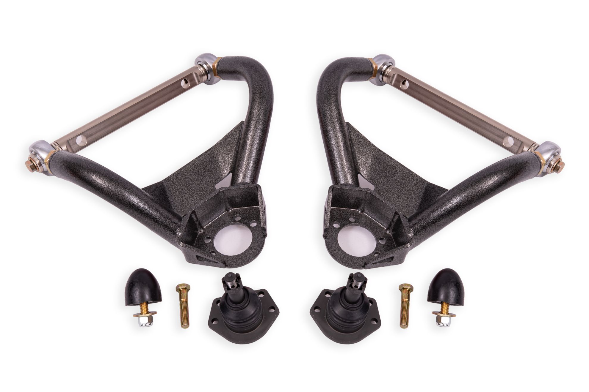 BMR Suspension Suspension Control Arm - AAU403H ⚠ Check if this part fits your vehicle Select your vehicle to confirm fitment before you buy. Select vehicle Upper Control Arms Manufacturer: BMR Suspension $519.95 Qty: Add to cart Ship to Select country United States of America Afghanistan Åland Islands Albania Algeria American Samoa Andorra Angola Anguilla Antarctica Antigua and Barbuda Argentina Armenia Aruba Australia Austria Azerbaijan Bahamas Bahrain Bangladesh Barbados Belarus Belgium Belize Benin Bermuda Bhutan Bolivia (Plurinational State of) Bonaire, Sint Eustatius and Saba Bosnia and Herzegovina Botswana Bouvet Island Brazil British Indian Ocean Territory Brunei Darussalam Bulgaria Burkina Faso Burundi Cabo Verde Cambodia Cameroon Canada Cayman Islands Central African Republic Chad Chile China Christmas Island Cocos (Keeling) Islands Colombia Comoros Congo Congo (Democratic Republic of the) Cook Islands Costa Rica Côte d'Ivoire Croatia Cuba Curaçao Cyprus Czechia Denmark Djibouti Dominica Dominican Republic Ecuador Egypt El Salvador Equatorial Guinea Eritrea Estonia Eswatini Ethiopia Falkland Islands (Malvinas) Faroe Islands Fiji Finland France French Guiana French Polynesia French Southern Territories Gabon Gambia Georgia Germany Ghana Gibraltar Greece Greenland Grenada Guadeloupe Guam Guatemala Guernsey Guinea Guinea-Bissau Guyana Haiti Heard Island and McDonald Islands Holy See Honduras Hong Kong Hungary Iceland India Indonesia Iran (Islamic Republic of) Iraq Ireland Isle of Man Israel Italy Jamaica Japan Jersey Jordan Kazakhstan Kenya Kiribati Korea (Democratic People's Republic of) Korea (Republic of) Kuwait Kyrgyzstan Lao People's Democratic Republic Latvia Lebanon Lesotho Liberia Libya Liechtenstein Lithuania Luxembourg Macao Madagascar Malawi Malaysia Maldives Mali Malta Marshall Islands Martinique Mauritania Mauritius Mayotte Mexico Micronesia (Federated States of) Moldova (Republic of) Monaco Mongolia Montenegro Montserrat Morocco Mozambique Myanmar Namibia Nauru Nepal Netherlands New Caledonia New Zealand Nicaragua Niger Nigeria Niue Norfolk Island North Macedonia Northern Mariana Islands Norway Oman Pakistan Palau Palestine, State of Panama Papua New Guinea Paraguay Peru Philippines Pitcairn Poland Portugal Puerto Rico Qatar Réunion Romania Russian Federation Rwanda Saint Barthélemy Saint Helena, Ascension and Tristan da Cunha Saint Kitts and Nevis Saint Lucia Saint Martin (French part) Saint Pierre and Miquelon Saint Vincent and the Grenadines Samoa San Marino Sao Tome and Principe Saudi Arabia Senegal Serbia Seychelles Sierra Leone Singapore Sint Maarten (Dutch part) Slovakia Slovenia Solomon Islands Somalia South Africa South Georgia and the South Sandwich Islands South Sudan Spain Sri Lanka Sudan Suriname Svalbard and Jan Mayen Sweden Switzerland Syrian Arab Republic Taiwan, Province of China Tajikistan Tanzania, United Republic of Thailand Timor-Leste Togo Tokelau Tonga Trinidad and Tobago Tunisia Turkey Turkmenistan Turks and Caicos Islands Tuvalu Uganda Ukraine United Arab Emirates United Kingdom of Great Britain and Northern Ireland United States Minor Outlying Islands Uruguay Uzbekistan Vanuatu Venezuela (Bolivarian Republic of) Vietnam Virgin Islands (British) Virgin Islands (U.S.) Wallis and Futuna Western Sahara Yemen Zambia Zimbabwe * Other * Shipping Method Name Estimated Delivery Price No shipping options Apply Custom wishlist OK Add to wishlist Add to compare list Email a friend A-arms, Upper, Adjustable, Standard Ball Joint Products specifications Attribute name Attribute value Bushings Included Yes Control Arm Finish Black Hammertone Powdercoated Control Arm Material Steel Control Arm Style Tubular Hardware Included No Quantity Sold as a pair. Adjustable Yes Ball Joint Included Yes Bushing Material Steel rod end 🚗 Compatible with 65 vehicles are compatible with this product Year Make Model 1967 Chevrolet Chevelle 1968 Chevrolet Chevelle 1969 Chevrolet Chevelle 1970 Chevrolet Chevelle 1971 Chevrolet Chevelle 1972 Chevrolet Chevelle 1964 Chevrolet El Camino 1965 Chevrolet El Camino 1966 Chevrolet El Camino 1967 Chevrolet El Camino 1968 Chevrolet El Camino 1969 Chevrolet El Camino 1970 Chevrolet El Camino 1971 Chevrolet El Camino 1972 Chevrolet El Camino 1970 Chevrolet Monte Carlo 1971 Chevrolet Monte Carlo 1972 Chevrolet Monte Carlo 1970 Buick Skylark 1971 Buick Skylark 1972 Buick Skylark 1965 Oldsmobile Cutlass 1966 Oldsmobile Cutlass 1967 Oldsmobile Cutlass 1964 Pontiac GTO 1965 Pontiac GTO 1966 Pontiac GTO 1969 Pontiac GTO 1970 Pontiac GTO 1971 Pontiac GTO 1972 Pontiac GTO 1967 Buick Skylark 1968 Buick Skylark 1969 Buick Skylark 1968 Oldsmobile Cutlass 1969 Oldsmobile Cutlass 1970 Oldsmobile Cutlass 1971 Oldsmobile Cutlass 1972 Oldsmobile Cutlass 1971 Oldsmobile 442 1967 Pontiac GTO 1968 Pontiac GTO 1965 Pontiac LeMans 1966 Pontiac LeMans 1967 Pontiac LeMans 1968 Pontiac LeMans 1969 Pontiac LeMans 1970 Pontiac LeMans 1971 Pontiac LeMans 1972 Pontiac LeMans 1965 Buick Gran Sport 1966 Buick Gran Sport 1967 Buick Gran Sport 1965 Buick Skylark 1966 Buick Skylark 1964 Buick Skylark 1964 Oldsmobile Cutlass 1964 Pontiac LeMans 1965 Oldsmobile 442 1966 Oldsmobile 442 1967 Oldsmobile 442 1968 Oldsmobile 442 1969 Oldsmobile 442 1970 Oldsmobile 442 1964 Oldsmobile 442