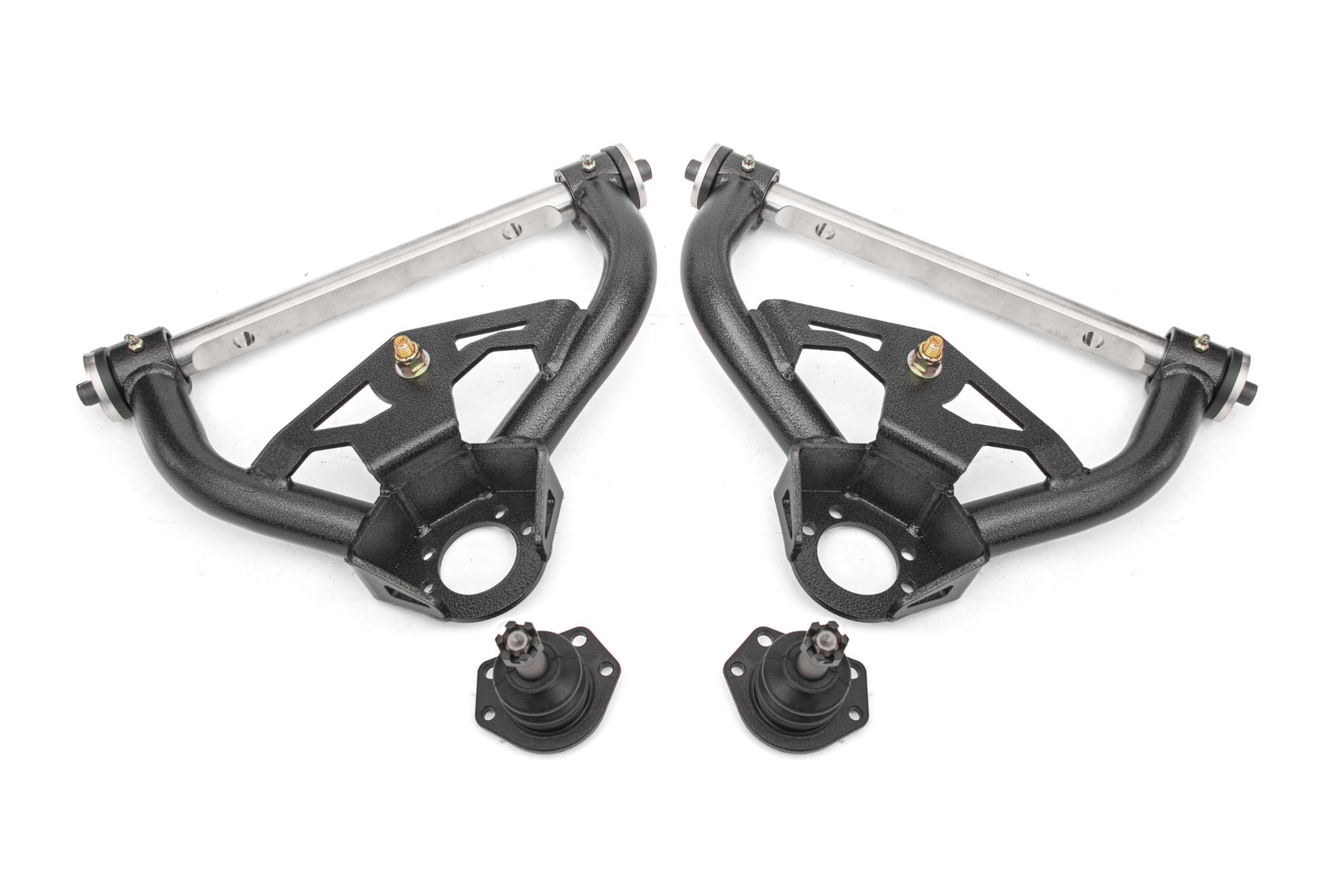 BMR Suspension Suspension Control Arm - AAU461H ⚠ Check if this part fits your vehicle Select your vehicle to confirm fitment before you buy. Select vehicle Upper Control Arms Manufacturer: BMR Suspension $369.95 Qty: Add to cart Ship to Select country United States of America Afghanistan Åland Islands Albania Algeria American Samoa Andorra Angola Anguilla Antarctica Antigua and Barbuda Argentina Armenia Aruba Australia Austria Azerbaijan Bahamas Bahrain Bangladesh Barbados Belarus Belgium Belize Benin Bermuda Bhutan Bolivia (Plurinational State of) Bonaire, Sint Eustatius and Saba Bosnia and Herzegovina Botswana Bouvet Island Brazil British Indian Ocean Territory Brunei Darussalam Bulgaria Burkina Faso Burundi Cabo Verde Cambodia Cameroon Canada Cayman Islands Central African Republic Chad Chile China Christmas Island Cocos (Keeling) Islands Colombia Comoros Congo Congo (Democratic Republic of the) Cook Islands Costa Rica Côte d'Ivoire Croatia Cuba Curaçao Cyprus Czechia Denmark Djibouti Dominica Dominican Republic Ecuador Egypt El Salvador Equatorial Guinea Eritrea Estonia Eswatini Ethiopia Falkland Islands (Malvinas) Faroe Islands Fiji Finland France French Guiana French Polynesia French Southern Territories Gabon Gambia Georgia Germany Ghana Gibraltar Greece Greenland Grenada Guadeloupe Guam Guatemala Guernsey Guinea Guinea-Bissau Guyana Haiti Heard Island and McDonald Islands Holy See Honduras Hong Kong Hungary Iceland India Indonesia Iran (Islamic Republic of) Iraq Ireland Isle of Man Israel Italy Jamaica Japan Jersey Jordan Kazakhstan Kenya Kiribati Korea (Democratic People's Republic of) Korea (Republic of) Kuwait Kyrgyzstan Lao People's Democratic Republic Latvia Lebanon Lesotho Liberia Libya Liechtenstein Lithuania Luxembourg Macao Madagascar Malawi Malaysia Maldives Mali Malta Marshall Islands Martinique Mauritania Mauritius Mayotte Mexico Micronesia (Federated States of) Moldova (Republic of) Monaco Mongolia Montenegro Montserrat Morocco Mozambique Myanmar Namibia Nauru Nepal Netherlands New Caledonia New Zealand Nicaragua Niger Nigeria Niue Norfolk Island North Macedonia Northern Mariana Islands Norway Oman Pakistan Palau Palestine, State of Panama Papua New Guinea Paraguay Peru Philippines Pitcairn Poland Portugal Puerto Rico Qatar Réunion Romania Russian Federation Rwanda Saint Barthélemy Saint Helena, Ascension and Tristan da Cunha Saint Kitts and Nevis Saint Lucia Saint Martin (French part) Saint Pierre and Miquelon Saint Vincent and the Grenadines Samoa San Marino Sao Tome and Principe Saudi Arabia Senegal Serbia Seychelles Sierra Leone Singapore Sint Maarten (Dutch part) Slovakia Slovenia Solomon Islands Somalia South Africa South Georgia and the South Sandwich Islands South Sudan Spain Sri Lanka Sudan Suriname Svalbard and Jan Mayen Sweden Switzerland Syrian Arab Republic Taiwan, Province of China Tajikistan Tanzania, United Republic of Thailand Timor-Leste Togo Tokelau Tonga Trinidad and Tobago Tunisia Turkey Turkmenistan Turks and Caicos Islands Tuvalu Uganda Ukraine United Arab Emirates United Kingdom of Great Britain and Northern Ireland United States Minor Outlying Islands Uruguay Uzbekistan Vanuatu Venezuela (Bolivarian Republic of) Vietnam Virgin Islands (British) Virgin Islands (U.S.) Wallis and Futuna Western Sahara Yemen Zambia Zimbabwe * Other * Shipping Method Name Estimated Delivery Price No shipping options Apply Custom wishlist OK Add to wishlist Add to compare list Email a friend A-arms, Upper, Non-adjustable, Delrin, Std Ball Joint Products specifications Attribute name Attribute value Adjustable No Ball Joint Included Yes Bushing Material Delrin Bushings Included Yes Control Arm Finish Black Hammertone Powdercoated Control Arm Material Steel Control Arm Style Tubular Hardware Included No Notes Provides an additional 2 degrees of caster Quantity Sold as a pair. 🚗 Compatible with 43 vehicles are compatible with this product Year Make Model 1978 Buick Regal 1979 Buick Regal 1980 Buick Regal 1982 Buick Regal 1983 Buick Regal 1984 Buick Regal 1985 Buick Regal 1986 Buick Regal 1978 Chevrolet Malibu 1979 Chevrolet Malibu 1980 Chevrolet Malibu 1981 Chevrolet Malibu 1983 Chevrolet Malibu 1982 Chevrolet Malibu 1979 Chevrolet Monte Carlo 1981 Chevrolet Monte Carlo 1982 Chevrolet Monte Carlo 1983 Chevrolet Monte Carlo 1984 Chevrolet Monte Carlo 1985 Chevrolet Monte Carlo 1986 Chevrolet Monte Carlo 1978 Chevrolet Monte Carlo 1980 Chevrolet Monte Carlo 1980 Oldsmobile Cutlass 1978 Oldsmobile Cutlass 1979 Oldsmobile Cutlass 1978 Pontiac Grand Prix 1979 Pontiac Grand Prix 1980 Pontiac Grand Prix 1983 Pontiac Grand Prix 1984 Pontiac Grand Prix 1985 Pontiac Grand Prix 1986 Pontiac Grand Prix 1985 Oldsmobile Cutlass 1986 Oldsmobile Cutlass 1981 Oldsmobile Cutlass 1981 Buick Regal 1987 Buick Regal 1981 Pontiac Grand Prix 1982 Pontiac Grand Prix 1987 Pontiac Grand Prix 1987 Chevrolet Monte Carlo 1987 Oldsmobile Cutlass