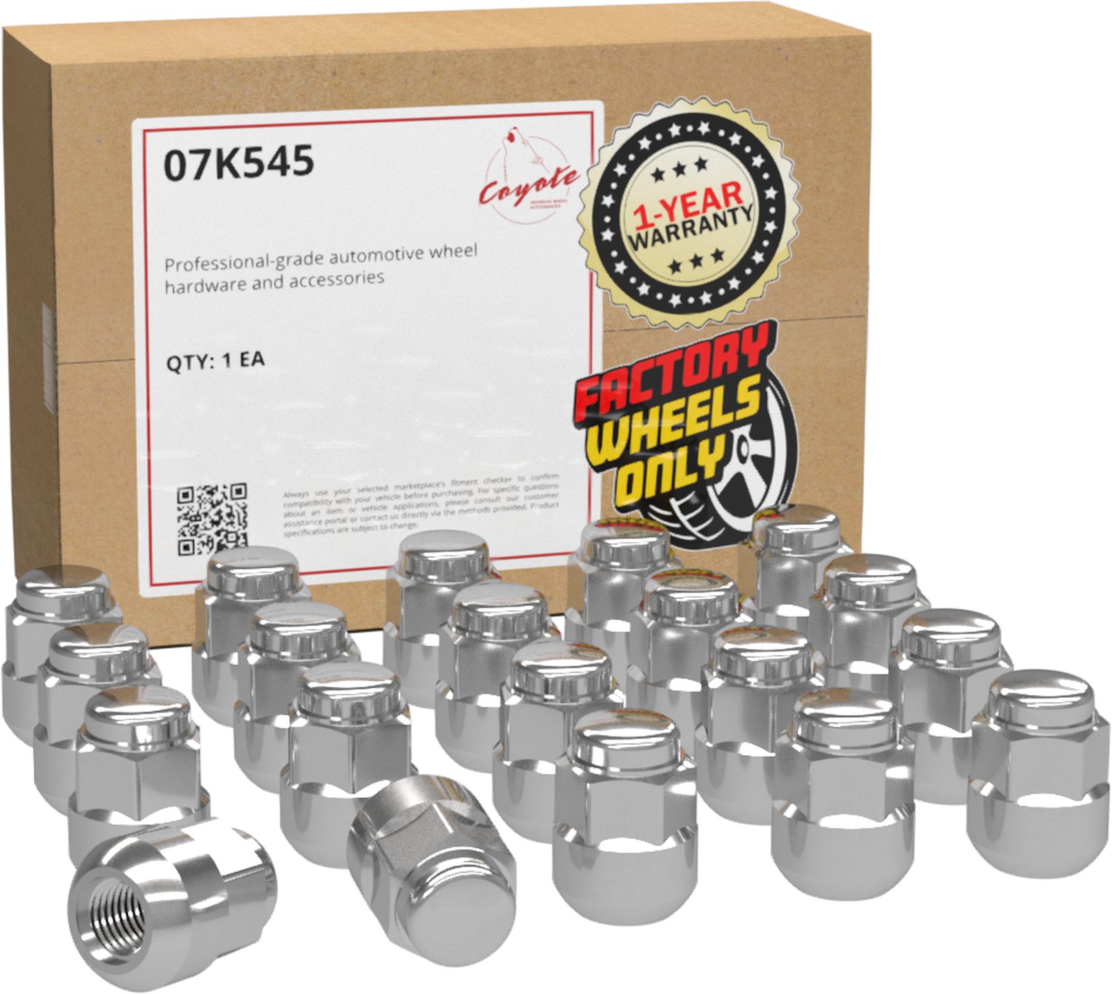 Coyote Premium Wheel Accessories Wheel Lug Nut - 07K545 ⚠ Check if this part fits your vehicle Select your vehicle to confirm fitment before you buy. Select vehicle Factory Style - Lug Pack - Honda 90381-S87-A01 M12x1.5 (3/4)(20 Lugs) Manufacturer: Coyote Premium Wheel Accessories $21.26 This product has a minimum quantity of 8 Qty: Add to cart Ship to Select country United States of America Afghanistan Åland Islands Albania Algeria American Samoa Andorra Angola Anguilla Antarctica Antigua and Barbuda Argentina Armenia Aruba Australia Austria Azerbaijan Bahamas Bahrain Bangladesh Barbados Belarus Belgium Belize Benin Bermuda Bhutan Bolivia (Plurinational State of) Bonaire, Sint Eustatius and Saba Bosnia and Herzegovina Botswana Bouvet Island Brazil British Indian Ocean Territory Brunei Darussalam Bulgaria Burkina Faso Burundi Cabo Verde Cambodia Cameroon Canada Cayman Islands Central African Republic Chad Chile China Christmas Island Cocos (Keeling) Islands Colombia Comoros Congo Congo (Democratic Republic of the) Cook Islands Costa Rica Côte d'Ivoire Croatia Cuba Curaçao Cyprus Czechia Denmark Djibouti Dominica Dominican Republic Ecuador Egypt El Salvador Equatorial Guinea Eritrea Estonia Eswatini Ethiopia Falkland Islands (Malvinas) Faroe Islands Fiji Finland France French Guiana French Polynesia French Southern Territories Gabon Gambia Georgia Germany Ghana Gibraltar Greece Greenland Grenada Guadeloupe Guam Guatemala Guernsey Guinea Guinea-Bissau Guyana Haiti Heard Island and McDonald Islands Holy See Honduras Hong Kong Hungary Iceland India Indonesia Iran (Islamic Republic of) Iraq Ireland Isle of Man Israel Italy Jamaica Japan Jersey Jordan Kazakhstan Kenya Kiribati Korea (Democratic People's Republic of) Korea (Republic of) Kuwait Kyrgyzstan Lao People's Democratic Republic Latvia Lebanon Lesotho Liberia Libya Liechtenstein Lithuania Luxembourg Macao Madagascar Malawi Malaysia Maldives Mali Malta Marshall Islands Martinique Mauritania Mauritius Mayotte Mexico Micronesia (Federated States of) Moldova (Republic of) Monaco Mongolia Montenegro Montserrat Morocco Mozambique Myanmar Namibia Nauru Nepal Netherlands New Caledonia New Zealand Nicaragua Niger Nigeria Niue Norfolk Island North Macedonia Northern Mariana Islands Norway Oman Pakistan Palau Palestine, State of Panama Papua New Guinea Paraguay Peru Philippines Pitcairn Poland Portugal Puerto Rico Qatar Réunion Romania Russian Federation Rwanda Saint Barthélemy Saint Helena, Ascension and Tristan da Cunha Saint Kitts and Nevis Saint Lucia Saint Martin (French part) Saint Pierre and Miquelon Saint Vincent and the Grenadines Samoa San Marino Sao Tome and Principe Saudi Arabia Senegal Serbia Seychelles Sierra Leone Singapore Sint Maarten (Dutch part) Slovakia Slovenia Solomon Islands Somalia South Africa South Georgia and the South Sandwich Islands South Sudan Spain Sri Lanka Sudan Suriname Svalbard and Jan Mayen Sweden Switzerland Syrian Arab Republic Taiwan, Province of China Tajikistan Tanzania, United Republic of Thailand Timor-Leste Togo Tokelau Tonga Trinidad and Tobago Tunisia Turkey Turkmenistan Turks and Caicos Islands Tuvalu Uganda Ukraine United Arab Emirates United Kingdom of Great Britain and Northern Ireland United States Minor Outlying Islands Uruguay Uzbekistan Vanuatu Venezuela (Bolivarian Republic of) Vietnam Virgin Islands (British) Virgin Islands (U.S.) Wallis and Futuna Western Sahara Yemen Zambia Zimbabwe * Other * Shipping Method Name Estimated Delivery Price No shipping options Apply Custom wishlist OK Add to wishlist Add to compare list Email a friend Factory Style - Lug Pack - Honda 90381-S87-A01 M12x1.5 (3/4)(20 Lugs) Products specifications Attribute name Attribute value Finish Chrome Style OEM Thread M12 x 1.5 Length 1.20 Hex 19mm (3/4 ) Hex Lug Finish Chrome Shank Diameter Ball Seat Country of Origin CN 🚗 Compatible with 167 vehicles are compatible with this product Year Make Model 2003 Honda Accord 2002 Honda CR-V 2003 Honda CR-V 2004 Honda Accord 2004 Honda Civic 2004 Honda CR-V 2005 Honda Civic 2005 Honda Accord 2005 Honda CR-V 2006 Honda Accord 2006 Honda Civic 2006 Honda CR-V 2007 Honda Accord 2007 Honda Civic 2007 Honda CR-V 2008 Honda CR-V 2008 Honda Civic 2008 Honda Accord 2009 Honda Accord 2009 Honda Civic 2009 Honda CR-V 2010 Honda Civic 2010 Honda CR-V 2011 Honda Civic 2011 Honda CR-V 2012 Honda Civic 2012 Honda CR-V 2013 Honda CR-V 2013 Honda Civic 2014 Honda CR-V 2014 Honda Civic 2015 Honda CR-V 2015 Honda Civic 2010 Honda Accord 2011 Honda Accord 2012 Honda Accord 2000 Honda Accord 2001 Honda Accord 2002 Honda Accord 2017 Honda Civic 2018 Honda Accord 2018 Honda Civic 2019 Honda Civic 2019 Honda Accord 2020 Honda Accord 2020 Honda Civic 2022 Honda Civic 2021 Honda Civic 2021 Honda Accord 2003 Acura CL 2004 Acura TL 2005 Acura TL 2006 Acura TL 2013 Honda Accord 2014 Honda Accord 2015 Honda Accord 2016 Honda Accord 2017 Honda Accord 2007 Acura TL 2008 Acura TL 1998 Honda CR-V 1999 Honda CR-V 2000 Honda CR-V 2001 Honda CR-V 2013 Acura ILX 2014 Acura ILX 2015 Acura ILX 1998 Honda Accord 1999 Honda Accord 2023 Honda Civic 2024 Honda Civic 2025 Honda Civic 2026 Honda Civic 2010 Acura RDX 2011 Acura RDX 2012 Acura RDX 2013 Acura RDX 2014 Acura RDX 2015 Acura RDX 2016 Acura ILX 2016 Acura RDX 2017 Acura RDX 2017 Acura ILX 2018 Acura RDX 2018 Acura ILX 2016 Honda Civic 2022 Honda Accord 2023 Honda Accord 2024 Honda Accord 2025 Honda Accord 1997 Honda CR-V 2016 Honda CR-V 2001 Acura CL 2002 Acura CL 2019 Honda Insight 2020 Honda Insight 2021 Honda Insight 2022 Honda Insight 2003 Honda Pilot 2004 Honda Pilot 2005 Honda Pilot 2006 Honda Pilot 2007 Honda Pilot 2008 Honda Pilot 2001 Acura MDX 2002 Acura MDX 2003 Acura MDX 1999 Acura TL 2000 Acura TL 2001 Acura TL 2002 Acura TL 2003 Acura TL 1995 Honda Odyssey 1996 Honda Odyssey 1997 Honda Odyssey 1998 Honda Odyssey 1999 Honda Odyssey 2000 Honda Odyssey 2001 Honda Odyssey 2002 Honda Odyssey 2003 Honda Odyssey 2004 Acura MDX 2004 Honda Odyssey 20