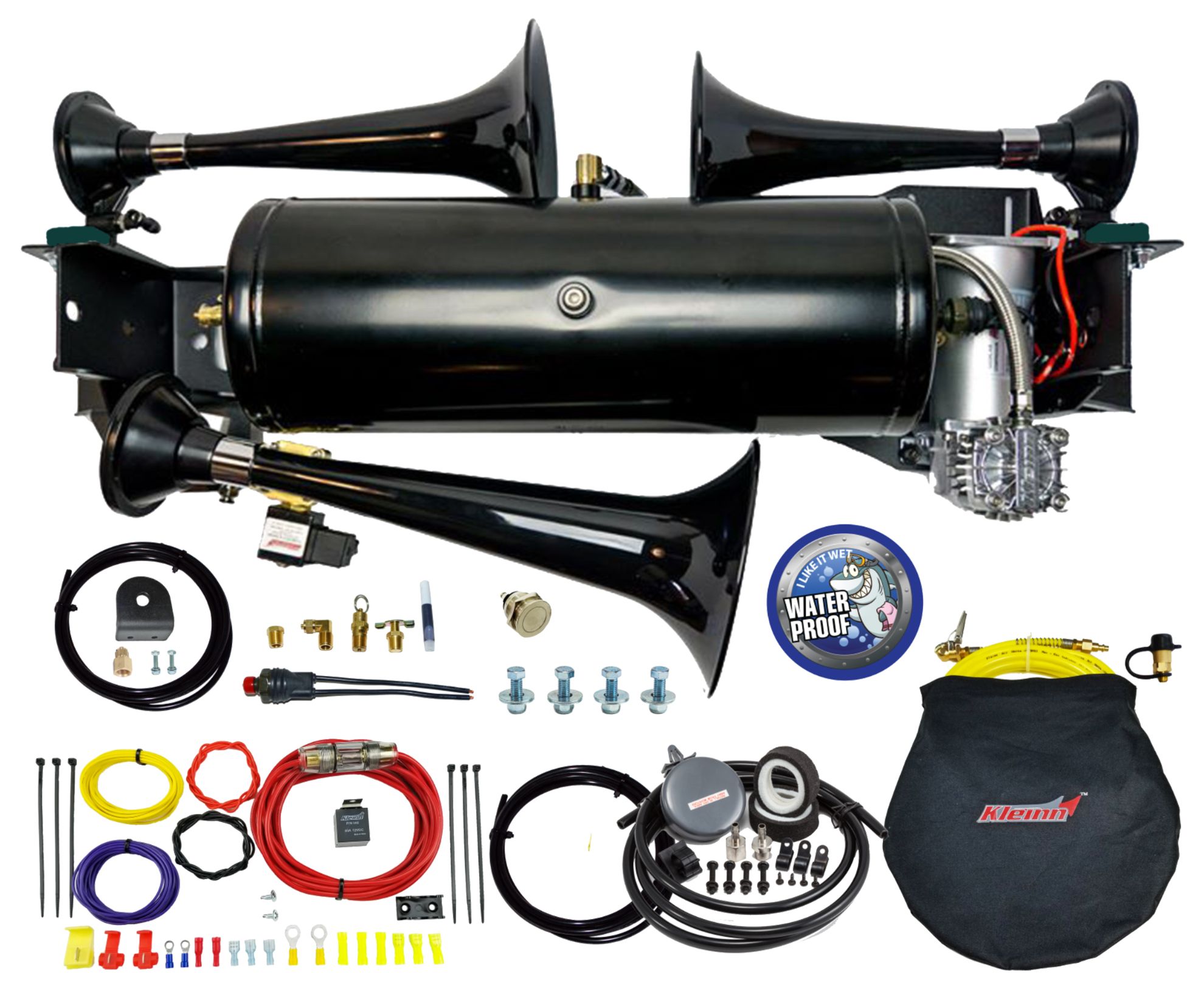 Kleinn Automotive Accessories Air Horn Compressor Kit - RAM1500-230 ⚠ Check if this part fits your vehicle Select your vehicle to confirm fitment before you buy. Select vehicle Train Horn Manufacturer: Kleinn Automotive Accessories $1,329.95 Qty: Add to cart Ship to Select country United States of America Afghanistan Åland Islands Albania Algeria American Samoa Andorra Angola Anguilla Antarctica Antigua and Barbuda Argentina Armenia Aruba Australia Austria Azerbaijan Bahamas Bahrain Bangladesh Barbados Belarus Belgium Belize Benin Bermuda Bhutan Bolivia (Plurinational State of) Bonaire, Sint Eustatius and Saba Bosnia and Herzegovina Botswana Bouvet Island Brazil British Indian Ocean Territory Brunei Darussalam Bulgaria Burkina Faso Burundi Cabo Verde Cambodia Cameroon Canada Cayman Islands Central African Republic Chad Chile China Christmas Island Cocos (Keeling) Islands Colombia Comoros Congo Congo (Democratic Republic of the) Cook Islands Costa Rica Côte d'Ivoire Croatia Cuba Curaçao Cyprus Czechia Denmark Djibouti Dominica Dominican Republic Ecuador Egypt El Salvador Equatorial Guinea Eritrea Estonia Eswatini Ethiopia Falkland Islands (Malvinas) Faroe Islands Fiji Finland France French Guiana French Polynesia French Southern Territories Gabon Gambia Georgia Germany Ghana Gibraltar Greece Greenland Grenada Guadeloupe Guam Guatemala Guernsey Guinea Guinea-Bissau Guyana Haiti Heard Island and McDonald Islands Holy See Honduras Hong Kong Hungary Iceland India Indonesia Iran (Islamic Republic of) Iraq Ireland Isle of Man Israel Italy Jamaica Japan Jersey Jordan Kazakhstan Kenya Kiribati Korea (Democratic People's Republic of) Korea (Republic of) Kuwait Kyrgyzstan Lao People's Democratic Republic Latvia Lebanon Lesotho Liberia Libya Liechtenstein Lithuania Luxembourg Macao Madagascar Malawi Malaysia Maldives Mali Malta Marshall Islands Martinique Mauritania Mauritius Mayotte Mexico Micronesia (Federated States of) Moldova (Republic of) Monaco Mongolia Montenegro Montserrat Morocco Mozambique Myanmar Namibia Nauru Nepal Netherlands New Caledonia New Zealand Nicaragua Niger Nigeria Niue Norfolk Island North Macedonia Northern Mariana Islands Norway Oman Pakistan Palau Palestine, State of Panama Papua New Guinea Paraguay Peru Philippines Pitcairn Poland Portugal Puerto Rico Qatar Réunion Romania Russian Federation Rwanda Saint Barthélemy Saint Helena, Ascension and Tristan da Cunha Saint Kitts and Nevis Saint Lucia Saint Martin (French part) Saint Pierre and Miquelon Saint Vincent and the Grenadines Samoa San Marino Sao Tome and Principe Saudi Arabia Senegal Serbia Seychelles Sierra Leone Singapore Sint Maarten (Dutch part) Slovakia Slovenia Solomon Islands Somalia South Africa South Georgia and the South Sandwich Islands South Sudan Spain Sri Lanka Sudan Suriname Svalbard and Jan Mayen Sweden Switzerland Syrian Arab Republic Taiwan, Province of China Tajikistan Tanzania, United Republic of Thailand Timor-Leste Togo Tokelau Tonga Trinidad and Tobago Tunisia Turkey Turkmenistan Turks and Caicos Islands Tuvalu Uganda Ukraine United Arab Emirates United Kingdom of Great Britain and Northern Ireland United States Minor Outlying Islands Uruguay Uzbekistan Vanuatu Venezuela (Bolivarian Republic of) Vietnam Virgin Islands (British) Virgin Islands (U.S.) Wallis and Futuna Western Sahara Yemen Zambia Zimbabwe * Other * Shipping Method Name Estimated Delivery Price No shipping options Apply Custom wishlist OK Add to wishlist Add to compare list Email a friend RAM 1500 230 TRAIN HORN Products specifications Attribute name Attribute value Attribute 1 6350RC Heavy-Duty Waterproof Air Compressor 150 PSI / 100% Duty Cycle Attribute 2 Model 230 Beast Black High Impact ABS Triple Train Horn - Produces a 154.3 dB Blast Attribute 3 Custom Powder Coated Mounting Brackets; Made in the USA! Attribute 4 3-Gallon Air Tank with Cortec Interior Anti-Corrosion Coating; Made in the USA! Attribute 5 Tire Inflator with 30 Foot Hose, Remote Quick Connect and Storage Bag Prop 65 - Short Label WARNING: Cancer and Reproductive Harm - www.p65warnings.ca.gov Prop 65 (C, R or CR) CR Prop 65 Warning Label KleinnProp65Label.jpg Prop 65 Yes/No Yes 🚗 Compatible with 10 vehicles are compatible with this product Year Make Model 2009 Dodge Ram 1500 2010 Dodge Ram 1500 2011 Ram 1500 2012 Ram 1500 2013 Ram 1500 2014 Ram 1500 2015 Ram 1500 2016 Ram 1500 2017 Ram 1500 2018 Ram 1500