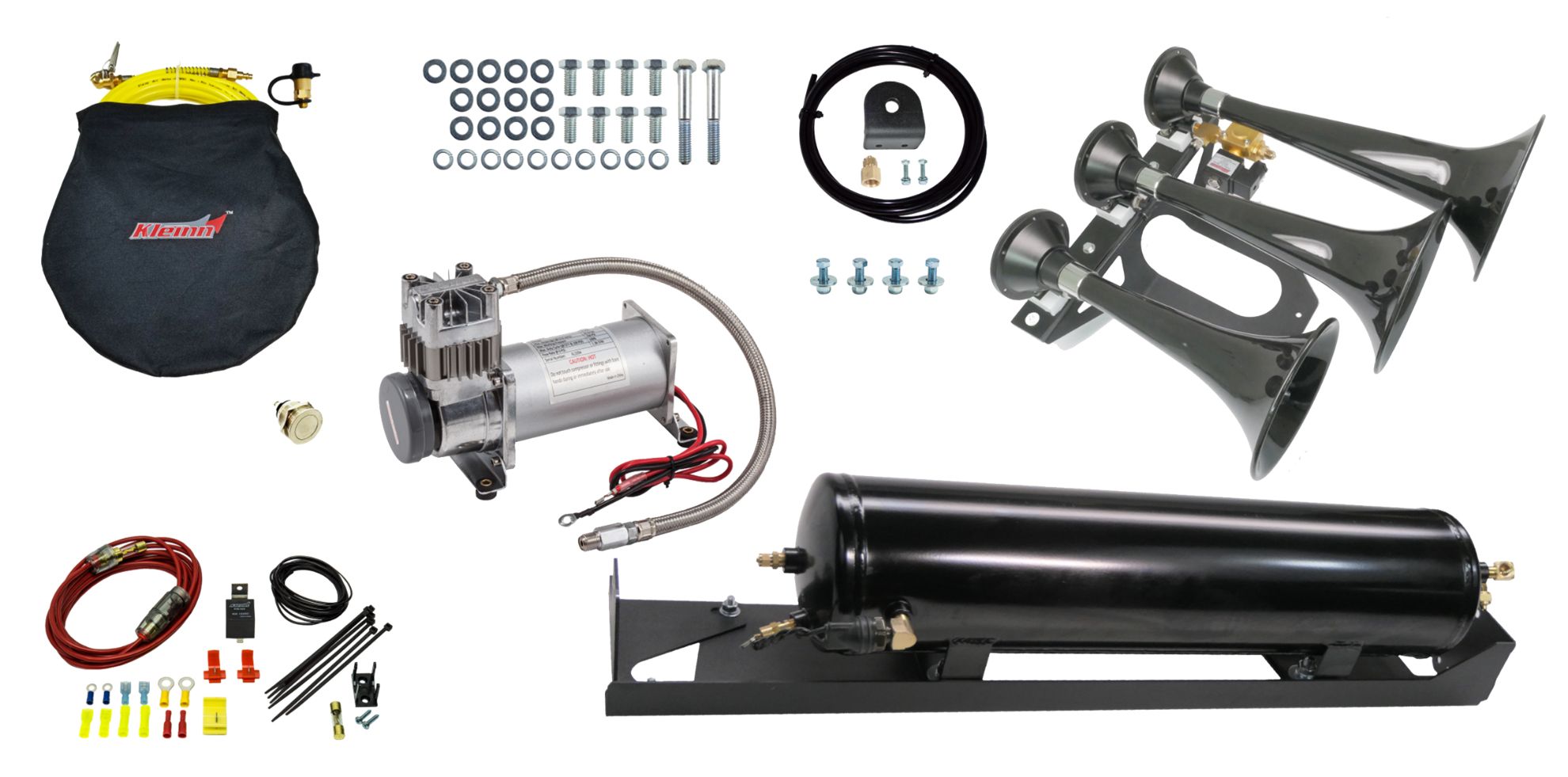 Kleinn Automotive Accessories Air Horn Compressor Kit - SDKIT17-230STL ⚠ Check if this part fits your vehicle Select your vehicle to confirm fitment before you buy. Select vehicle Bolt-On Train Horn Manufacturer: Kleinn Automotive Accessories $1,099.95 Qty: Add to cart Ship to Select country United States of America Afghanistan Åland Islands Albania Algeria American Samoa Andorra Angola Anguilla Antarctica Antigua and Barbuda Argentina Armenia Aruba Australia Austria Azerbaijan Bahamas Bahrain Bangladesh Barbados Belarus Belgium Belize Benin Bermuda Bhutan Bolivia (Plurinational State of) Bonaire, Sint Eustatius and Saba Bosnia and Herzegovina Botswana Bouvet Island Brazil British Indian Ocean Territory Brunei Darussalam Bulgaria Burkina Faso Burundi Cabo Verde Cambodia Cameroon Canada Cayman Islands Central African Republic Chad Chile China Christmas Island Cocos (Keeling) Islands Colombia Comoros Congo Congo (Democratic Republic of the) Cook Islands Costa Rica Côte d'Ivoire Croatia Cuba Curaçao Cyprus Czechia Denmark Djibouti Dominica Dominican Republic Ecuador Egypt El Salvador Equatorial Guinea Eritrea Estonia Eswatini Ethiopia Falkland Islands (Malvinas) Faroe Islands Fiji Finland France French Guiana French Polynesia French Southern Territories Gabon Gambia Georgia Germany Ghana Gibraltar Greece Greenland Grenada Guadeloupe Guam Guatemala Guernsey Guinea Guinea-Bissau Guyana Haiti Heard Island and McDonald Islands Holy See Honduras Hong Kong Hungary Iceland India Indonesia Iran (Islamic Republic of) Iraq Ireland Isle of Man Israel Italy Jamaica Japan Jersey Jordan Kazakhstan Kenya Kiribati Korea (Democratic People's Republic of) Korea (Republic of) Kuwait Kyrgyzstan Lao People's Democratic Republic Latvia Lebanon Lesotho Liberia Libya Liechtenstein Lithuania Luxembourg Macao Madagascar Malawi Malaysia Maldives Mali Malta Marshall Islands Martinique Mauritania Mauritius Mayotte Mexico Micronesia (Federated States of) Moldova (Republic of) Monaco Mongolia Montenegro Montserrat Morocco Mozambique Myanmar Namibia Nauru Nepal Netherlands New Caledonia New Zealand Nicaragua Niger Nigeria Niue Norfolk Island North Macedonia Northern Mariana Islands Norway Oman Pakistan Palau Palestine, State of Panama Papua New Guinea Paraguay Peru Philippines Pitcairn Poland Portugal Puerto Rico Qatar Réunion Romania Russian Federation Rwanda Saint Barthélemy Saint Helena, Ascension and Tristan da Cunha Saint Kitts and Nevis Saint Lucia Saint Martin (French part) Saint Pierre and Miquelon Saint Vincent and the Grenadines Samoa San Marino Sao Tome and Principe Saudi Arabia Senegal Serbia Seychelles Sierra Leone Singapore Sint Maarten (Dutch part) Slovakia Slovenia Solomon Islands Somalia South Africa South Georgia and the South Sandwich Islands South Sudan Spain Sri Lanka Sudan Suriname Svalbard and Jan Mayen Sweden Switzerland Syrian Arab Republic Taiwan, Province of China Tajikistan Tanzania, United Republic of Thailand Timor-Leste Togo Tokelau Tonga Trinidad and Tobago Tunisia Turkey Turkmenistan Turks and Caicos Islands Tuvalu Uganda Ukraine United Arab Emirates United Kingdom of Great Britain and Northern Ireland United States Minor Outlying Islands Uruguay Uzbekistan Vanuatu Venezuela (Bolivarian Republic of) Vietnam Virgin Islands (British) Virgin Islands (U.S.) Wallis and Futuna Western Sahara Yemen Zambia Zimbabwe * Other * Shipping Method Name Estimated Delivery Price No shipping options Apply Custom wishlist OK Add to wishlist Add to compare list Email a friend Ford Bolt-On Train Horn Products specifications Attribute name Attribute value Attribute 1 Features Model 230 triple ABS train horn Attribute 2 3.0 gallon US made air tank, all steel construction, Cortec? internally coated against corrosion Attribute 3 150 PSI rated system with 6350RC air compressor Attribute 4 Direct fit mounting brackets with a spare tire delete horn mount Attribute 5 Tire Inflator with Air Hose, Remote Quick Connect and Storage Bag Attribute 6 Manufactured to SAE J10 and FMVSS 121 standards Prop 65 - Short Label WARNING: Cancer and Reproductive Harm - www.p65warnings.ca.gov Prop 65 (C, R or CR) CR Prop 65 Warning Label KleinnProp65Label.jpg Prop 65 Yes/No Yes 🚗 Compatible with 15 vehicles are compatible with this product Year Make Model 2017 Ford F-250 Super Duty 2017 Ford F-350 Super Duty 2018 Ford F-250 Super Duty 2018 Ford F-350 Super Duty 2019 Ford F-250 Super Duty 2019 Ford F-350 Super Duty 2020 Ford F-250 Super Duty 2020 Ford F-350 Super Duty 2020 Ford F-450 Super Duty 2021 Ford F-350 Super Duty 2021 Ford F-250 Super Duty 2017 Ford F-450 Super Duty 2018 Ford F-450 Super Duty 2019 Ford F-450 Super Duty 2021 Ford F-450 Super Duty