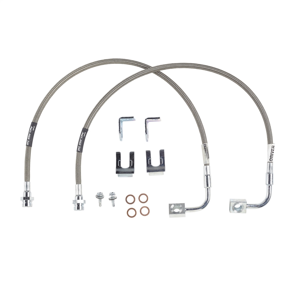 Rubicon Express Suspension Hardware Kit - RE15302 ⚠ Check if this part fits your vehicle Select your vehicle to confirm fitment before you buy. Select vehicle Stainless Steel 24" Front Brake Line Set Manufacturer: Rubicon Express Manufacturer part number: RE15302 $136.99 Ship to Select country United States of America Afghanistan Åland Islands Albania Algeria American Samoa Andorra Angola Anguilla Antarctica Antigua and Barbuda Argentina Armenia Aruba Australia Austria Azerbaijan Bahamas Bahrain Bangladesh Barbados Belarus Belgium Belize Benin Bermuda Bhutan Bolivia (Plurinational State of) Bonaire, Sint Eustatius and Saba Bosnia and Herzegovina Botswana Bouvet Island Brazil British Indian Ocean Territory Brunei Darussalam Bulgaria Burkina Faso Burundi Cabo Verde Cambodia Cameroon Canada Cayman Islands Central African Republic Chad Chile China Christmas Island Cocos (Keeling) Islands Colombia Comoros Congo Congo (Democratic Republic of the) Cook Islands Costa Rica Côte d'Ivoire Croatia Cuba Curaçao Cyprus Czechia Denmark Djibouti Dominica Dominican Republic Ecuador Egypt El Salvador Equatorial Guinea Eritrea Estonia Eswatini Ethiopia Falkland Islands (Malvinas) Faroe Islands Fiji Finland France French Guiana French Polynesia French Southern Territories Gabon Gambia Georgia Germany Ghana Gibraltar Greece Greenland Grenada Guadeloupe Guam Guatemala Guernsey Guinea Guinea-Bissau Guyana Haiti Heard Island and McDonald Islands Holy See Honduras Hong Kong Hungary Iceland India Indonesia Iran (Islamic Republic of) Iraq Ireland Isle of Man Israel Italy Jamaica Japan Jersey Jordan Kazakhstan Kenya Kiribati Korea (Democratic People's Republic of) Korea (Republic of) Kuwait Kyrgyzstan Lao People's Democratic Republic Latvia Lebanon Lesotho Liberia Libya Liechtenstein Lithuania Luxembourg Macao Madagascar Malawi Malaysia Maldives Mali Malta Marshall Islands Martinique Mauritania Mauritius Mayotte Mexico Micronesia (Federated States of) Moldova (Republic of) Monaco Mongolia Montenegro Montserrat Morocco Mozambique Myanmar Namibia Nauru Nepal Netherlands New Caledonia New Zealand Nicaragua Niger Nigeria Niue Norfolk Island North Macedonia Northern Mariana Islands Norway Oman Pakistan Palau Palestine, State of Panama Papua New Guinea Paraguay Peru Philippines Pitcairn Poland Portugal Puerto Rico Qatar Réunion Romania Russian Federation Rwanda Saint Barthélemy Saint Helena, Ascension and Tristan da Cunha Saint Kitts and Nevis Saint Lucia Saint Martin (French part) Saint Pierre and Miquelon Saint Vincent and the Grenadines Samoa San Marino Sao Tome and Principe Saudi Arabia Senegal Serbia Seychelles Sierra Leone Singapore Sint Maarten (Dutch part) Slovakia Slovenia Solomon Islands Somalia South Africa South Georgia and the South Sandwich Islands South Sudan Spain Sri Lanka Sudan Suriname Svalbard and Jan Mayen Sweden Switzerland Syrian Arab Republic Taiwan, Province of China Tajikistan Tanzania, United Republic of Thailand Timor-Leste Togo Tokelau Tonga Trinidad and Tobago Tunisia Turkey Turkmenistan Turks and Caicos Islands Tuvalu Uganda Ukraine United Arab Emirates United Kingdom of Great Britain and Northern Ireland United States Minor Outlying Islands Uruguay Uzbekistan Vanuatu Venezuela (Bolivarian Republic of) Vietnam Virgin Islands (British) Virgin Islands (U.S.) Wallis and Futuna Western Sahara Yemen Zambia Zimbabwe * Other * Shipping Method Name Estimated Delivery Price No shipping options Apply Custom wishlist OK Add to wishlist Add to compare list Email a friend Replace The Stock Rubber JK Brake Lines With The Rubicon Express Stainless Steel Protected Teflon Brake Line Kits. Our Steel-Braided Brake Lines Are Protected With A Vinyl Cover And Provide Firmer And More Responsive Braking. Mounting Brackets Included Where Necessary. JK Front Brake Line Kits Include 2 Brake Lines. Meets Dot Requirements. Products specifications Attribute name Attribute value Hardware Included Yes Country of Origin US 🚗 Compatible with 12 vehicles are compatible with this product Year Make Model 2018 Jeep Wrangler 2007 Jeep Wrangler 2008 Jeep Wrangler 2009 Jeep Wrangler 2010 Jeep Wrangler 2011 Jeep Wrangler 2012 Jeep Wrangler 2013 Jeep Wrangler 2014 Jeep Wrangler 2015 Jeep Wrangler 2016 Jeep Wrangler 2017 Jeep Wrangler