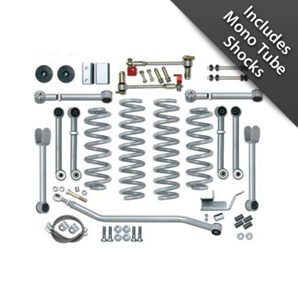 Rubicon Express Suspension Lift Kit - RE8000 ⚠ Check if this part fits your vehicle Select your vehicle to confirm fitment before you buy. Select vehicle 4.5 Inch Super-Flex Short Arm Lift Kit - No Shocks Manufacturer: Rubicon Express Manufacturer part number: RE8000 $1,904.86 Ship to Select country United States of America Afghanistan Åland Islands Albania Algeria American Samoa Andorra Angola Anguilla Antarctica Antigua and Barbuda Argentina Armenia Aruba Australia Austria Azerbaijan Bahamas Bahrain Bangladesh Barbados Belarus Belgium Belize Benin Bermuda Bhutan Bolivia (Plurinational State of) Bonaire, Sint Eustatius and Saba Bosnia and Herzegovina Botswana Bouvet Island Brazil British Indian Ocean Territory Brunei Darussalam Bulgaria Burkina Faso Burundi Cabo Verde Cambodia Cameroon Canada Cayman Islands Central African Republic Chad Chile China Christmas Island Cocos (Keeling) Islands Colombia Comoros Congo Congo (Democratic Republic of the) Cook Islands Costa Rica Côte d'Ivoire Croatia Cuba Curaçao Cyprus Czechia Denmark Djibouti Dominica Dominican Republic Ecuador Egypt El Salvador Equatorial Guinea Eritrea Estonia Eswatini Ethiopia Falkland Islands (Malvinas) Faroe Islands Fiji Finland France French Guiana French Polynesia French Southern Territories Gabon Gambia Georgia Germany Ghana Gibraltar Greece Greenland Grenada Guadeloupe Guam Guatemala Guernsey Guinea Guinea-Bissau Guyana Haiti Heard Island and McDonald Islands Holy See Honduras Hong Kong Hungary Iceland India Indonesia Iran (Islamic Republic of) Iraq Ireland Isle of Man Israel Italy Jamaica Japan Jersey Jordan Kazakhstan Kenya Kiribati Korea (Democratic People's Republic of) Korea (Republic of) Kuwait Kyrgyzstan Lao People's Democratic Republic Latvia Lebanon Lesotho Liberia Libya Liechtenstein Lithuania Luxembourg Macao Madagascar Malawi Malaysia Maldives Mali Malta Marshall Islands Martinique Mauritania Mauritius Mayotte Mexico Micronesia (Federated States of) Moldova (Republic of) Monaco Mongolia Montenegro Montserrat Morocco Mozambique Myanmar Namibia Nauru Nepal Netherlands New Caledonia New Zealand Nicaragua Niger Nigeria Niue Norfolk Island North Macedonia Northern Mariana Islands Norway Oman Pakistan Palau Palestine, State of Panama Papua New Guinea Paraguay Peru Philippines Pitcairn Poland Portugal Puerto Rico Qatar Réunion Romania Russian Federation Rwanda Saint Barthélemy Saint Helena, Ascension and Tristan da Cunha Saint Kitts and Nevis Saint Lucia Saint Martin (French part) Saint Pierre and Miquelon Saint Vincent and the Grenadines Samoa San Marino Sao Tome and Principe Saudi Arabia Senegal Serbia Seychelles Sierra Leone Singapore Sint Maarten (Dutch part) Slovakia Slovenia Solomon Islands Somalia South Africa South Georgia and the South Sandwich Islands South Sudan Spain Sri Lanka Sudan Suriname Svalbard and Jan Mayen Sweden Switzerland Syrian Arab Republic Taiwan, Province of China Tajikistan Tanzania, United Republic of Thailand Timor-Leste Togo Tokelau Tonga Trinidad and Tobago Tunisia Turkey Turkmenistan Turks and Caicos Islands Tuvalu Uganda Ukraine United Arab Emirates United Kingdom of Great Britain and Northern Ireland United States Minor Outlying Islands Uruguay Uzbekistan Vanuatu Venezuela (Bolivarian Republic of) Vietnam Virgin Islands (British) Virgin Islands (U.S.) Wallis and Futuna Western Sahara Yemen Zambia Zimbabwe * Other * Shipping Method Name Estimated Delivery Price No shipping options Apply Custom wishlist OK Add to wishlist Add to compare list Email a friend The Rubicon Express Super-Flex System Is The Best Suspension For Grand Cherokee'S Running Factory Short Arm Suspension Geometry. Upgrading Your Jeep With A Super-Flex Suspension System Will Turn Your Jeep Into A Remarkable Performing 4X4 Machine With A Smoother And More Flexible Ride On And Off The Trail. The Rubicon Express Super-Flex Lift Replaces Your Stock Suspension With Our High-Qualiyu, Trail-Ready Componenets. It Features An Adjustable Front Track Bar, Lower And Upper Adjustable Rear Control Arms With Our Super-Flex Spherical Ball Joints, Replacement Lift Springs, And Gen II Sway Bar Disconnects. This Is The Best ZJ Lift Available That Retains The Factory Short Arm Suspension Design And Utilizes The Factory Suspension Mounting Points. Products specifications Attribute name Attribute value Hardware Included Yes Country of Origin US 🚗 Compatible with 6 vehicles are compatible with this product Year Make Model 1993 Jeep Grand Cherokee 1994 Jeep Grand Cherokee 1996 Jeep Grand Cherokee 1997 Jeep Grand Cherokee 1998 Jeep Grand Cherokee 1995 Jeep Grand Cherokee