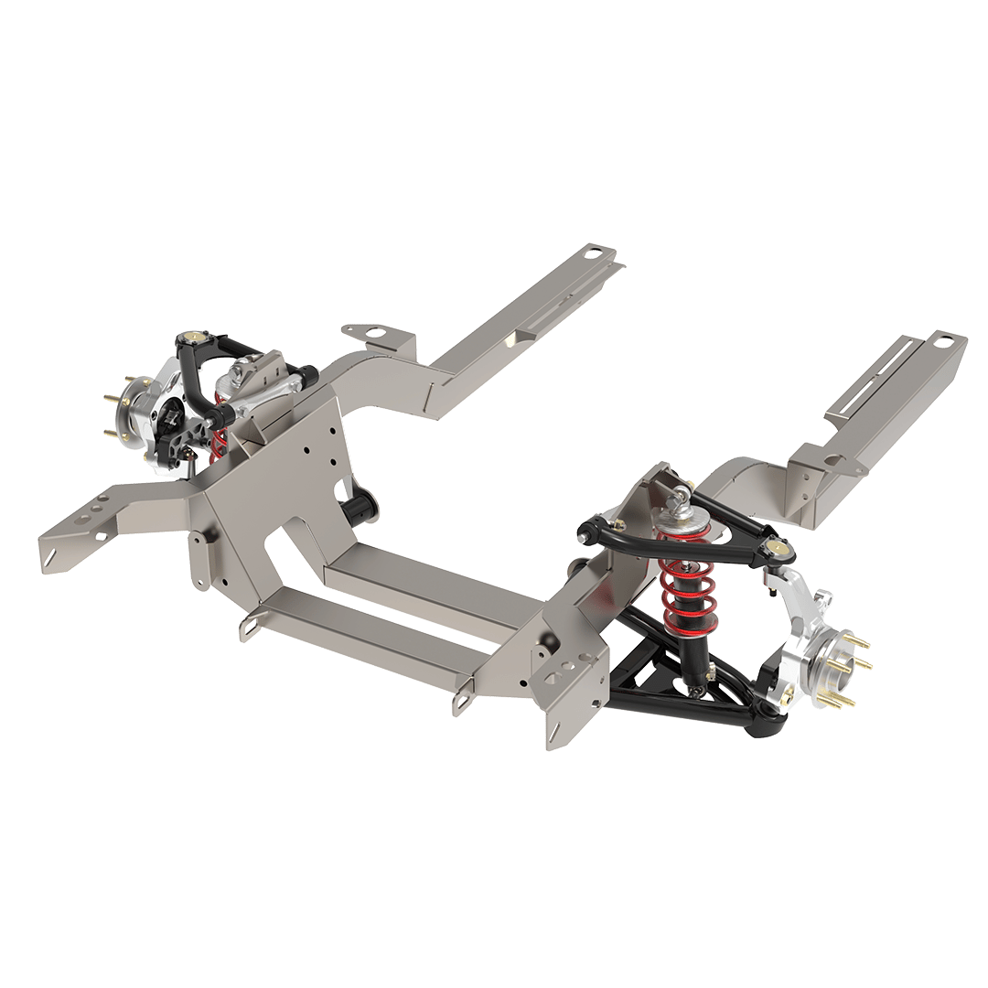 Upgrade your 67-69 GM F or X-Body with the Speedtech Performance Pro Touring Subframe featuring our Rack and Pinions Steering. This subframe is designed to handle all driving conditions with ease, making it ideal for daily driving, and autocross. The box welded construction and tabbed through frame gusseting provide added torsional rigidity, while the fully adjustable wheel alignment and improved geometry for better grip during cornering allow for a customizable driving experience. The package includes custom designed upper and lower control arms, a durable power rack and pinion steering, QA1 adjustable coil over shocks, with spring rate options fro your Camaro, Firebird or Nova. PRO TOURING FRONT SUBFRAME INCLUDES: Full Pro Touring Subframe, Custom designed upper and lower control arms with high clearance to accommodate wide wheels, Unisteer power rack and pinion steering, QA1 adjustable coil over shocks, spring rates of your choice included. Tuned, adjustable, front sway bar for street, pro-touring/auto cross and road course. Fully adjustable transmission cross member that will accommodate all engine and transmission combinations. At Speedtech Performance, our ethos is all about helping car enthusiasts achieve their dream of having the perfect system to modify their car according to their individual needs and desires. We believe that not everyone knows what they want or what is possible, and that’s why we offer a free no-obligation consultation to everyone. We take the time to understand you and your goals for the car, whether it’s for long distance travel, daily driving, or track days. Our focus is on maximizing wheel and tire widths while maintaining the original styling of the car. Our suspension systems are designed from scratch, with optimized front-end geometry to improve Camber caster settings, minimize bump steer, and improve camber and caster gain during driving.