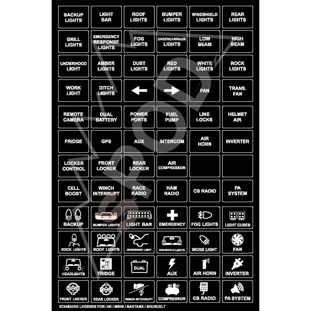sPOD Electrical Control Console Panel - 860115 Standard Legends (Horizontal) - HD, Mini6, BantamX, SourceLT Manufacturer: sPOD $7.50 Qty: Add to cart Ship to Select country United States of America Afghanistan Åland Islands Albania Algeria American Samoa Andorra Angola Anguilla Antarctica Antigua and Barbuda Argentina Armenia Aruba Australia Austria Azerbaijan Bahamas Bahrain Bangladesh Barbados Belarus Belgium Belize Benin Bermuda Bhutan Bolivia (Plurinational State of) Bonaire, Sint Eustatius and Saba Bosnia and Herzegovina Botswana Bouvet Island Brazil British Indian Ocean Territory Brunei Darussalam Bulgaria Burkina Faso Burundi Cabo Verde Cambodia Cameroon Canada Cayman Islands Central African Republic Chad Chile China Christmas Island Cocos (Keeling) Islands Colombia Comoros Congo Congo (Democratic Republic of the) Cook Islands Costa Rica Côte d'Ivoire Croatia Cuba Curaçao Cyprus Czechia Denmark Djibouti Dominica Dominican Republic Ecuador Egypt El Salvador Equatorial Guinea Eritrea Estonia Eswatini Ethiopia Falkland Islands (Malvinas) Faroe Islands Fiji Finland France French Guiana French Polynesia French Southern Territories Gabon Gambia Georgia Germany Ghana Gibraltar Greece Greenland Grenada Guadeloupe Guam Guatemala Guernsey Guinea Guinea-Bissau Guyana Haiti Heard Island and McDonald Islands Holy See Honduras Hong Kong Hungary Iceland India Indonesia Iran (Islamic Republic of) Iraq Ireland Isle of Man Israel Italy Jamaica Japan Jersey Jordan Kazakhstan Kenya Kiribati Korea (Democratic People's Republic of) Korea (Republic of) Kuwait Kyrgyzstan Lao People's Democratic Republic Latvia Lebanon Lesotho Liberia Libya Liechtenstein Lithuania Luxembourg Macao Madagascar Malawi Malaysia Maldives Mali Malta Marshall Islands Martinique Mauritania Mauritius Mayotte Mexico Micronesia (Federated States of) Moldova (Republic of) Monaco Mongolia Montenegro Montserrat Morocco Mozambique Myanmar Namibia Nauru Nepal Netherlands New Caledonia New Zealand Nicaragua Niger Nigeria Niue Norfolk Island North Macedonia Northern Mariana Islands Norway Oman Pakistan Palau Palestine, State of Panama Papua New Guinea Paraguay Peru Philippines Pitcairn Poland Portugal Puerto Rico Qatar Réunion Romania Russian Federation Rwanda Saint Barthélemy Saint Helena, Ascension and Tristan da Cunha Saint Kitts and Nevis Saint Lucia Saint Martin (French part) Saint Pierre and Miquelon Saint Vincent and the Grenadines Samoa San Marino Sao Tome and Principe Saudi Arabia Senegal Serbia Seychelles Sierra Leone Singapore Sint Maarten (Dutch part) Slovakia Slovenia Solomon Islands Somalia South Africa South Georgia and the South Sandwich Islands South Sudan Spain Sri Lanka Sudan Suriname Svalbard and Jan Mayen Sweden Switzerland Syrian Arab Republic Taiwan, Province of China Tajikistan Tanzania, United Republic of Thailand Timor-Leste Togo Tokelau Tonga Trinidad and Tobago Tunisia Turkey Turkmenistan Turks and Caicos Islands Tuvalu Uganda Ukraine United Arab Emirates United Kingdom of Great Britain and Northern Ireland United States Minor Outlying Islands Uruguay Uzbekistan Vanuatu Venezuela (Bolivarian Republic of) Vietnam Virgin Islands (British) Virgin Islands (U.S.) Wallis and Futuna Western Sahara Yemen Zambia Zimbabwe * Other * Shipping Method Name Estimated Delivery Price No shipping options Apply Custom wishlist OK Add to wishlist Add to compare list Email a friend Horizontal Legend Labels used for the following sPOD products:- HD Control Panel- Mini6 Control Panel- BantamX- SourceLTNOTE: These legends are the standard legends supplied with the control panels (HD and Mini6), the BantamX and SourceLT.Full sheet of labels to help you tag your control panel and distribution system with the right label.Details:72 Labels per sheetBlack with white letters (backlighting from HD and Mini6 will shine through)Glossy laminate coatingVinyl Material / WeatherproofNote: Standard Legends (Horizontal) - HD, Mini6, BantamX, SourceLT Products specifications Attribute name Attribute value Prop 65 Warning Label Prop 65 WARNING: This product can expose you to chemicals, which are known to the State of California to cause cancer and birth defects or other reproductive harm. For more information go to www.P65Warnings.ca.gov. Prop 65 Yes/No Yes Prop 65 - Short Label CR Stye Horizontal Product Type Electrical Control Console Panel Product Fitment Universal Product Information Standard Legends (Horizontal) - HD, Mini6, BantamX, SourceLT DES Standard Legends (Horizontal) - HD, Mini6, BantamX, SourceLT EXT Standard Legends (Horizontal) - HD, Mini6, BantamX, SourceLT - Universal (Stye: Horizontal) TLE Standard Legends (Horizontal) - HD, Mini6, BantamX, SourceLT - Universal (Stye: Horizontal) Country of Origin US