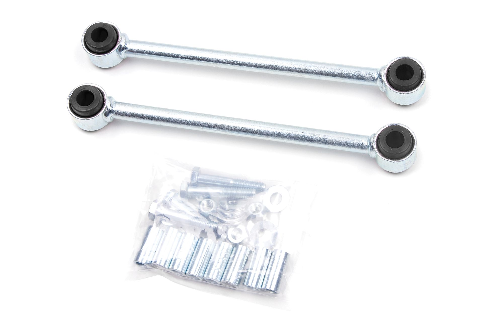 Zone Offroad Suspension Stabilizer Bar Link Kit - ZONJ5401 ⚠ Check if this part fits your vehicle Select your vehicle to confirm fitment before you buy. Select vehicle Zone Sway Bar Links Manufacturer: Zone Offroad $40.95 Ship to Select country United States of America Afghanistan Åland Islands Albania Algeria American Samoa Andorra Angola Anguilla Antarctica Antigua and Barbuda Argentina Armenia Aruba Australia Austria Azerbaijan Bahamas Bahrain Bangladesh Barbados Belarus Belgium Belize Benin Bermuda Bhutan Bolivia (Plurinational State of) Bonaire, Sint Eustatius and Saba Bosnia and Herzegovina Botswana Bouvet Island Brazil British Indian Ocean Territory Brunei Darussalam Bulgaria Burkina Faso Burundi Cabo Verde Cambodia Cameroon Canada Cayman Islands Central African Republic Chad Chile China Christmas Island Cocos (Keeling) Islands Colombia Comoros Congo Congo (Democratic Republic of the) Cook Islands Costa Rica Côte d'Ivoire Croatia Cuba Curaçao Cyprus Czechia Denmark Djibouti Dominica Dominican Republic Ecuador Egypt El Salvador Equatorial Guinea Eritrea Estonia Eswatini Ethiopia Falkland Islands (Malvinas) Faroe Islands Fiji Finland France French Guiana French Polynesia French Southern Territories Gabon Gambia Georgia Germany Ghana Gibraltar Greece Greenland Grenada Guadeloupe Guam Guatemala Guernsey Guinea Guinea-Bissau Guyana Haiti Heard Island and McDonald Islands Holy See Honduras Hong Kong Hungary Iceland India Indonesia Iran (Islamic Republic of) Iraq Ireland Isle of Man Israel Italy Jamaica Japan Jersey Jordan Kazakhstan Kenya Kiribati Korea (Democratic People's Republic of) Korea (Republic of) Kuwait Kyrgyzstan Lao People's Democratic Republic Latvia Lebanon Lesotho Liberia Libya Liechtenstein Lithuania Luxembourg Macao Madagascar Malawi Malaysia Maldives Mali Malta Marshall Islands Martinique Mauritania Mauritius Mayotte Mexico Micronesia (Federated States of) Moldova (Republic of) Monaco Mongolia Montenegro Montserrat Morocco Mozambique Myanmar Namibia Nauru Nepal Netherlands New Caledonia New Zealand Nicaragua Niger Nigeria Niue Norfolk Island North Macedonia Northern Mariana Islands Norway Oman Pakistan Palau Palestine, State of Panama Papua New Guinea Paraguay Peru Philippines Pitcairn Poland Portugal Puerto Rico Qatar Réunion Romania Russian Federation Rwanda Saint Barthélemy Saint Helena, Ascension and Tristan da Cunha Saint Kitts and Nevis Saint Lucia Saint Martin (French part) Saint Pierre and Miquelon Saint Vincent and the Grenadines Samoa San Marino Sao Tome and Principe Saudi Arabia Senegal Serbia Seychelles Sierra Leone Singapore Sint Maarten (Dutch part) Slovakia Slovenia Solomon Islands Somalia South Africa South Georgia and the South Sandwich Islands South Sudan Spain Sri Lanka Sudan Suriname Svalbard and Jan Mayen Sweden Switzerland Syrian Arab Republic Taiwan, Province of China Tajikistan Tanzania, United Republic of Thailand Timor-Leste Togo Tokelau Tonga Trinidad and Tobago Tunisia Turkey Turkmenistan Turks and Caicos Islands Tuvalu Uganda Ukraine United Arab Emirates United Kingdom of Great Britain and Northern Ireland United States Minor Outlying Islands Uruguay Uzbekistan Vanuatu Venezuela (Bolivarian Republic of) Vietnam Virgin Islands (British) Virgin Islands (U.S.) Wallis and Futuna Western Sahara Yemen Zambia Zimbabwe * Other * Shipping Method Name Estimated Delivery Price No shipping options Apply Custom wishlist OK Add to wishlist Add to compare list Email a friend Is your Jeep lifted? Upgrade your factory rear sway bar links to improve operating angle for improved on-road handling and performance. These links are built from high strength 5/8” solid steel with eyelets at either end and install with black urethane bushings, sleeves and mounting hardware. Designed for use with 4-5" lift kits. Products specifications Attribute name Attribute value California Proposition 65 ! WARNING: Cancer and Reproductive Harm - www.P65Warnings.ca.gov Country of Origin US Condition New 🚗 Compatible with 10 vehicles are compatible with this product Year Make Model 1998 Jeep Wrangler 1999 Jeep Wrangler 2000 Jeep Wrangler 2001 Jeep Wrangler 2003 Jeep Wrangler 1997 Jeep Wrangler 2002 Jeep Wrangler 2004 Jeep Wrangler 2005 Jeep Wrangler 2006 Jeep Wrangler