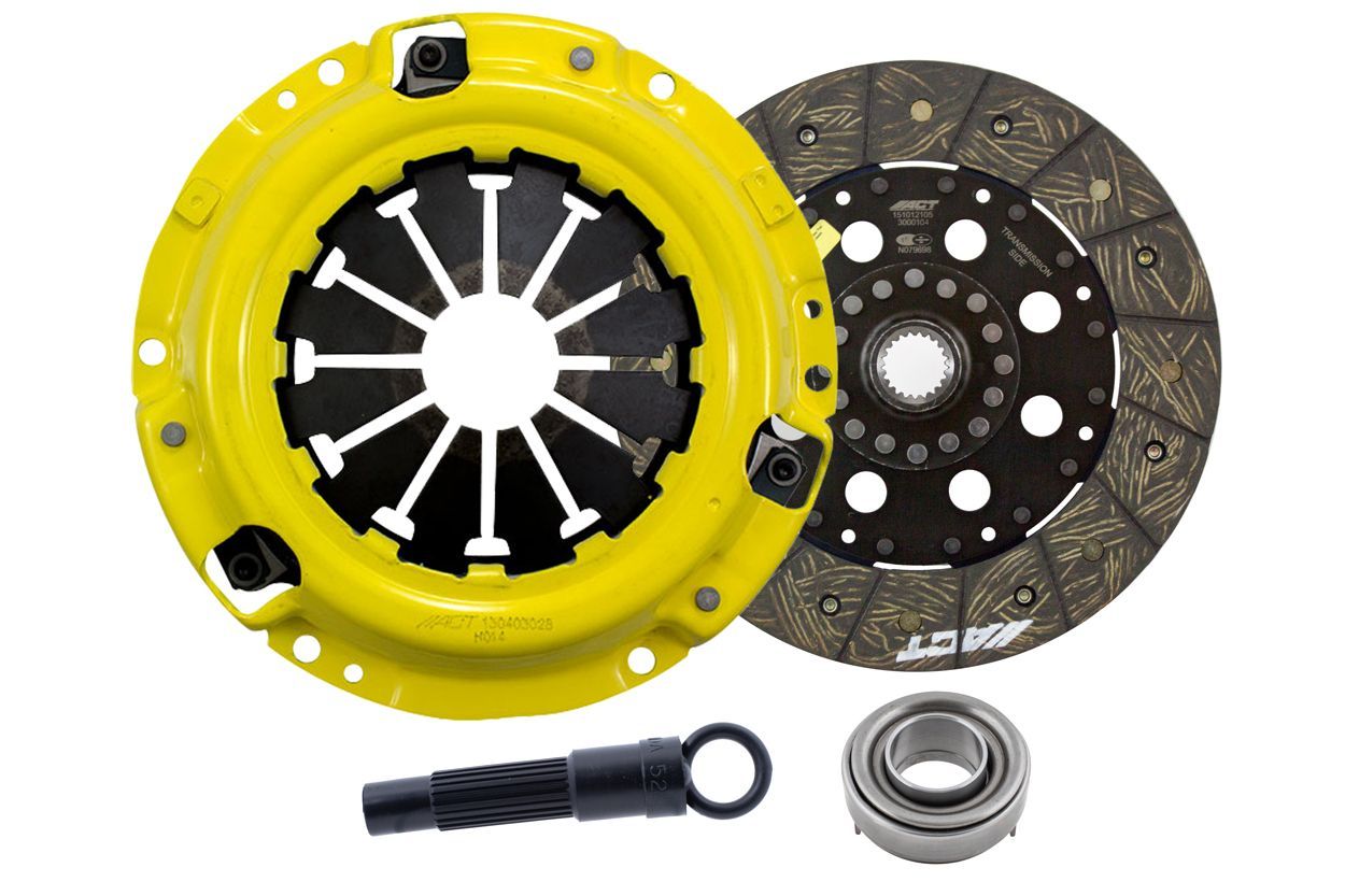 Advanced Clutch Transmission Clutch Kit - HA1-HDSS ⚠ Check if this part fits your vehicle Select your vehicle to confirm fitment before you buy. Select vehicle ACT Heavy Duty Performance Street Sprung Clutch Kit Manufacturer: Advanced Clutch $430.00 Qty: Add to cart Ship to Select country United States of America Afghanistan Åland Islands Albania Algeria American Samoa Andorra Angola Anguilla Antarctica Antigua and Barbuda Argentina Armenia Aruba Australia Austria Azerbaijan Bahamas Bahrain Bangladesh Barbados Belarus Belgium Belize Benin Bermuda Bhutan Bolivia (Plurinational State of) Bonaire, Sint Eustatius and Saba Bosnia and Herzegovina Botswana Bouvet Island Brazil British Indian Ocean Territory Brunei Darussalam Bulgaria Burkina Faso Burundi Cabo Verde Cambodia Cameroon Canada Cayman Islands Central African Republic Chad Chile China Christmas Island Cocos (Keeling) Islands Colombia Comoros Congo Congo (Democratic Republic of the) Cook Islands Costa Rica Côte d'Ivoire Croatia Cuba Curaçao Cyprus Czechia Denmark Djibouti Dominica Dominican Republic Ecuador Egypt El Salvador Equatorial Guinea Eritrea Estonia Eswatini Ethiopia Falkland Islands (Malvinas) Faroe Islands Fiji Finland France French Guiana French Polynesia French Southern Territories Gabon Gambia Georgia Germany Ghana Gibraltar Greece Greenland Grenada Guadeloupe Guam Guatemala Guernsey Guinea Guinea-Bissau Guyana Haiti Heard Island and McDonald Islands Holy See Honduras Hong Kong Hungary Iceland India Indonesia Iran (Islamic Republic of) Iraq Ireland Isle of Man Israel Italy Jamaica Japan Jersey Jordan Kazakhstan Kenya Kiribati Korea (Democratic People's Republic of) Korea (Republic of) Kuwait Kyrgyzstan Lao People's Democratic Republic Latvia Lebanon Lesotho Liberia Libya Liechtenstein Lithuania Luxembourg Macao Madagascar Malawi Malaysia Maldives Mali Malta Marshall Islands Martinique Mauritania Mauritius Mayotte Mexico Micronesia (Federated States of) Moldova (Republic of) Monaco Mongolia Montenegro Montserrat Morocco Mozambique Myanmar Namibia Nauru Nepal Netherlands New Caledonia New Zealand Nicaragua Niger Nigeria Niue Norfolk Island North Macedonia Northern Mariana Islands Norway Oman Pakistan Palau Palestine, State of Panama Papua New Guinea Paraguay Peru Philippines Pitcairn Poland Portugal Puerto Rico Qatar Réunion Romania Russian Federation Rwanda Saint Barthélemy Saint Helena, Ascension and Tristan da Cunha Saint Kitts and Nevis Saint Lucia Saint Martin (French part) Saint Pierre and Miquelon Saint Vincent and the Grenadines Samoa San Marino Sao Tome and Principe Saudi Arabia Senegal Serbia Seychelles Sierra Leone Singapore Sint Maarten (Dutch part) Slovakia Slovenia Solomon Islands Somalia South Africa South Georgia and the South Sandwich Islands South Sudan Spain Sri Lanka Sudan Suriname Svalbard and Jan Mayen Sweden Switzerland Syrian Arab Republic Taiwan, Province of China Tajikistan Tanzania, United Republic of Thailand Timor-Leste Togo Tokelau Tonga Trinidad and Tobago Tunisia Turkey Turkmenistan Turks and Caicos Islands Tuvalu Uganda Ukraine United Arab Emirates United Kingdom of Great Britain and Northern Ireland United States Minor Outlying Islands Uruguay Uzbekistan Vanuatu Venezuela (Bolivarian Republic of) Vietnam Virgin Islands (British) Virgin Islands (U.S.) Wallis and Futuna Western Sahara Yemen Zambia Zimbabwe * Other * Shipping Method Name Estimated Delivery Price No shipping options Apply Custom wishlist OK Add to wishlist Add to compare list Email a friend HA1-HDSS kit features ACT's most popular Heavy Duty pressure plate and most popular street disc. ACT Heavy Duty pressure plates use exclusive diaphragm design to increase clamp load, reduce deflection and maximize clutch life. All diaphragms endure a four-stage, heat-treating process for unparalleled performance. ACT pressure plates have precision cover stampings to provide rigidity and consistency. ACT's Performance Street discs feature premium organic materials with high copper content for better heat transfer and steel-backed lining for greater burst strength and durability. These discs have reduced marcel for faster shift action to complement ACT pressure plates, with increased strength and reliability.Note: Light to moderate pedal effort, smooth positive engagement, OE to mild gear rattle; Longer friction life, extended by ACT's exclusive diaphragm design; Carefully engineered, precisely assembled, accurately balanced, with premium organic friction materials for heat tolerance and reduced fade; Recommended for street and race use; 100% clamp load tested and dynamically computer balanced for smooth high RPM reliability Products specifications Attribute name Attribute value Input Shaft Diameter 0.875 Clutch Disc Diameter 200, 7.9 Input Spline Quantity 21 Torque Capacity (ft/lbs.) 210 Torque Capacity Over OE 38% Product Weight (lbs.) 9.8 Pressure Plate Type Heavy Duty Disc Material Organic Prop 65 - Short Label WARNING: Cancer and Reproductive Harm - www.p65warnings.ca.gov Prop 65 Long Label Warning: This product can expose you to chemicals including carbon black, glass wool fibers, or silica (in clutch discs), chromium and nickel, which are known to the State of California to cause cancer or birth defects or other reproductive harm. For more information, visit www.P65Warnings.ca.gov Release Bearing Included Yes Alignment Tool Included Yes Prop 65 Yes/No Yes Disc Type Sprung Solid Sprung Clutch Slave Cylinder Included No Pressure Plate Bolts Included No Grease Included Yes Grade Type Performance Flywheel Bolts Included No Clutch Master Cylinder Included No Country of Origin JP Condition New 🚗 Compatible with 8 vehicles are compatible with this product Year Make Model 1985 Honda Prelude 1986 Honda Prelude 1987 Honda Prelude 1983 Honda Accord 1984 Honda Accord 1985 Honda Accord 1983 Honda Prelude 1984 Honda Prelude