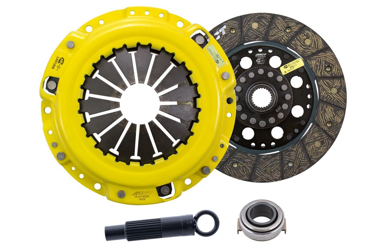 Advanced Clutch Transmission Clutch Kit - HA3-HDSD ⚠ Check if this part fits your vehicle Select your vehicle to confirm fitment before you buy. Select vehicle ACT Heavy Duty Performance Street Rigid Clutch Kit Manufacturer: Advanced Clutch $477.00 Qty: Add to cart Ship to Select country United States of America Afghanistan Åland Islands Albania Algeria American Samoa Andorra Angola Anguilla Antarctica Antigua and Barbuda Argentina Armenia Aruba Australia Austria Azerbaijan Bahamas Bahrain Bangladesh Barbados Belarus Belgium Belize Benin Bermuda Bhutan Bolivia (Plurinational State of) Bonaire, Sint Eustatius and Saba Bosnia and Herzegovina Botswana Bouvet Island Brazil British Indian Ocean Territory Brunei Darussalam Bulgaria Burkina Faso Burundi Cabo Verde Cambodia Cameroon Canada Cayman Islands Central African Republic Chad Chile China Christmas Island Cocos (Keeling) Islands Colombia Comoros Congo Congo (Democratic Republic of the) Cook Islands Costa Rica Côte d'Ivoire Croatia Cuba Curaçao Cyprus Czechia Denmark Djibouti Dominica Dominican Republic Ecuador Egypt El Salvador Equatorial Guinea Eritrea Estonia Eswatini Ethiopia Falkland Islands (Malvinas) Faroe Islands Fiji Finland France French Guiana French Polynesia French Southern Territories Gabon Gambia Georgia Germany Ghana Gibraltar Greece Greenland Grenada Guadeloupe Guam Guatemala Guernsey Guinea Guinea-Bissau Guyana Haiti Heard Island and McDonald Islands Holy See Honduras Hong Kong Hungary Iceland India Indonesia Iran (Islamic Republic of) Iraq Ireland Isle of Man Israel Italy Jamaica Japan Jersey Jordan Kazakhstan Kenya Kiribati Korea (Democratic People's Republic of) Korea (Republic of) Kuwait Kyrgyzstan Lao People's Democratic Republic Latvia Lebanon Lesotho Liberia Libya Liechtenstein Lithuania Luxembourg Macao Madagascar Malawi Malaysia Maldives Mali Malta Marshall Islands Martinique Mauritania Mauritius Mayotte Mexico Micronesia (Federated States of) Moldova (Republic of) Monaco Mongolia Montenegro Montserrat Morocco Mozambique Myanmar Namibia Nauru Nepal Netherlands New Caledonia New Zealand Nicaragua Niger Nigeria Niue Norfolk Island North Macedonia Northern Mariana Islands Norway Oman Pakistan Palau Palestine, State of Panama Papua New Guinea Paraguay Peru Philippines Pitcairn Poland Portugal Puerto Rico Qatar Réunion Romania Russian Federation Rwanda Saint Barthélemy Saint Helena, Ascension and Tristan da Cunha Saint Kitts and Nevis Saint Lucia Saint Martin (French part) Saint Pierre and Miquelon Saint Vincent and the Grenadines Samoa San Marino Sao Tome and Principe Saudi Arabia Senegal Serbia Seychelles Sierra Leone Singapore Sint Maarten (Dutch part) Slovakia Slovenia Solomon Islands Somalia South Africa South Georgia and the South Sandwich Islands South Sudan Spain Sri Lanka Sudan Suriname Svalbard and Jan Mayen Sweden Switzerland Syrian Arab Republic Taiwan, Province of China Tajikistan Tanzania, United Republic of Thailand Timor-Leste Togo Tokelau Tonga Trinidad and Tobago Tunisia Turkey Turkmenistan Turks and Caicos Islands Tuvalu Uganda Ukraine United Arab Emirates United Kingdom of Great Britain and Northern Ireland United States Minor Outlying Islands Uruguay Uzbekistan Vanuatu Venezuela (Bolivarian Republic of) Vietnam Virgin Islands (British) Virgin Islands (U.S.) Wallis and Futuna Western Sahara Yemen Zambia Zimbabwe * Other * Shipping Method Name Estimated Delivery Price No shipping options Apply Custom wishlist OK Add to wishlist Add to compare list Email a friend HA3-HDSD kit features ACT's most popular Heavy Duty pressure plate. ACT Heavy Duty pressure plates use exclusive diaphragm design to increase clamp load, reduce deflection and maximize clutch life. All diaphragms endure a four-stage, heat-treating process for unparalleled performance. ACT pressure plates have precision cover stampings to provide rigidity and consistency. The ACT performance street rigid-hub discs feature premium organic materials with high copper content for better heat transfer and steel-backed lining for greater burst strength and durability. The chrome-moly hub is heat-treated for strength and durability. Rivet design and materials are carefully selected for maximum strength. These discs are the minimum weight street disc for faster shifts. ACT's street rigid-hub discs provide race-proven performance with street manageability.Note: Light to moderate pedal effort, smooth positive engagement, increased gear rattle; Longer friction life, extended by ACT's exclusive diaphragm design, rigid design may increase spline wear; Carefully engineered, precisely assembled, accurately balanced, with premium organic friction materials for heat tolerance and reduced fade; Recommended for street and race use; 100% clamp load tested and dynamically computer balanced for smooth high RPM reliability Products specifications Attribute name Attribute value Input Shaft Diameter 1.03125 Product Weight (lbs.) 12.2 Clutch Disc Diameter 224, 8.8 Input Spline Quantity 24 Torque Capacity (ft/lbs.) 275 Torque Capacity Over OE 41% Pressure Plate Type Heavy Duty Disc Material Organic Prop 65 - Short Label WARNING: Cancer and Reproductive Harm - www.p65warnings.ca.gov Prop 65 Long Label Warning: This product can expose you to chemicals including carbon black, glass wool fibers, or silica (in clutch discs), chromium and nickel, which are known to the State of California to cause cancer or birth defects or other reproductive harm. For more information, visit www.P65Warnings.ca.gov Release Bearing Included Yes Alignment Tool Included Yes Prop 65 Yes/No Yes Disc Type Sprung Solid Solid Clutch Slave Cylinder Included No Pressure Plate Bolts Included No Grease Included Yes Grade Type Performance Flywheel Bolts Included No Clutch Master Cylinder Included No Country of Origin KR Condition New 🚗 Compatible with 26 vehicles are compatible with this product Year Make Model 1990 Honda Accord 1991 Honda Accord 2000 Honda Accord 2001 Honda Accord 2002 Honda A