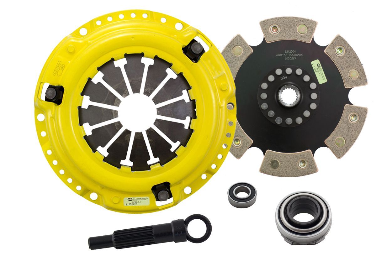 Advanced Clutch Transmission Clutch Kit - HC4-XXR6 ⚠ Check if this part fits your vehicle Select your vehicle to confirm fitment before you buy. Select vehicle ACT Max Extreme Race Rigid 6 Pad Clutch Kit Manufacturer: Advanced Clutch $556.00 Qty: Add to cart Ship to Select country United States of America Afghanistan Åland Islands Albania Algeria American Samoa Andorra Angola Anguilla Antarctica Antigua and Barbuda Argentina Armenia Aruba Australia Austria Azerbaijan Bahamas Bahrain Bangladesh Barbados Belarus Belgium Belize Benin Bermuda Bhutan Bolivia (Plurinational State of) Bonaire, Sint Eustatius and Saba Bosnia and Herzegovina Botswana Bouvet Island Brazil British Indian Ocean Territory Brunei Darussalam Bulgaria Burkina Faso Burundi Cabo Verde Cambodia Cameroon Canada Cayman Islands Central African Republic Chad Chile China Christmas Island Cocos (Keeling) Islands Colombia Comoros Congo Congo (Democratic Republic of the) Cook Islands Costa Rica Côte d'Ivoire Croatia Cuba Curaçao Cyprus Czechia Denmark Djibouti Dominica Dominican Republic Ecuador Egypt El Salvador Equatorial Guinea Eritrea Estonia Eswatini Ethiopia Falkland Islands (Malvinas) Faroe Islands Fiji Finland France French Guiana French Polynesia French Southern Territories Gabon Gambia Georgia Germany Ghana Gibraltar Greece Greenland Grenada Guadeloupe Guam Guatemala Guernsey Guinea Guinea-Bissau Guyana Haiti Heard Island and McDonald Islands Holy See Honduras Hong Kong Hungary Iceland India Indonesia Iran (Islamic Republic of) Iraq Ireland Isle of Man Israel Italy Jamaica Japan Jersey Jordan Kazakhstan Kenya Kiribati Korea (Democratic People's Republic of) Korea (Republic of) Kuwait Kyrgyzstan Lao People's Democratic Republic Latvia Lebanon Lesotho Liberia Libya Liechtenstein Lithuania Luxembourg Macao Madagascar Malawi Malaysia Maldives Mali Malta Marshall Islands Martinique Mauritania Mauritius Mayotte Mexico Micronesia (Federated States of) Moldova (Republic of) Monaco Mongolia Montenegro Montserrat Morocco Mozambique Myanmar Namibia Nauru Nepal Netherlands New Caledonia New Zealand Nicaragua Niger Nigeria Niue Norfolk Island North Macedonia Northern Mariana Islands Norway Oman Pakistan Palau Palestine, State of Panama Papua New Guinea Paraguay Peru Philippines Pitcairn Poland Portugal Puerto Rico Qatar Réunion Romania Russian Federation Rwanda Saint Barthélemy Saint Helena, Ascension and Tristan da Cunha Saint Kitts and Nevis Saint Lucia Saint Martin (French part) Saint Pierre and Miquelon Saint Vincent and the Grenadines Samoa San Marino Sao Tome and Principe Saudi Arabia Senegal Serbia Seychelles Sierra Leone Singapore Sint Maarten (Dutch part) Slovakia Slovenia Solomon Islands Somalia South Africa South Georgia and the South Sandwich Islands South Sudan Spain Sri Lanka Sudan Suriname Svalbard and Jan Mayen Sweden Switzerland Syrian Arab Republic Taiwan, Province of China Tajikistan Tanzania, United Republic of Thailand Timor-Leste Togo Tokelau Tonga Trinidad and Tobago Tunisia Turkey Turkmenistan Turks and Caicos Islands Tuvalu Uganda Ukraine United Arab Emirates United Kingdom of Great Britain and Northern Ireland United States Minor Outlying Islands Uruguay Uzbekistan Vanuatu Venezuela (Bolivarian Republic of) Vietnam Virgin Islands (British) Virgin Islands (U.S.) Wallis and Futuna Western Sahara Yemen Zambia Zimbabwe * Other * Shipping Method Name Estimated Delivery Price No shipping options Apply Custom wishlist OK Add to wishlist Add to compare list Email a friend HC4-XXR6 features a MaXX pressure plate for the serious enthusiast. ACT MaXX pressure plates use exclusive diaphragm design to increase clamp load, reduce deflection and maximize clutch life. All diaphragms endure a four-stage, heat-treating process for unparalleled performance. ACT pressure plates have precision cover stampings to provide rigidity and consistency. ACT's 6-pad rigid race discs are made with high quality, ceramic friction materials. The chrome-moly hub is heat-treated for strength and durability. The lightweight, rigid design allows for quicker shifts and smooth, trouble-free service. With the 6-pad rigid race disc, engagement is harsher, but shifting is faster. The 6-pad rigid race disc is recommended for larger clutch sizes to absorb more heat.Note: Heavy to very heavy pedal effort, aggressive engagement, quicker shifts, increased gear rattle; Moderate friction life, extended by ACT's exclusive diaphragm design, rigid design may increase spline wear; Carefully engineered, precisely assembled, accurately balanced, uses select ceramic friction materials for high heat tolerance and maximum performance; Recommended for race use only; 100% clamp load tested and dynamically computer balanced for smooth high RPM reliability Products specifications Attribute name Attribute value Input Shaft Diameter 0.875 Product Weight (lbs.) 10.4 Torque Capacity Over OE 173% Input Spline Quantity 20 Clutch Disc Diameter 212, 8.3 Torque Capacity (ft/lbs.) 420 Disc Material Ceramic Pressure Plate Type Maxx Xtreme Pilot Bushing Included No Prop 65 - Short Label WARNING: Cancer and Reproductive Harm - www.p65warnings.ca.gov Prop 65 Long Label Warning: This product can expose you to chemicals including carbon black, glass wool fibers, or silica (in clutch discs), chromium and nickel, which are known to the State of California to cause cancer or birth defects or other reproductive harm. For more information, visit www.P65Warnings.ca.gov Release Bearing Included Yes Alignment Tool Included Yes Prop 65 Yes/No Yes Disc Type Sprung Solid Solid Clutch Slave Cylinder Included No Pressure Plate Bolts Included No Grease Included Yes Grade Type Performance Flywheel Bolts Included No Pilot Bearing Included Yes Clutch Master Cylinder Included No Country of Origin KR Condition New 🚗 Compatible with 6 vehicles are compatible with this product Year Make Model 1990 Honda Civic 1991 Honda Civic 1990 Honda CRX 1991 Honda CRX 1989 Honda Civic 1989 Honda CRX