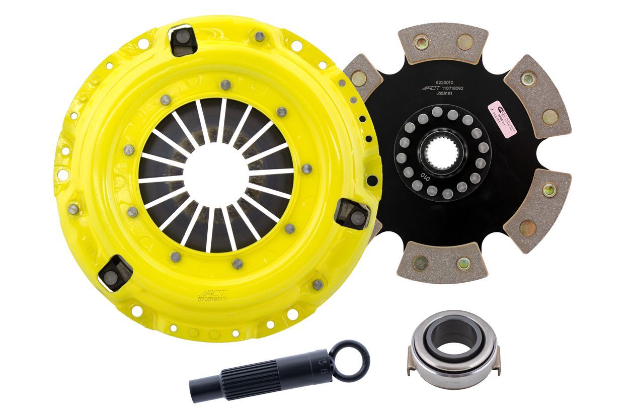 Advanced Clutch Transmission Clutch Kit - HP4-HDR6 ⚠ Check if this part fits your vehicle Select your vehicle to confirm fitment before you buy. Select vehicle ACT Heavy Duty Race Rigid 6 Pad Clutch Kit Manufacturer: Advanced Clutch $710.00 Qty: Add to cart Ship to Select country United States of America Afghanistan Åland Islands Albania Algeria American Samoa Andorra Angola Anguilla Antarctica Antigua and Barbuda Argentina Armenia Aruba Australia Austria Azerbaijan Bahamas Bahrain Bangladesh Barbados Belarus Belgium Belize Benin Bermuda Bhutan Bolivia (Plurinational State of) Bonaire, Sint Eustatius and Saba Bosnia and Herzegovina Botswana Bouvet Island Brazil British Indian Ocean Territory Brunei Darussalam Bulgaria Burkina Faso Burundi Cabo Verde Cambodia Cameroon Canada Cayman Islands Central African Republic Chad Chile China Christmas Island Cocos (Keeling) Islands Colombia Comoros Congo Congo (Democratic Republic of the) Cook Islands Costa Rica Côte d'Ivoire Croatia Cuba Curaçao Cyprus Czechia Denmark Djibouti Dominica Dominican Republic Ecuador Egypt El Salvador Equatorial Guinea Eritrea Estonia Eswatini Ethiopia Falkland Islands (Malvinas) Faroe Islands Fiji Finland France French Guiana French Polynesia French Southern Territories Gabon Gambia Georgia Germany Ghana Gibraltar Greece Greenland Grenada Guadeloupe Guam Guatemala Guernsey Guinea Guinea-Bissau Guyana Haiti Heard Island and McDonald Islands Holy See Honduras Hong Kong Hungary Iceland India Indonesia Iran (Islamic Republic of) Iraq Ireland Isle of Man Israel Italy Jamaica Japan Jersey Jordan Kazakhstan Kenya Kiribati Korea (Democratic People's Republic of) Korea (Republic of) Kuwait Kyrgyzstan Lao People's Democratic Republic Latvia Lebanon Lesotho Liberia Libya Liechtenstein Lithuania Luxembourg Macao Madagascar Malawi Malaysia Maldives Mali Malta Marshall Islands Martinique Mauritania Mauritius Mayotte Mexico Micronesia (Federated States of) Moldova (Republic of) Monaco Mongolia Montenegro Montserrat Morocco Mozambique Myanmar Namibia Nauru Nepal Netherlands New Caledonia New Zealand Nicaragua Niger Nigeria Niue Norfolk Island North Macedonia Northern Mariana Islands Norway Oman Pakistan Palau Palestine, State of Panama Papua New Guinea Paraguay Peru Philippines Pitcairn Poland Portugal Puerto Rico Qatar Réunion Romania Russian Federation Rwanda Saint Barthélemy Saint Helena, Ascension and Tristan da Cunha Saint Kitts and Nevis Saint Lucia Saint Martin (French part) Saint Pierre and Miquelon Saint Vincent and the Grenadines Samoa San Marino Sao Tome and Principe Saudi Arabia Senegal Serbia Seychelles Sierra Leone Singapore Sint Maarten (Dutch part) Slovakia Slovenia Solomon Islands Somalia South Africa South Georgia and the South Sandwich Islands South Sudan Spain Sri Lanka Sudan Suriname Svalbard and Jan Mayen Sweden Switzerland Syrian Arab Republic Taiwan, Province of China Tajikistan Tanzania, United Republic of Thailand Timor-Leste Togo Tokelau Tonga Trinidad and Tobago Tunisia Turkey Turkmenistan Turks and Caicos Islands Tuvalu Uganda Ukraine United Arab Emirates United Kingdom of Great Britain and Northern Ireland United States Minor Outlying Islands Uruguay Uzbekistan Vanuatu Venezuela (Bolivarian Republic of) Vietnam Virgin Islands (British) Virgin Islands (U.S.) Wallis and Futuna Western Sahara Yemen Zambia Zimbabwe * Other * Shipping Method Name Estimated Delivery Price No shipping options Apply Custom wishlist OK Add to wishlist Add to compare list Email a friend HP4-HDR6 kit features ACT's most popular Heavy Duty pressure plate. ACT Heavy Duty pressure plates use exclusive diaphragm design to increase clamp load, reduce deflection and maximize clutch life. All diaphragms endure a four-stage, heat-treating process for unparalleled performance. ACT pressure plates have precision cover stampings to provide rigidity and consistency. ACT's 6-pad rigid race discs are made with high quality, ceramic friction materials. The chrome-moly hub is heat-treated for strength and durability. The lightweight, rigid design allows for quicker shifts and smooth, trouble-free service. With the 6-pad rigid race disc, engagement is harsher, but shifting is faster. The 6-pad rigid race disc is recommended for larger clutch sizes to absorb more heat.Note: Light to moderate pedal effort, aggressive engagement, increased gear rattle; Moderate friction life, extended by ACT's exclusive diaphragm design, rigid design may increase spline wear; Carefully engineered, precisely assembled, accurately balanced, uses select ceramic friction materials for high heat tolerance and maximum performance; Recommended for race use only; 100% clamp load tested and dynamically computer balanced for smooth high RPM reliability Products specifications Attribute name Attribute value Input Shaft Diameter 1.03125 Product Weight (lbs.) 12.8 Clutch Disc Diameter 220, 8.7 Input Spline Quantity 24 Torque Capacity (ft/lbs.) 310 Torque Capacity Over OE 83% Disc Material Ceramic Pressure Plate Type Heavy Duty Prop 65 - Short Label WARNING: Cancer and Reproductive Harm - www.p65warnings.ca.gov Prop 65 Long Label Warning: This product can expose you to chemicals including carbon black, glass wool fibers, or silica (in clutch discs), chromium and nickel, which are known to the State of California to cause cancer or birth defects or other reproductive harm. For more information, visit www.P65Warnings.ca.gov Release Bearing Included Yes Alignment Tool Included Yes Prop 65 Yes/No Yes Disc Type Sprung Solid Solid Clutch Slave Cylinder Included No Pressure Plate Bolts Included No Grease Included Yes Grade Type Performance Flywheel Bolts Included No Clutch Master Cylinder Included No Country of Origin JP Condition New 🚗 Compatible with 2 vehicles are compatible with this product Year Make Model 1990 Honda Prelude 1991 Honda Prelude
