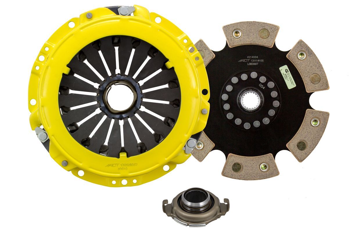Advanced Clutch Transmission Clutch Kit - HY1-HDR6 ⚠ Check if this part fits your vehicle Select your vehicle to confirm fitment before you buy. Select vehicle ACT Heavy Duty Race Rigid 6 Pad Clutch Kit Manufacturer: Advanced Clutch $624.00 Qty: Add to cart Ship to Select country United States of America Afghanistan Åland Islands Albania Algeria American Samoa Andorra Angola Anguilla Antarctica Antigua and Barbuda Argentina Armenia Aruba Australia Austria Azerbaijan Bahamas Bahrain Bangladesh Barbados Belarus Belgium Belize Benin Bermuda Bhutan Bolivia (Plurinational State of) Bonaire, Sint Eustatius and Saba Bosnia and Herzegovina Botswana Bouvet Island Brazil British Indian Ocean Territory Brunei Darussalam Bulgaria Burkina Faso Burundi Cabo Verde Cambodia Cameroon Canada Cayman Islands Central African Republic Chad Chile China Christmas Island Cocos (Keeling) Islands Colombia Comoros Congo Congo (Democratic Republic of the) Cook Islands Costa Rica Côte d'Ivoire Croatia Cuba Curaçao Cyprus Czechia Denmark Djibouti Dominica Dominican Republic Ecuador Egypt El Salvador Equatorial Guinea Eritrea Estonia Eswatini Ethiopia Falkland Islands (Malvinas) Faroe Islands Fiji Finland France French Guiana French Polynesia French Southern Territories Gabon Gambia Georgia Germany Ghana Gibraltar Greece Greenland Grenada Guadeloupe Guam Guatemala Guernsey Guinea Guinea-Bissau Guyana Haiti Heard Island and McDonald Islands Holy See Honduras Hong Kong Hungary Iceland India Indonesia Iran (Islamic Republic of) Iraq Ireland Isle of Man Israel Italy Jamaica Japan Jersey Jordan Kazakhstan Kenya Kiribati Korea (Democratic People's Republic of) Korea (Republic of) Kuwait Kyrgyzstan Lao People's Democratic Republic Latvia Lebanon Lesotho Liberia Libya Liechtenstein Lithuania Luxembourg Macao Madagascar Malawi Malaysia Maldives Mali Malta Marshall Islands Martinique Mauritania Mauritius Mayotte Mexico Micronesia (Federated States of) Moldova (Republic of) Monaco Mongolia Montenegro Montserrat Morocco Mozambique Myanmar Namibia Nauru Nepal Netherlands New Caledonia New Zealand Nicaragua Niger Nigeria Niue Norfolk Island North Macedonia Northern Mariana Islands Norway Oman Pakistan Palau Palestine, State of Panama Papua New Guinea Paraguay Peru Philippines Pitcairn Poland Portugal Puerto Rico Qatar Réunion Romania Russian Federation Rwanda Saint Barthélemy Saint Helena, Ascension and Tristan da Cunha Saint Kitts and Nevis Saint Lucia Saint Martin (French part) Saint Pierre and Miquelon Saint Vincent and the Grenadines Samoa San Marino Sao Tome and Principe Saudi Arabia Senegal Serbia Seychelles Sierra Leone Singapore Sint Maarten (Dutch part) Slovakia Slovenia Solomon Islands Somalia South Africa South Georgia and the South Sandwich Islands South Sudan Spain Sri Lanka Sudan Suriname Svalbard and Jan Mayen Sweden Switzerland Syrian Arab Republic Taiwan, Province of China Tajikistan Tanzania, United Republic of Thailand Timor-Leste Togo Tokelau Tonga Trinidad and Tobago Tunisia Turkey Turkmenistan Turks and Caicos Islands Tuvalu Uganda Ukraine United Arab Emirates United Kingdom of Great Britain and Northern Ireland United States Minor Outlying Islands Uruguay Uzbekistan Vanuatu Venezuela (Bolivarian Republic of) Vietnam Virgin Islands (British) Virgin Islands (U.S.) Wallis and Futuna Western Sahara Yemen Zambia Zimbabwe * Other * Shipping Method Name Estimated Delivery Price No shipping options Apply Custom wishlist OK Add to wishlist Add to compare list Email a friend HY1-HDR6 kit features ACT's most popular Heavy Duty pressure plate. ACT Heavy Duty pressure plates use exclusive diaphragm design to increase clamp load, reduce deflection and maximize clutch life. All diaphragms endure a four-stage, heat-treating process for unparalleled performance. ACT pressure plates have precision cover stampings to provide rigidity and consistency. ACT's 6-pad rigid race discs are made with high quality, ceramic friction materials. The chrome-moly hub is heat-treated for strength and durability. The lightweight, rigid design allows for quicker shifts and smooth, trouble-free service. With the 6-pad rigid race disc, engagement is harsher, but shifting is faster. The 6-pad rigid race disc is recommended for larger clutch sizes to absorb more heat.Note: Light to moderate pedal effort, aggressive engagement, increased gear rattle; Moderate friction life, extended by ACT's exclusive diaphragm design, rigid design may increase spline wear; Carefully engineered, precisely assembled, accurately balanced, uses select ceramic friction materials for high heat tolerance and maximum performance; Recommended for race use only; 100% clamp load tested and dynamically computer balanced for smooth high RPM reliability Products specifications Attribute name Attribute value Product Weight (lbs.) 11.9 Torque Capacity (ft/lbs.) 305 Torque Capacity Over OE 77% Prop 65 - Short Label WARNING: Cancer and Reproductive Harm - www.p65warnings.ca.gov Prop 65 Long Label Warning: This product can expose you to chemicals including carbon black, glass wool fibers, or silica (in clutch discs), chromium and nickel, which are known to the State of California to cause cancer or birth defects or other reproductive harm. For more information, visit www.P65Warnings.ca.gov Prop 65 Yes/No Yes Input Shaft Diameter 0.875 Input Spline Quantity 20 Clutch Disc Diameter 214, 8.4 Disc Material Ceramic Pressure Plate Type Heavy Duty Clutch Master Cylinder Included No Flywheel Included No Pilot Bushing Included No Alignment Tool Included No Clutch Slave Cylinder Included No Flywheel Bolts Included No Pilot Bearing Included No Disc Type Sprung Solid Solid Release Bearing Included Yes Pressure Plate Bolts Included No Grease Included Yes Grade Type Performance Country of Origin JP Condition New 🚗 Compatible with 22 vehicles are compatible with this product Year Make Model 2004 Hyundai Elantra 2005 Hyundai Elantra 2006 Hyundai Elantra 1996 Hyundai Elantra 1997 Hyundai Ela