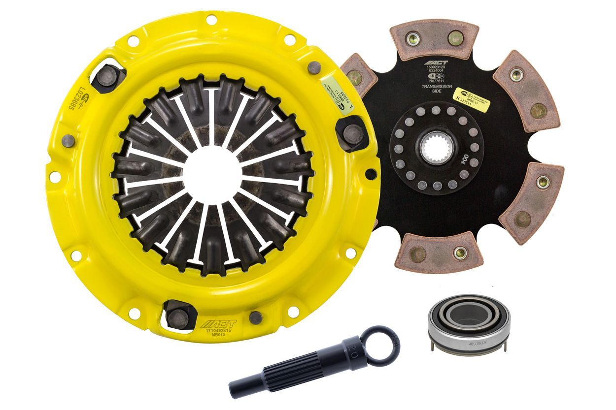 Advanced Clutch Transmission Clutch Kit - MB1-HDR6 ⚠ Check if this part fits your vehicle Select your vehicle to confirm fitment before you buy. Select vehicle ACT Heavy Duty Race Rigid 6 Pad Clutch Kit Manufacturer: Advanced Clutch $480.00 Qty: Add to cart Ship to Select country United States of America Afghanistan Åland Islands Albania Algeria American Samoa Andorra Angola Anguilla Antarctica Antigua and Barbuda Argentina Armenia Aruba Australia Austria Azerbaijan Bahamas Bahrain Bangladesh Barbados Belarus Belgium Belize Benin Bermuda Bhutan Bolivia (Plurinational State of) Bonaire, Sint Eustatius and Saba Bosnia and Herzegovina Botswana Bouvet Island Brazil British Indian Ocean Territory Brunei Darussalam Bulgaria Burkina Faso Burundi Cabo Verde Cambodia Cameroon Canada Cayman Islands Central African Republic Chad Chile China Christmas Island Cocos (Keeling) Islands Colombia Comoros Congo Congo (Democratic Republic of the) Cook Islands Costa Rica Côte d'Ivoire Croatia Cuba Curaçao Cyprus Czechia Denmark Djibouti Dominica Dominican Republic Ecuador Egypt El Salvador Equatorial Guinea Eritrea Estonia Eswatini Ethiopia Falkland Islands (Malvinas) Faroe Islands Fiji Finland France French Guiana French Polynesia French Southern Territories Gabon Gambia Georgia Germany Ghana Gibraltar Greece Greenland Grenada Guadeloupe Guam Guatemala Guernsey Guinea Guinea-Bissau Guyana Haiti Heard Island and McDonald Islands Holy See Honduras Hong Kong Hungary Iceland India Indonesia Iran (Islamic Republic of) Iraq Ireland Isle of Man Israel Italy Jamaica Japan Jersey Jordan Kazakhstan Kenya Kiribati Korea (Democratic People's Republic of) Korea (Republic of) Kuwait Kyrgyzstan Lao People's Democratic Republic Latvia Lebanon Lesotho Liberia Libya Liechtenstein Lithuania Luxembourg Macao Madagascar Malawi Malaysia Maldives Mali Malta Marshall Islands Martinique Mauritania Mauritius Mayotte Mexico Micronesia (Federated States of) Moldova (Republic of) Monaco Mongolia Montenegro Montserrat Morocco Mozambique Myanmar Namibia Nauru Nepal Netherlands New Caledonia New Zealand Nicaragua Niger Nigeria Niue Norfolk Island North Macedonia Northern Mariana Islands Norway Oman Pakistan Palau Palestine, State of Panama Papua New Guinea Paraguay Peru Philippines Pitcairn Poland Portugal Puerto Rico Qatar Réunion Romania Russian Federation Rwanda Saint Barthélemy Saint Helena, Ascension and Tristan da Cunha Saint Kitts and Nevis Saint Lucia Saint Martin (French part) Saint Pierre and Miquelon Saint Vincent and the Grenadines Samoa San Marino Sao Tome and Principe Saudi Arabia Senegal Serbia Seychelles Sierra Leone Singapore Sint Maarten (Dutch part) Slovakia Slovenia Solomon Islands Somalia South Africa South Georgia and the South Sandwich Islands South Sudan Spain Sri Lanka Sudan Suriname Svalbard and Jan Mayen Sweden Switzerland Syrian Arab Republic Taiwan, Province of China Tajikistan Tanzania, United Republic of Thailand Timor-Leste Togo Tokelau Tonga Trinidad and Tobago Tunisia Turkey Turkmenistan Turks and Caicos Islands Tuvalu Uganda Ukraine United Arab Emirates United Kingdom of Great Britain and Northern Ireland United States Minor Outlying Islands Uruguay Uzbekistan Vanuatu Venezuela (Bolivarian Republic of) Vietnam Virgin Islands (British) Virgin Islands (U.S.) Wallis and Futuna Western Sahara Yemen Zambia Zimbabwe * Other * Shipping Method Name Estimated Delivery Price No shipping options Apply Custom wishlist OK Add to wishlist Add to compare list Email a friend MB1-HDR6 kit features ACT's most popular Heavy Duty pressure plate. ACT Heavy Duty pressure plates use exclusive diaphragm design to increase clamp load, reduce deflection and maximize clutch life. All diaphragms endure a four-stage, heat-treating process for unparalleled performance. ACT pressure plates have precision cover stampings to provide rigidity and consistency. ACT's 6-pad rigid race discs are made with high quality, ceramic friction materials. The chrome-moly hub is heat-treated for strength and durability. The lightweight, rigid design allows for quicker shifts and smooth, trouble-free service. With the 6-pad rigid race disc, engagement is harsher, but shifting is faster. The 6-pad rigid race disc is recommended for larger clutch sizes to absorb more heat.Note: Light to moderate pedal effort, aggressive engagement, increased gear rattle; Moderate friction life, extended by ACT's exclusive diaphragm design, rigid design may increase spline wear; Carefully engineered, precisely assembled, accurately balanced, uses select ceramic friction materials for high heat tolerance and maximum performance; Recommended for race use only; 100% clamp load tested and dynamically computer balanced for smooth high RPM reliability Products specifications Attribute name Attribute value Product Weight (lbs.) 10.8 Torque Capacity (ft/lbs.) 415 Torque Capacity Over OE 63% Prop 65 - Short Label WARNING: Cancer and Reproductive Harm - www.p65warnings.ca.gov Prop 65 Long Label Warning: This product can expose you to chemicals including carbon black, glass wool fibers, or silica (in clutch discs), chromium and nickel, which are known to the State of California to cause cancer or birth defects or other reproductive harm. For more information, visit www.P65Warnings.ca.gov Prop 65 Yes/No Yes Flywheel Included No Pilot Bushing Included No Pressure Plate Type Heavy Duty Release Bearing Included Yes Clutch Disc Diameter 8.8, 224 Disc Material Ceramic Input Spline Quantity 20 Input Shaft Diameter 0.875 Alignment Tool Included Yes Disc Type Sprung Solid Solid Pressure Plate Bolts Included No Grease Included Yes Grade Type Performance Clutch Slave Cylinder Included No Flywheel Bolts Included No Pilot Bearing Included No Clutch Master Cylinder Included No Country of Origin KR Condition New 🚗 Compatible with 65 vehicles are compatible with this product Year Make Model 1995 Mitsubishi Eclipse 1996 Mitsubishi Eclipse 1997 Mitsubishi Eclipse 1998 Mitsubishi Eclipse 199