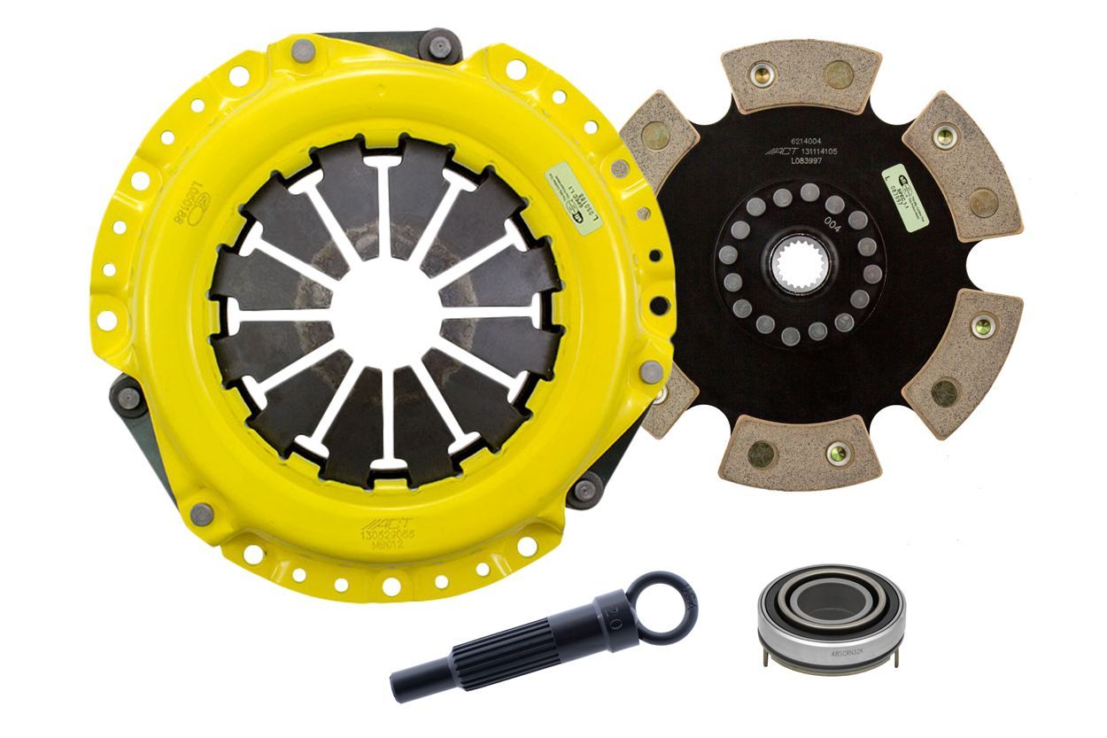 Advanced Clutch Transmission Clutch Kit - MB3-HDR6 ⚠ Check if this part fits your vehicle Select your vehicle to confirm fitment before you buy. Select vehicle ACT Heavy Duty Race Rigid 6 Pad Clutch Kit Manufacturer: Advanced Clutch $530.00 Qty: Add to cart Ship to Select country United States of America Afghanistan Åland Islands Albania Algeria American Samoa Andorra Angola Anguilla Antarctica Antigua and Barbuda Argentina Armenia Aruba Australia Austria Azerbaijan Bahamas Bahrain Bangladesh Barbados Belarus Belgium Belize Benin Bermuda Bhutan Bolivia (Plurinational State of) Bonaire, Sint Eustatius and Saba Bosnia and Herzegovina Botswana Bouvet Island Brazil British Indian Ocean Territory Brunei Darussalam Bulgaria Burkina Faso Burundi Cabo Verde Cambodia Cameroon Canada Cayman Islands Central African Republic Chad Chile China Christmas Island Cocos (Keeling) Islands Colombia Comoros Congo Congo (Democratic Republic of the) Cook Islands Costa Rica Côte d'Ivoire Croatia Cuba Curaçao Cyprus Czechia Denmark Djibouti Dominica Dominican Republic Ecuador Egypt El Salvador Equatorial Guinea Eritrea Estonia Eswatini Ethiopia Falkland Islands (Malvinas) Faroe Islands Fiji Finland France French Guiana French Polynesia French Southern Territories Gabon Gambia Georgia Germany Ghana Gibraltar Greece Greenland Grenada Guadeloupe Guam Guatemala Guernsey Guinea Guinea-Bissau Guyana Haiti Heard Island and McDonald Islands Holy See Honduras Hong Kong Hungary Iceland India Indonesia Iran (Islamic Republic of) Iraq Ireland Isle of Man Israel Italy Jamaica Japan Jersey Jordan Kazakhstan Kenya Kiribati Korea (Democratic People's Republic of) Korea (Republic of) Kuwait Kyrgyzstan Lao People's Democratic Republic Latvia Lebanon Lesotho Liberia Libya Liechtenstein Lithuania Luxembourg Macao Madagascar Malawi Malaysia Maldives Mali Malta Marshall Islands Martinique Mauritania Mauritius Mayotte Mexico Micronesia (Federated States of) Moldova (Republic of) Monaco Mongolia Montenegro Montserrat Morocco Mozambique Myanmar Namibia Nauru Nepal Netherlands New Caledonia New Zealand Nicaragua Niger Nigeria Niue Norfolk Island North Macedonia Northern Mariana Islands Norway Oman Pakistan Palau Palestine, State of Panama Papua New Guinea Paraguay Peru Philippines Pitcairn Poland Portugal Puerto Rico Qatar Réunion Romania Russian Federation Rwanda Saint Barthélemy Saint Helena, Ascension and Tristan da Cunha Saint Kitts and Nevis Saint Lucia Saint Martin (French part) Saint Pierre and Miquelon Saint Vincent and the Grenadines Samoa San Marino Sao Tome and Principe Saudi Arabia Senegal Serbia Seychelles Sierra Leone Singapore Sint Maarten (Dutch part) Slovakia Slovenia Solomon Islands Somalia South Africa South Georgia and the South Sandwich Islands South Sudan Spain Sri Lanka Sudan Suriname Svalbard and Jan Mayen Sweden Switzerland Syrian Arab Republic Taiwan, Province of China Tajikistan Tanzania, United Republic of Thailand Timor-Leste Togo Tokelau Tonga Trinidad and Tobago Tunisia Turkey Turkmenistan Turks and Caicos Islands Tuvalu Uganda Ukraine United Arab Emirates United Kingdom of Great Britain and Northern Ireland United States Minor Outlying Islands Uruguay Uzbekistan Vanuatu Venezuela (Bolivarian Republic of) Vietnam Virgin Islands (British) Virgin Islands (U.S.) Wallis and Futuna Western Sahara Yemen Zambia Zimbabwe * Other * Shipping Method Name Estimated Delivery Price No shipping options Apply Custom wishlist OK Add to wishlist Add to compare list Email a friend MB3-HDR6 kit features ACT's most popular Heavy Duty pressure plate. ACT Heavy Duty pressure plates use exclusive diaphragm design to increase clamp load, reduce deflection and maximize clutch life. All diaphragms endure a four-stage, heat-treating process for unparalleled performance. ACT pressure plates have precision cover stampings to provide rigidity and consistency. ACT's 6-pad rigid race discs are made with high quality, ceramic friction materials. The chrome-moly hub is heat-treated for strength and durability. The lightweight, rigid design allows for quicker shifts and smooth, trouble-free service. With the 6-pad rigid race disc, engagement is harsher, but shifting is faster. The 6-pad rigid race disc is recommended for larger clutch sizes to absorb more heat.Note: Light to moderate pedal effort, aggressive engagement, increased gear rattle; Moderate friction life, extended by ACT's exclusive diaphragm design, rigid design may increase spline wear; Carefully engineered, precisely assembled, accurately balanced, uses select ceramic friction materials for high heat tolerance and maximum performance; Recommended for race use only; 100% clamp load tested and dynamically computer balanced for smooth high RPM reliability Products specifications Attribute name Attribute value Product Weight (lbs.) 10.6 Torque Capacity (ft/lbs.) 290 Torque Capacity Over OE 71% Prop 65 - Short Label WARNING: Cancer and Reproductive Harm - www.p65warnings.ca.gov Prop 65 Long Label Warning: This product can expose you to chemicals including carbon black, glass wool fibers, or silica (in clutch discs), chromium and nickel, which are known to the State of California to cause cancer or birth defects or other reproductive harm. For more information, visit www.P65Warnings.ca.gov Prop 65 Yes/No Yes Alignment Tool Included Yes Disc Type Sprung Solid Solid Pressure Plate Bolts Included No Grease Included Yes Grade Type Performance Clutch Slave Cylinder Included No Flywheel Bolts Included No Pilot Bearing Included No Clutch Master Cylinder Included No Flywheel Included No Pilot Bushing Included No Pressure Plate Type Heavy Duty Release Bearing Included Yes Clutch Disc Diameter 8.4, 214 Disc Material Ceramic Input Spline Quantity 20 Input Shaft Diameter 0.875 Country of Origin KR Condition New 🚗 Compatible with 55 vehicles are compatible with this product Year Make Model 1990 Mitsubishi Eclipse 1991 Mitsubishi Eclipse 1992 Mitsubishi Eclipse 1993 Mitsubishi Eclipse 199
