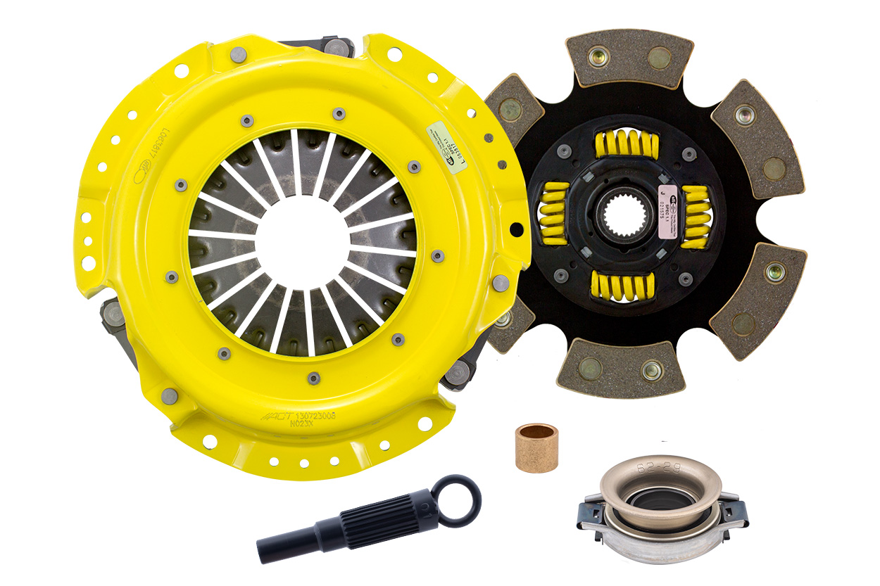 Advanced Clutch Transmission Clutch Kit - NA1-XTG6 ⚠ Check if this part fits your vehicle Select your vehicle to confirm fitment before you buy. Select vehicle ACT Extreme Race Sprung 6 Pad Clutch Kit Manufacturer: Advanced Clutch $570.00 Qty: Add to cart Ship to Select country United States of America Afghanistan Åland Islands Albania Algeria American Samoa Andorra Angola Anguilla Antarctica Antigua and Barbuda Argentina Armenia Aruba Australia Austria Azerbaijan Bahamas Bahrain Bangladesh Barbados Belarus Belgium Belize Benin Bermuda Bhutan Bolivia (Plurinational State of) Bonaire, Sint Eustatius and Saba Bosnia and Herzegovina Botswana Bouvet Island Brazil British Indian Ocean Territory Brunei Darussalam Bulgaria Burkina Faso Burundi Cabo Verde Cambodia Cameroon Canada Cayman Islands Central African Republic Chad Chile China Christmas Island Cocos (Keeling) Islands Colombia Comoros Congo Congo (Democratic Republic of the) Cook Islands Costa Rica Côte d'Ivoire Croatia Cuba Curaçao Cyprus Czechia Denmark Djibouti Dominica Dominican Republic Ecuador Egypt El Salvador Equatorial Guinea Eritrea Estonia Eswatini Ethiopia Falkland Islands (Malvinas) Faroe Islands Fiji Finland France French Guiana French Polynesia French Southern Territories Gabon Gambia Georgia Germany Ghana Gibraltar Greece Greenland Grenada Guadeloupe Guam Guatemala Guernsey Guinea Guinea-Bissau Guyana Haiti Heard Island and McDonald Islands Holy See Honduras Hong Kong Hungary Iceland India Indonesia Iran (Islamic Republic of) Iraq Ireland Isle of Man Israel Italy Jamaica Japan Jersey Jordan Kazakhstan Kenya Kiribati Korea (Democratic People's Republic of) Korea (Republic of) Kuwait Kyrgyzstan Lao People's Democratic Republic Latvia Lebanon Lesotho Liberia Libya Liechtenstein Lithuania Luxembourg Macao Madagascar Malawi Malaysia Maldives Mali Malta Marshall Islands Martinique Mauritania Mauritius Mayotte Mexico Micronesia (Federated States of) Moldova (Republic of) Monaco Mongolia Montenegro Montserrat Morocco Mozambique Myanmar Namibia Nauru Nepal Netherlands New Caledonia New Zealand Nicaragua Niger Nigeria Niue Norfolk Island North Macedonia Northern Mariana Islands Norway Oman Pakistan Palau Palestine, State of Panama Papua New Guinea Paraguay Peru Philippines Pitcairn Poland Portugal Puerto Rico Qatar Réunion Romania Russian Federation Rwanda Saint Barthélemy Saint Helena, Ascension and Tristan da Cunha Saint Kitts and Nevis Saint Lucia Saint Martin (French part) Saint Pierre and Miquelon Saint Vincent and the Grenadines Samoa San Marino Sao Tome and Principe Saudi Arabia Senegal Serbia Seychelles Sierra Leone Singapore Sint Maarten (Dutch part) Slovakia Slovenia Solomon Islands Somalia South Africa South Georgia and the South Sandwich Islands South Sudan Spain Sri Lanka Sudan Suriname Svalbard and Jan Mayen Sweden Switzerland Syrian Arab Republic Taiwan, Province of China Tajikistan Tanzania, United Republic of Thailand Timor-Leste Togo Tokelau Tonga Trinidad and Tobago Tunisia Turkey Turkmenistan Turks and Caicos Islands Tuvalu Uganda Ukraine United Arab Emirates United Kingdom of Great Britain and Northern Ireland United States Minor Outlying Islands Uruguay Uzbekistan Vanuatu Venezuela (Bolivarian Republic of) Vietnam Virgin Islands (British) Virgin Islands (U.S.) Wallis and Futuna Western Sahara Yemen Zambia Zimbabwe * Other * Shipping Method Name Estimated Delivery Price No shipping options Apply Custom wishlist OK Add to wishlist Add to compare list Email a friend NA1-XTG6 kit features an Xtreme pressure plate for the most demanding driver. ACT Xtreme pressure plates use exclusive diaphragm design to increase clamp load, reduce deflection and maximize clutch life. All diaphragms endure a four-stage, heat-treating process for unparalleled performance. ACT pressure plates have precision cover stampings to provide rigidity and consistency. ACT's 6-pad spring-centered race disc features a spring-center construction to properly damp torsional vibrations and resist failure under harsh conditions. ACT spring retainers utilize wraparound spring windows and thicker retainer stampings to provide spring support, reduce stress concentrations, and increase strength and reliability. With the 6-pad spring-centered race disc, engagement is harsher, but shifting is faster. The 6-pad spring-centered disc is recommended for larger clutch sizes to absorb more heat.Note: Moderate to heavy pedal effort, aggressive engagement, OE to mild gear rattle; Moderate friction life, extended by ACT's exclusive diaphragm design; Carefully engineered, precisely assembled, accurately balanced, uses select ceramic friction materials for high heat tolerance and maximum performance; Recommended for high horsepower street or race use; 100% clamp load tested and dynamically computer balanced for smooth high RPM reliability Products specifications Attribute name Attribute value Input Shaft Diameter 1 Product Weight (lbs.) 14.3 Torque Capacity Over OE 168% Clutch Disc Diameter 224, 8.8 Input Spline Quantity 24 Torque Capacity (ft/lbs.) 475 Disc Material Ceramic Prop 65 - Short Label WARNING: Cancer and Reproductive Harm - www.p65warnings.ca.gov Prop 65 Long Label Warning: This product can expose you to chemicals including carbon black, glass wool fibers, or silica (in clutch discs), chromium and nickel, which are known to the State of California to cause cancer or birth defects or other reproductive harm. For more information, visit www.P65Warnings.ca.gov Pressure Plate Type Xtreme Pilot Bushing Included Yes Release Bearing Included Yes Alignment Tool Included Yes Prop 65 Yes/No Yes Disc Type Sprung Solid Sprung Clutch Slave Cylinder Included No Pressure Plate Bolts Included No Grease Included Yes Grade Type Performance Flywheel Bolts Included No Clutch Master Cylinder Included No Country of Origin KR Condition New 🚗 Compatible with 3 vehicles are compatible with this product Year Make Model 1990 Nissan Stanza 1991 Nissan Stanza 1992 Nissan S