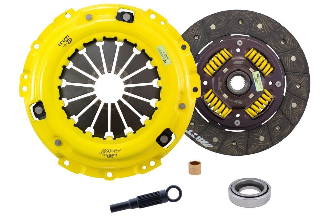 Advanced Clutch Transmission Clutch Kit - NS1-HDSS ACT Heavy Duty Performance Street Sprung Clutch Kit Manufacturer: Advanced Clutch $536.00 Qty: Add to cart Ship to Select country United States of America Afghanistan Åland Islands Albania Algeria American Samoa Andorra Angola Anguilla Antarctica Antigua and Barbuda Argentina Armenia Aruba Australia Austria Azerbaijan Bahamas Bahrain Bangladesh Barbados Belarus Belgium Belize Benin Bermuda Bhutan Bolivia (Plurinational State of) Bonaire, Sint Eustatius and Saba Bosnia and Herzegovina Botswana Bouvet Island Brazil British Indian Ocean Territory Brunei Darussalam Bulgaria Burkina Faso Burundi Cabo Verde Cambodia Cameroon Canada Cayman Islands Central African Republic Chad Chile China Christmas Island Cocos (Keeling) Islands Colombia Comoros Congo Congo (Democratic Republic of the) Cook Islands Costa Rica Côte d'Ivoire Croatia Cuba Curaçao Cyprus Czechia Denmark Djibouti Dominica Dominican Republic Ecuador Egypt El Salvador Equatorial Guinea Eritrea Estonia Eswatini Ethiopia Falkland Islands (Malvinas) Faroe Islands Fiji Finland France French Guiana French Polynesia French Southern Territories Gabon Gambia Georgia Germany Ghana Gibraltar Greece Greenland Grenada Guadeloupe Guam Guatemala Guernsey Guinea Guinea-Bissau Guyana Haiti Heard Island and McDonald Islands Holy See Honduras Hong Kong Hungary Iceland India Indonesia Iran (Islamic Republic of) Iraq Ireland Isle of Man Israel Italy Jamaica Japan Jersey Jordan Kazakhstan Kenya Kiribati Korea (Democratic People's Republic of) Korea (Republic of) Kuwait Kyrgyzstan Lao People's Democratic Republic Latvia Lebanon Lesotho Liberia Libya Liechtenstein Lithuania Luxembourg Macao Madagascar Malawi Malaysia Maldives Mali Malta Marshall Islands Martinique Mauritania Mauritius Mayotte Mexico Micronesia (Federated States of) Moldova (Republic of) Monaco Mongolia Montenegro Montserrat Morocco Mozambique Myanmar Namibia Nauru Nepal Netherlands New Caledonia New Zealand Nicaragua Niger Nigeria Niue Norfolk Island North Macedonia Northern Mariana Islands Norway Oman Pakistan Palau Palestine, State of Panama Papua New Guinea Paraguay Peru Philippines Pitcairn Poland Portugal Puerto Rico Qatar Réunion Romania Russian Federation Rwanda Saint Barthélemy Saint Helena, Ascension and Tristan da Cunha Saint Kitts and Nevis Saint Lucia Saint Martin (French part) Saint Pierre and Miquelon Saint Vincent and the Grenadines Samoa San Marino Sao Tome and Principe Saudi Arabia Senegal Serbia Seychelles Sierra Leone Singapore Sint Maarten (Dutch part) Slovakia Slovenia Solomon Islands Somalia South Africa South Georgia and the South Sandwich Islands South Sudan Spain Sri Lanka Sudan Suriname Svalbard and Jan Mayen Sweden Switzerland Syrian Arab Republic Taiwan, Province of China Tajikistan Tanzania, United Republic of Thailand Timor-Leste Togo Tokelau Tonga Trinidad and Tobago Tunisia Turkey Turkmenistan Turks and Caicos Islands Tuvalu Uganda Ukraine United Arab Emirates United Kingdom of Great Britain and Northern Ireland United States Minor Outlying Islands Uruguay Uzbekistan Vanuatu Venezuela (Bolivarian Republic of) Vietnam Virgin Islands (British) Virgin Islands (U.S.) Wallis and Futuna Western Sahara Yemen Zambia Zimbabwe * Other * Shipping Method Name Estimated Delivery Price No shipping options Apply Custom wishlist OK Add to wishlist Add to compare list Email a friend NS1-HDSS kit features ACT's most popular Heavy Duty pressure plate and most popular street disc. ACT Heavy Duty pressure plates use exclusive diaphragm design to increase clamp load, reduce deflection and maximize clutch life. All diaphragms endure a four-stage, heat-treating process for unparalleled performance. ACT pressure plates have precision cover stampings to provide rigidity and consistency. ACT's Performance Street discs feature premium organic materials with high copper content for better heat transfer and steel-backed lining for greater burst strength and durability. These discs have reduced marcel for faster shift action to complement ACT pressure plates, with increased strength and reliability.Note: Light to moderate pedal effort, smooth positive engagement, OE to mild gear rattle; Longer friction life, extended by ACT's exclusive diaphragm design; Carefully engineered, precisely assembled, accurately balanced, with premium organic friction materials for heat tolerance and reduced fade; Recommended for street and race use; 100% clamp load tested and dynamically computer balanced for smooth high RPM reliability Products specifications Attribute name Attribute value Input Shaft Diameter 1 Product Weight (lbs.) 16.5 Input Spline Quantity 24 Clutch Disc Diameter 240, 9.4 Torque Capacity (ft/lbs.) 370 Torque Capacity Over OE 49% Pressure Plate Type Heavy Duty Disc Material Organic Prop 65 - Short Label WARNING: Cancer and Reproductive Harm - www.p65warnings.ca.gov Prop 65 Long Label Warning: This product can expose you to chemicals including carbon black, glass wool fibers, or silica (in clutch discs), chromium and nickel, which are known to the State of California to cause cancer or birth defects or other reproductive harm. For more information, visit www.P65Warnings.ca.gov Pilot Bushing Included Yes Release Bearing Included Yes Alignment Tool Included Yes Prop 65 Yes/No Yes Disc Type Sprung Solid Sprung Clutch Slave Cylinder Included No Pressure Plate Bolts Included No Grease Included Yes Grade Type Performance Flywheel Bolts Included No Clutch Master Cylinder Included No Country of Origin CN Condition New