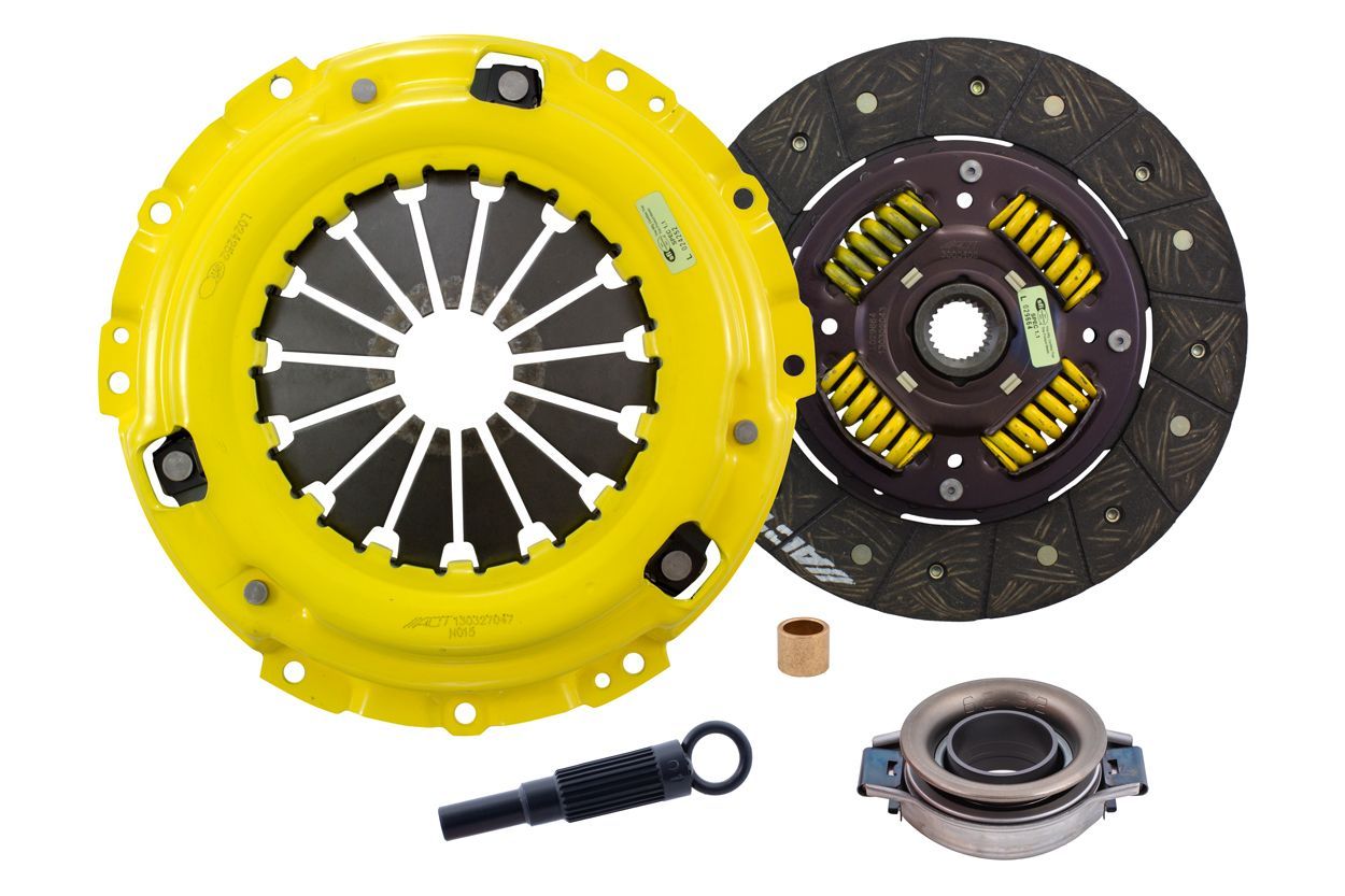 Advanced Clutch Transmission Clutch Kit - NS5-HDSS ACT Heavy Duty Performance Street Sprung Clutch Kit Manufacturer: Advanced Clutch $546.00 Qty: Add to cart Ship to Select country United States of America Afghanistan Åland Islands Albania Algeria American Samoa Andorra Angola Anguilla Antarctica Antigua and Barbuda Argentina Armenia Aruba Australia Austria Azerbaijan Bahamas Bahrain Bangladesh Barbados Belarus Belgium Belize Benin Bermuda Bhutan Bolivia (Plurinational State of) Bonaire, Sint Eustatius and Saba Bosnia and Herzegovina Botswana Bouvet Island Brazil British Indian Ocean Territory Brunei Darussalam Bulgaria Burkina Faso Burundi Cabo Verde Cambodia Cameroon Canada Cayman Islands Central African Republic Chad Chile China Christmas Island Cocos (Keeling) Islands Colombia Comoros Congo Congo (Democratic Republic of the) Cook Islands Costa Rica Côte d'Ivoire Croatia Cuba Curaçao Cyprus Czechia Denmark Djibouti Dominica Dominican Republic Ecuador Egypt El Salvador Equatorial Guinea Eritrea Estonia Eswatini Ethiopia Falkland Islands (Malvinas) Faroe Islands Fiji Finland France French Guiana French Polynesia French Southern Territories Gabon Gambia Georgia Germany Ghana Gibraltar Greece Greenland Grenada Guadeloupe Guam Guatemala Guernsey Guinea Guinea-Bissau Guyana Haiti Heard Island and McDonald Islands Holy See Honduras Hong Kong Hungary Iceland India Indonesia Iran (Islamic Republic of) Iraq Ireland Isle of Man Israel Italy Jamaica Japan Jersey Jordan Kazakhstan Kenya Kiribati Korea (Democratic People's Republic of) Korea (Republic of) Kuwait Kyrgyzstan Lao People's Democratic Republic Latvia Lebanon Lesotho Liberia Libya Liechtenstein Lithuania Luxembourg Macao Madagascar Malawi Malaysia Maldives Mali Malta Marshall Islands Martinique Mauritania Mauritius Mayotte Mexico Micronesia (Federated States of) Moldova (Republic of) Monaco Mongolia Montenegro Montserrat Morocco Mozambique Myanmar Namibia Nauru Nepal Netherlands New Caledonia New Zealand Nicaragua Niger Nigeria Niue Norfolk Island North Macedonia Northern Mariana Islands Norway Oman Pakistan Palau Palestine, State of Panama Papua New Guinea Paraguay Peru Philippines Pitcairn Poland Portugal Puerto Rico Qatar Réunion Romania Russian Federation Rwanda Saint Barthélemy Saint Helena, Ascension and Tristan da Cunha Saint Kitts and Nevis Saint Lucia Saint Martin (French part) Saint Pierre and Miquelon Saint Vincent and the Grenadines Samoa San Marino Sao Tome and Principe Saudi Arabia Senegal Serbia Seychelles Sierra Leone Singapore Sint Maarten (Dutch part) Slovakia Slovenia Solomon Islands Somalia South Africa South Georgia and the South Sandwich Islands South Sudan Spain Sri Lanka Sudan Suriname Svalbard and Jan Mayen Sweden Switzerland Syrian Arab Republic Taiwan, Province of China Tajikistan Tanzania, United Republic of Thailand Timor-Leste Togo Tokelau Tonga Trinidad and Tobago Tunisia Turkey Turkmenistan Turks and Caicos Islands Tuvalu Uganda Ukraine United Arab Emirates United Kingdom of Great Britain and Northern Ireland United States Minor Outlying Islands Uruguay Uzbekistan Vanuatu Venezuela (Bolivarian Republic of) Vietnam Virgin Islands (British) Virgin Islands (U.S.) Wallis and Futuna Western Sahara Yemen Zambia Zimbabwe * Other * Shipping Method Name Estimated Delivery Price No shipping options Apply Custom wishlist OK Add to wishlist Add to compare list Email a friend NS5-HDSS kit features ACT's most popular Heavy Duty pressure plate and most popular street disc. ACT Heavy Duty pressure plates use exclusive diaphragm design to increase clamp load, reduce deflection and maximize clutch life. All diaphragms endure a four-stage, heat-treating process for unparalleled performance. ACT pressure plates have precision cover stampings to provide rigidity and consistency. ACT's Performance Street discs feature premium organic materials with high copper content for better heat transfer and steel-backed lining for greater burst strength and durability. These discs have reduced marcel for faster shift action to complement ACT pressure plates, with increased strength and reliability.Note: Light to moderate pedal effort, smooth positive engagement, OE to mild gear rattle; Longer friction life, extended by ACT's exclusive diaphragm design; Carefully engineered, precisely assembled, accurately balanced, with premium organic friction materials for heat tolerance and reduced fade; Recommended for street and race use; 100% clamp load tested and dynamically computer balanced for smooth high RPM reliability Products specifications Attribute name Attribute value Input Shaft Diameter 1 Product Weight (lbs.) 16.4 Input Spline Quantity 24 Clutch Disc Diameter 240, 9.4 Torque Capacity (ft/lbs.) 370 Torque Capacity Over OE 49% Pressure Plate Type Heavy Duty Disc Material Organic Prop 65 - Short Label WARNING: Cancer and Reproductive Harm - www.p65warnings.ca.gov Prop 65 Long Label Warning: This product can expose you to chemicals including carbon black, glass wool fibers, or silica (in clutch discs), chromium and nickel, which are known to the State of California to cause cancer or birth defects or other reproductive harm. For more information, visit www.P65Warnings.ca.gov Pilot Bushing Included Yes Release Bearing Included Yes Alignment Tool Included Yes Prop 65 Yes/No Yes Disc Type Sprung Solid Sprung Clutch Slave Cylinder Included No Pressure Plate Bolts Included No Grease Included Yes Grade Type Performance Flywheel Bolts Included No Clutch Master Cylinder Included No Country of Origin CN Condition New