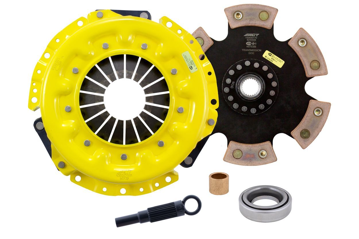 Advanced Clutch Transmission Clutch Kit - NX6-XTR6 ⚠ Check if this part fits your vehicle Select your vehicle to confirm fitment before you buy. Select vehicle ACT Extreme Race Rigid 6 Pad Clutch Kit Manufacturer: Advanced Clutch $742.00 Qty: Add to cart Ship to Select country United States of America Afghanistan Åland Islands Albania Algeria American Samoa Andorra Angola Anguilla Antarctica Antigua and Barbuda Argentina Armenia Aruba Australia Austria Azerbaijan Bahamas Bahrain Bangladesh Barbados Belarus Belgium Belize Benin Bermuda Bhutan Bolivia (Plurinational State of) Bonaire, Sint Eustatius and Saba Bosnia and Herzegovina Botswana Bouvet Island Brazil British Indian Ocean Territory Brunei Darussalam Bulgaria Burkina Faso Burundi Cabo Verde Cambodia Cameroon Canada Cayman Islands Central African Republic Chad Chile China Christmas Island Cocos (Keeling) Islands Colombia Comoros Congo Congo (Democratic Republic of the) Cook Islands Costa Rica Côte d'Ivoire Croatia Cuba Curaçao Cyprus Czechia Denmark Djibouti Dominica Dominican Republic Ecuador Egypt El Salvador Equatorial Guinea Eritrea Estonia Eswatini Ethiopia Falkland Islands (Malvinas) Faroe Islands Fiji Finland France French Guiana French Polynesia French Southern Territories Gabon Gambia Georgia Germany Ghana Gibraltar Greece Greenland Grenada Guadeloupe Guam Guatemala Guernsey Guinea Guinea-Bissau Guyana Haiti Heard Island and McDonald Islands Holy See Honduras Hong Kong Hungary Iceland India Indonesia Iran (Islamic Republic of) Iraq Ireland Isle of Man Israel Italy Jamaica Japan Jersey Jordan Kazakhstan Kenya Kiribati Korea (Democratic People's Republic of) Korea (Republic of) Kuwait Kyrgyzstan Lao People's Democratic Republic Latvia Lebanon Lesotho Liberia Libya Liechtenstein Lithuania Luxembourg Macao Madagascar Malawi Malaysia Maldives Mali Malta Marshall Islands Martinique Mauritania Mauritius Mayotte Mexico Micronesia (Federated States of) Moldova (Republic of) Monaco Mongolia Montenegro Montserrat Morocco Mozambique Myanmar Namibia Nauru Nepal Netherlands New Caledonia New Zealand Nicaragua Niger Nigeria Niue Norfolk Island North Macedonia Northern Mariana Islands Norway Oman Pakistan Palau Palestine, State of Panama Papua New Guinea Paraguay Peru Philippines Pitcairn Poland Portugal Puerto Rico Qatar Réunion Romania Russian Federation Rwanda Saint Barthélemy Saint Helena, Ascension and Tristan da Cunha Saint Kitts and Nevis Saint Lucia Saint Martin (French part) Saint Pierre and Miquelon Saint Vincent and the Grenadines Samoa San Marino Sao Tome and Principe Saudi Arabia Senegal Serbia Seychelles Sierra Leone Singapore Sint Maarten (Dutch part) Slovakia Slovenia Solomon Islands Somalia South Africa South Georgia and the South Sandwich Islands South Sudan Spain Sri Lanka Sudan Suriname Svalbard and Jan Mayen Sweden Switzerland Syrian Arab Republic Taiwan, Province of China Tajikistan Tanzania, United Republic of Thailand Timor-Leste Togo Tokelau Tonga Trinidad and Tobago Tunisia Turkey Turkmenistan Turks and Caicos Islands Tuvalu Uganda Ukraine United Arab Emirates United Kingdom of Great Britain and Northern Ireland United States Minor Outlying Islands Uruguay Uzbekistan Vanuatu Venezuela (Bolivarian Republic of) Vietnam Virgin Islands (British) Virgin Islands (U.S.) Wallis and Futuna Western Sahara Yemen Zambia Zimbabwe * Other * Shipping Method Name Estimated Delivery Price No shipping options Apply Custom wishlist OK Add to wishlist Add to compare list Email a friend NX6-XTR6 kit features an Xtreme pressure plate for the most demanding driver. ACT Xtreme pressure plates use exclusive diaphragm design to increase clamp load, reduce deflection and maximize clutch life. All diaphragms endure a four-stage, heat-treating process for unparalleled performance. ACT pressure plates have precision cover stampings to provide rigidity and consistency. ACT's 6-pad rigid race discs are made with high quality, ceramic friction materials. The chrome-moly hub is heat-treated for strength and durability. The lightweight, rigid design allows for quicker shifts and smooth, trouble-free service. With the 6-pad rigid race disc, engagement is harsher, but shifting is faster. The 6-pad rigid race disc is recommended for larger clutch sizes to absorb more heat.Note: Moderate to heavy pedal effort, aggressive engagement, increased gear rattle; Moderate friction life, extended by ACT's exclusive diaphragm design, rigid design may increase spline wear; Carefully engineered, precisely assembled, accurately balanced, uses select ceramic friction materials for high heat tolerance and maximum performance; Recommended for race use only; 100% clamp load tested and dynamically computer balanced for smooth high RPM reliability Products specifications Attribute name Attribute value Input Shaft Diameter 1 Torque Capacity Over OE 123% Product Weight (lbs.) 17.8 Input Spline Quantity 24 Clutch Disc Diameter 240, 9.4 Torque Capacity (ft/lbs.) 630 Disc Material Ceramic Prop 65 - Short Label WARNING: Cancer and Reproductive Harm - www.p65warnings.ca.gov Prop 65 Long Label Warning: This product can expose you to chemicals including carbon black, glass wool fibers, or silica (in clutch discs), chromium and nickel, which are known to the State of California to cause cancer or birth defects or other reproductive harm. For more information, visit www.P65Warnings.ca.gov Pressure Plate Type Xtreme Pilot Bushing Included Yes Release Bearing Included Yes Alignment Tool Included Yes Prop 65 Yes/No Yes Disc Type Sprung Solid Solid Clutch Slave Cylinder Included No Pressure Plate Bolts Included No Grease Included Yes Grade Type Performance Flywheel Bolts Included No Clutch Master Cylinder Included No Country of Origin KR Condition New 🚗 Compatible with 7 vehicles are compatible with this product Year Make Model 1990 Nissan 300ZX 1991 Nissan 300ZX 1992 Nissan 300ZX 1993 Nissan 300ZX 1994 Nissan 300ZX 1995 Nissan 300ZX 1996 Nissan 300ZX