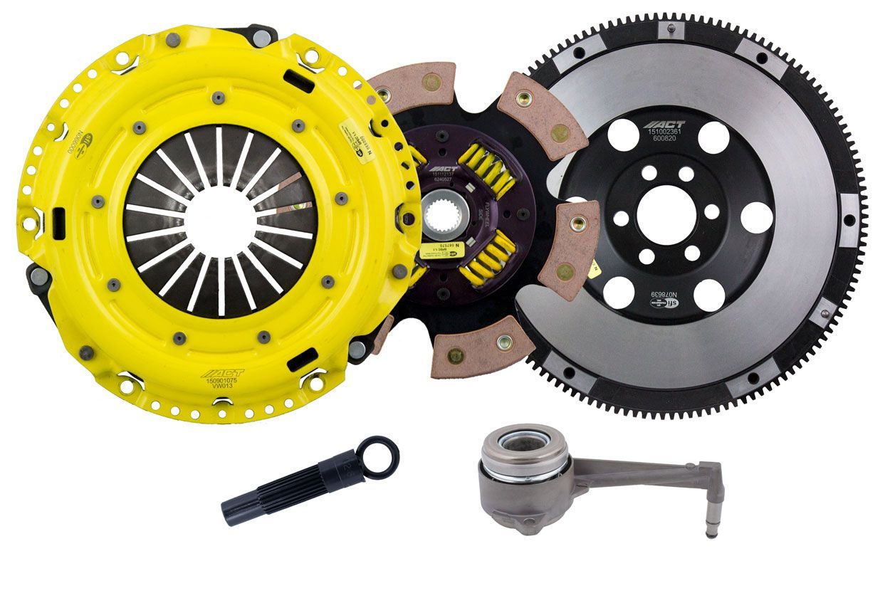 Advanced Clutch Transmission Clutch Kit - VW5-HDG6 ⚠ Check if this part fits your vehicle Select your vehicle to confirm fitment before you buy. Select vehicle Clutch Kit Manufacturer: Advanced Clutch $1,977.00 Qty: Add to cart Ship to Select country United States of America Afghanistan Åland Islands Albania Algeria American Samoa Andorra Angola Anguilla Antarctica Antigua and Barbuda Argentina Armenia Aruba Australia Austria Azerbaijan Bahamas Bahrain Bangladesh Barbados Belarus Belgium Belize Benin Bermuda Bhutan Bolivia (Plurinational State of) Bonaire, Sint Eustatius and Saba Bosnia and Herzegovina Botswana Bouvet Island Brazil British Indian Ocean Territory Brunei Darussalam Bulgaria Burkina Faso Burundi Cabo Verde Cambodia Cameroon Canada Cayman Islands Central African Republic Chad Chile China Christmas Island Cocos (Keeling) Islands Colombia Comoros Congo Congo (Democratic Republic of the) Cook Islands Costa Rica Côte d'Ivoire Croatia Cuba Curaçao Cyprus Czechia Denmark Djibouti Dominica Dominican Republic Ecuador Egypt El Salvador Equatorial Guinea Eritrea Estonia Eswatini Ethiopia Falkland Islands (Malvinas) Faroe Islands Fiji Finland France French Guiana French Polynesia French Southern Territories Gabon Gambia Georgia Germany Ghana Gibraltar Greece Greenland Grenada Guadeloupe Guam Guatemala Guernsey Guinea Guinea-Bissau Guyana Haiti Heard Island and McDonald Islands Holy See Honduras Hong Kong Hungary Iceland India Indonesia Iran (Islamic Republic of) Iraq Ireland Isle of Man Israel Italy Jamaica Japan Jersey Jordan Kazakhstan Kenya Kiribati Korea (Democratic People's Republic of) Korea (Republic of) Kuwait Kyrgyzstan Lao People's Democratic Republic Latvia Lebanon Lesotho Liberia Libya Liechtenstein Lithuania Luxembourg Macao Madagascar Malawi Malaysia Maldives Mali Malta Marshall Islands Martinique Mauritania Mauritius Mayotte Mexico Micronesia (Federated States of) Moldova (Republic of) Monaco Mongolia Montenegro Montserrat Morocco Mozambique Myanmar Namibia Nauru Nepal Netherlands New Caledonia New Zealand Nicaragua Niger Nigeria Niue Norfolk Island North Macedonia Northern Mariana Islands Norway Oman Pakistan Palau Palestine, State of Panama Papua New Guinea Paraguay Peru Philippines Pitcairn Poland Portugal Puerto Rico Qatar Réunion Romania Russian Federation Rwanda Saint Barthélemy Saint Helena, Ascension and Tristan da Cunha Saint Kitts and Nevis Saint Lucia Saint Martin (French part) Saint Pierre and Miquelon Saint Vincent and the Grenadines Samoa San Marino Sao Tome and Principe Saudi Arabia Senegal Serbia Seychelles Sierra Leone Singapore Sint Maarten (Dutch part) Slovakia Slovenia Solomon Islands Somalia South Africa South Georgia and the South Sandwich Islands South Sudan Spain Sri Lanka Sudan Suriname Svalbard and Jan Mayen Sweden Switzerland Syrian Arab Republic Taiwan, Province of China Tajikistan Tanzania, United Republic of Thailand Timor-Leste Togo Tokelau Tonga Trinidad and Tobago Tunisia Turkey Turkmenistan Turks and Caicos Islands Tuvalu Uganda Ukraine United Arab Emirates United Kingdom of Great Britain and Northern Ireland United States Minor Outlying Islands Uruguay Uzbekistan Vanuatu Venezuela (Bolivarian Republic of) Vietnam Virgin Islands (British) Virgin Islands (U.S.) Wallis and Futuna Western Sahara Yemen Zambia Zimbabwe * Other * Shipping Method Name Estimated Delivery Price No shipping options Apply Custom wishlist OK Add to wishlist Add to compare list Email a friend ACT Heavy Duty Race Sprung 6 Pad Clutch Kit Products specifications Attribute name Attribute value Input Shaft Diameter 0.9375 Input Spline Quantity 23 Clutch Disc Diameter 240, 9.4 Product Weight (lbs.) 30.2 Torque Capacity (ft/lbs.) 525 Torque Capacity Over OE 73% Disc Material Ceramic Pressure Plate Type Heavy Duty Part Fitment Requirement Must be used with ACT flywheel (included in kit). Flywheel bolts included (M10-1.0 x 22mm). Pressure plate bolts included (M8-1.25 x 16mm). Flywheel Type Streetlite Prop 65 - Short Label WARNING: Cancer and Reproductive Harm - www.p65warnings.ca.gov Prop 65 Long Label Warning: This product can expose you to chemicals including carbon black, glass wool fibers, or silica (in clutch discs), chromium and nickel, which are known to the State of California to cause cancer or birth defects or other reproductive harm. For more information, visit www.P65Warnings.ca.gov Flywheel Included Yes Release Bearing Included Yes Alignment Tool Included Yes Prop 65 Yes/No Yes Disc Type Sprung Solid Sprung Clutch Slave Cylinder Included No Flywheel Bolts Included Yes Clutch Master Cylinder Included No Pressure Plate Bolts Included Yes Grease Included Yes Grade Type Performance 🚗 Compatible with 17 vehicles are compatible with this product Year Make Model 2000 Audi TT Quattro 2001 Audi TT Quattro 2002 Audi TT Quattro 2003 Audi TT Quattro 2004 Audi TT Quattro 2005 Audi TT Quattro 2006 Audi TT Quattro 2002 Volkswagen Beetle 2002 Volkswagen Golf 2003 Volkswagen Beetle 2003 Volkswagen Golf 2004 Volkswagen Beetle 2004 Volkswagen Jetta 2005 Volkswagen Jetta 2002 Seat Toledo 2003 Seat Toledo 2004 Seat Toledo