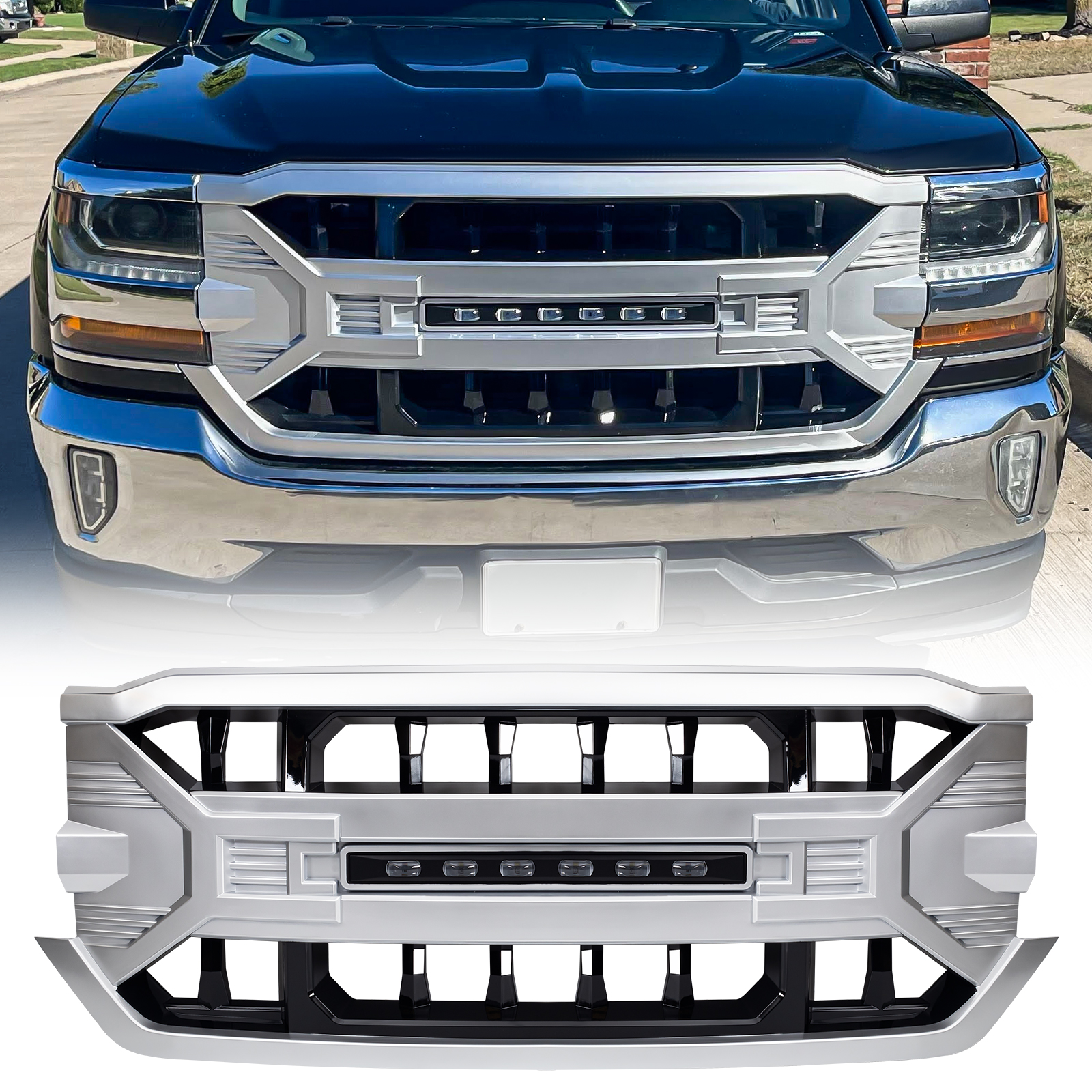 AMERICAN MODIFIED Grille - AMCHCA00120 ⚠ Check if this part fits your vehicle Select your vehicle to confirm fitment before you buy. Select vehicle Armor Grille Manufacturer: AMERICAN MODIFIED $428.99 Qty: Add to cart Ship to Select country United States of America Afghanistan Åland Islands Albania Algeria American Samoa Andorra Angola Anguilla Antarctica Antigua and Barbuda Argentina Armenia Aruba Australia Austria Azerbaijan Bahamas Bahrain Bangladesh Barbados Belarus Belgium Belize Benin Bermuda Bhutan Bolivia (Plurinational State of) Bonaire, Sint Eustatius and Saba Bosnia and Herzegovina Botswana Bouvet Island Brazil British Indian Ocean Territory Brunei Darussalam Bulgaria Burkina Faso Burundi Cabo Verde Cambodia Cameroon Canada Cayman Islands Central African Republic Chad Chile China Christmas Island Cocos (Keeling) Islands Colombia Comoros Congo Congo (Democratic Republic of the) Cook Islands Costa Rica Côte d'Ivoire Croatia Cuba Curaçao Cyprus Czechia Denmark Djibouti Dominica Dominican Republic Ecuador Egypt El Salvador Equatorial Guinea Eritrea Estonia Eswatini Ethiopia Falkland Islands (Malvinas) Faroe Islands Fiji Finland France French Guiana French Polynesia French Southern Territories Gabon Gambia Georgia Germany Ghana Gibraltar Greece Greenland Grenada Guadeloupe Guam Guatemala Guernsey Guinea Guinea-Bissau Guyana Haiti Heard Island and McDonald Islands Holy See Honduras Hong Kong Hungary Iceland India Indonesia Iran (Islamic Republic of) Iraq Ireland Isle of Man Israel Italy Jamaica Japan Jersey Jordan Kazakhstan Kenya Kiribati Korea (Democratic People's Republic of) Korea (Republic of) Kuwait Kyrgyzstan Lao People's Democratic Republic Latvia Lebanon Lesotho Liberia Libya Liechtenstein Lithuania Luxembourg Macao Madagascar Malawi Malaysia Maldives Mali Malta Marshall Islands Martinique Mauritania Mauritius Mayotte Mexico Micronesia (Federated States of) Moldova (Republic of) Monaco Mongolia Montenegro Montserrat Morocco Mozambique Myanmar Namibia Nauru Nepal Netherlands New Caledonia New Zealand Nicaragua Niger Nigeria Niue Norfolk Island North Macedonia Northern Mariana Islands Norway Oman Pakistan Palau Palestine, State of Panama Papua New Guinea Paraguay Peru Philippines Pitcairn Poland Portugal Puerto Rico Qatar Réunion Romania Russian Federation Rwanda Saint Barthélemy Saint Helena, Ascension and Tristan da Cunha Saint Kitts and Nevis Saint Lucia Saint Martin (French part) Saint Pierre and Miquelon Saint Vincent and the Grenadines Samoa San Marino Sao Tome and Principe Saudi Arabia Senegal Serbia Seychelles Sierra Leone Singapore Sint Maarten (Dutch part) Slovakia Slovenia Solomon Islands Somalia South Africa South Georgia and the South Sandwich Islands South Sudan Spain Sri Lanka Sudan Suriname Svalbard and Jan Mayen Sweden Switzerland Syrian Arab Republic Taiwan, Province of China Tajikistan Tanzania, United Republic of Thailand Timor-Leste Togo Tokelau Tonga Trinidad and Tobago Tunisia Turkey Turkmenistan Turks and Caicos Islands Tuvalu Uganda Ukraine United Arab Emirates United Kingdom of Great Britain and Northern Ireland United States Minor Outlying Islands Uruguay Uzbekistan Vanuatu Venezuela (Bolivarian Republic of) Vietnam Virgin Islands (British) Virgin Islands (U.S.) Wallis and Futuna Western Sahara Yemen Zambia Zimbabwe * Other * Shipping Method Name Estimated Delivery Price No shipping options Apply Custom wishlist OK Add to wishlist Add to compare list Email a friend Armor Grille with Off-Road Lights - Black and Silver Products specifications Attribute name Attribute value Prop 65 Yes/No Yes Prop 65 (C, R or CR) CR Prop 65 - Short Label WARNING: Cancer and Reproductive Harm - www.p65warnings.ca.gov Prop 65 Warning Label Warning - Both Cancer and Reproduction.JPG Material ABS Plastic Installation Time 30 Minutes Finish Black And Silver 🚗 Compatible with 4 vehicles are compatible with this product Year Make Model 2016 Chevrolet Silverado 1500 2017 Chevrolet Silverado 1500 2018 Chevrolet Silverado 1500 2019 Chevrolet Silverado 1500 LD