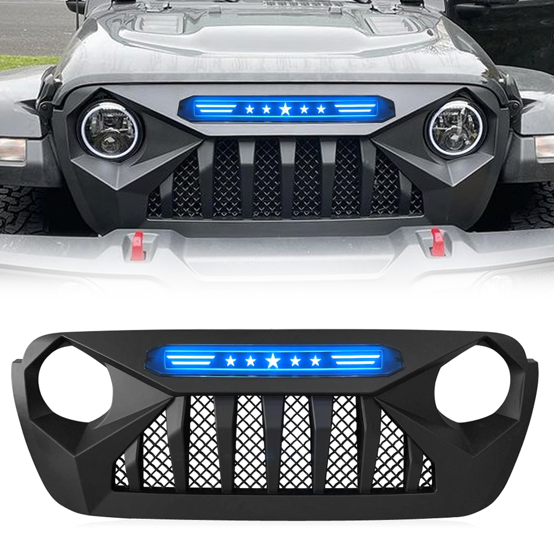 AMERICAN MODIFIED Grille - AMJPCA00112 ⚠ Check if this part fits your vehicle Select your vehicle to confirm fitment before you buy. Select vehicle Demon Grille Manufacturer: AMERICAN MODIFIED $239.99 Qty: Add to cart Ship to Select country United States of America Afghanistan Åland Islands Albania Algeria American Samoa Andorra Angola Anguilla Antarctica Antigua and Barbuda Argentina Armenia Aruba Australia Austria Azerbaijan Bahamas Bahrain Bangladesh Barbados Belarus Belgium Belize Benin Bermuda Bhutan Bolivia (Plurinational State of) Bonaire, Sint Eustatius and Saba Bosnia and Herzegovina Botswana Bouvet Island Brazil British Indian Ocean Territory Brunei Darussalam Bulgaria Burkina Faso Burundi Cabo Verde Cambodia Cameroon Canada Cayman Islands Central African Republic Chad Chile China Christmas Island Cocos (Keeling) Islands Colombia Comoros Congo Congo (Democratic Republic of the) Cook Islands Costa Rica Côte d'Ivoire Croatia Cuba Curaçao Cyprus Czechia Denmark Djibouti Dominica Dominican Republic Ecuador Egypt El Salvador Equatorial Guinea Eritrea Estonia Eswatini Ethiopia Falkland Islands (Malvinas) Faroe Islands Fiji Finland France French Guiana French Polynesia French Southern Territories Gabon Gambia Georgia Germany Ghana Gibraltar Greece Greenland Grenada Guadeloupe Guam Guatemala Guernsey Guinea Guinea-Bissau Guyana Haiti Heard Island and McDonald Islands Holy See Honduras Hong Kong Hungary Iceland India Indonesia Iran (Islamic Republic of) Iraq Ireland Isle of Man Israel Italy Jamaica Japan Jersey Jordan Kazakhstan Kenya Kiribati Korea (Democratic People's Republic of) Korea (Republic of) Kuwait Kyrgyzstan Lao People's Democratic Republic Latvia Lebanon Lesotho Liberia Libya Liechtenstein Lithuania Luxembourg Macao Madagascar Malawi Malaysia Maldives Mali Malta Marshall Islands Martinique Mauritania Mauritius Mayotte Mexico Micronesia (Federated States of) Moldova (Republic of) Monaco Mongolia Montenegro Montserrat Morocco Mozambique Myanmar Namibia Nauru Nepal Netherlands New Caledonia New Zealand Nicaragua Niger Nigeria Niue Norfolk Island North Macedonia Northern Mariana Islands Norway Oman Pakistan Palau Palestine, State of Panama Papua New Guinea Paraguay Peru Philippines Pitcairn Poland Portugal Puerto Rico Qatar Réunion Romania Russian Federation Rwanda Saint Barthélemy Saint Helena, Ascension and Tristan da Cunha Saint Kitts and Nevis Saint Lucia Saint Martin (French part) Saint Pierre and Miquelon Saint Vincent and the Grenadines Samoa San Marino Sao Tome and Principe Saudi Arabia Senegal Serbia Seychelles Sierra Leone Singapore Sint Maarten (Dutch part) Slovakia Slovenia Solomon Islands Somalia South Africa South Georgia and the South Sandwich Islands South Sudan Spain Sri Lanka Sudan Suriname Svalbard and Jan Mayen Sweden Switzerland Syrian Arab Republic Taiwan, Province of China Tajikistan Tanzania, United Republic of Thailand Timor-Leste Togo Tokelau Tonga Trinidad and Tobago Tunisia Turkey Turkmenistan Turks and Caicos Islands Tuvalu Uganda Ukraine United Arab Emirates United Kingdom of Great Britain and Northern Ireland United States Minor Outlying Islands Uruguay Uzbekistan Vanuatu Venezuela (Bolivarian Republic of) Vietnam Virgin Islands (British) Virgin Islands (U.S.) Wallis and Futuna Western Sahara Yemen Zambia Zimbabwe * Other * Shipping Method Name Estimated Delivery Price No shipping options Apply Custom wishlist OK Add to wishlist Add to compare list Email a friend Demon Grille with Blue 5 Star Lights Bar Products specifications Attribute name Attribute value Finish Matte Black Material ABS Plastic Installation Time 30 Minutes Prop 65 (C, R or CR) CR Prop 65 Warning Label Warning - Both Cancer and Reproduction.JPG Prop 65 - Short Label WARNING: Cancer and Reproductive Harm - www.p65warnings.ca.gov Prop 65 Yes/No Yes 🚗 Compatible with 12 vehicles are compatible with this product Year Make Model 2018 Jeep Wrangler 2019 Jeep Wrangler 2020 Jeep Gladiator 2020 Jeep Wrangler 2021 Jeep Gladiator 2021 Jeep Wrangler 2022 Jeep Wrangler 2022 Jeep Gladiator 2023 Jeep Gladiator 2023 Jeep Wrangler 2024 Jeep Wrangler 2024 Jeep Gladiator
