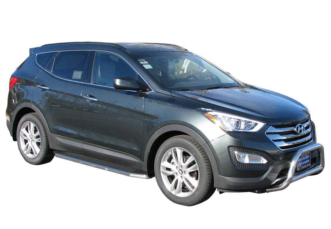 Steelcraft Running Board Set - 170700 ⚠ Check if this part fits your vehicle Select your vehicle to confirm fitment before you buy. Select vehicle STX100 Running Boards - Black/Stainless Manufacturer: Steelcraft $0.00 Qty: Add to cart Ship to Select country United States of America Afghanistan Åland Islands Albania Algeria American Samoa Andorra Angola Anguilla Antarctica Antigua and Barbuda Argentina Armenia Aruba Australia Austria Azerbaijan Bahamas Bahrain Bangladesh Barbados Belarus Belgium Belize Benin Bermuda Bhutan Bolivia (Plurinational State of) Bonaire, Sint Eustatius and Saba Bosnia and Herzegovina Botswana Bouvet Island Brazil British Indian Ocean Territory Brunei Darussalam Bulgaria Burkina Faso Burundi Cabo Verde Cambodia Cameroon Canada Cayman Islands Central African Republic Chad Chile China Christmas Island Cocos (Keeling) Islands Colombia Comoros Congo Congo (Democratic Republic of the) Cook Islands Costa Rica Côte d'Ivoire Croatia Cuba Curaçao Cyprus Czechia Denmark Djibouti Dominica Dominican Republic Ecuador Egypt El Salvador Equatorial Guinea Eritrea Estonia Eswatini Ethiopia Falkland Islands (Malvinas) Faroe Islands Fiji Finland France French Guiana French Polynesia French Southern Territories Gabon Gambia Georgia Germany Ghana Gibraltar Greece Greenland Grenada Guadeloupe Guam Guatemala Guernsey Guinea Guinea-Bissau Guyana Haiti Heard Island and McDonald Islands Holy See Honduras Hong Kong Hungary Iceland India Indonesia Iran (Islamic Republic of) Iraq Ireland Isle of Man Israel Italy Jamaica Japan Jersey Jordan Kazakhstan Kenya Kiribati Korea (Democratic People's Republic of) Korea (Republic of) Kuwait Kyrgyzstan Lao People's Democratic Republic Latvia Lebanon Lesotho Liberia Libya Liechtenstein Lithuania Luxembourg Macao Madagascar Malawi Malaysia Maldives Mali Malta Marshall Islands Martinique Mauritania Mauritius Mayotte Mexico Micronesia (Federated States of) Moldova (Republic of) Monaco Mongolia Montenegro Montserrat Morocco Mozambique Myanmar Namibia Nauru Nepal Netherlands New Caledonia New Zealand Nicaragua Niger Nigeria Niue Norfolk Island North Macedonia Northern Mariana Islands Norway Oman Pakistan Palau Palestine, State of Panama Papua New Guinea Paraguay Peru Philippines Pitcairn Poland Portugal Puerto Rico Qatar Réunion Romania Russian Federation Rwanda Saint Barthélemy Saint Helena, Ascension and Tristan da Cunha Saint Kitts and Nevis Saint Lucia Saint Martin (French part) Saint Pierre and Miquelon Saint Vincent and the Grenadines Samoa San Marino Sao Tome and Principe Saudi Arabia Senegal Serbia Seychelles Sierra Leone Singapore Sint Maarten (Dutch part) Slovakia Slovenia Solomon Islands Somalia South Africa South Georgia and the South Sandwich Islands South Sudan Spain Sri Lanka Sudan Suriname Svalbard and Jan Mayen Sweden Switzerland Syrian Arab Republic Taiwan, Province of China Tajikistan Tanzania, United Republic of Thailand Timor-Leste Togo Tokelau Tonga Trinidad and Tobago Tunisia Turkey Turkmenistan Turks and Caicos Islands Tuvalu Uganda Ukraine United Arab Emirates United Kingdom of Great Britain and Northern Ireland United States Minor Outlying Islands Uruguay Uzbekistan Vanuatu Venezuela (Bolivarian Republic of) Vietnam Virgin Islands (British) Virgin Islands (U.S.) Wallis and Futuna Western Sahara Yemen Zambia Zimbabwe * Other * Shipping Method Name Estimated Delivery Price No shipping options Apply Custom wishlist OK Add to wishlist Add to compare list Email a friend The Steelcraft STX100 running boards are the perfect accessory for a classy look on your SUV. Steelcraft is a top notch manufacturer that makes quality products that you will be proud to own. These STX100 running boards will enhance the appearance of your vehicle and allow you to have a safe entry and exit each and every time. The STX100 running boards include a six inch step surface and are made from full length heavy duty aluminum for extra strength. These running boards are made for an exact fitment to your vehicle and include heavy duty brackets that fit your specific vehicle. Don't worry about slippery plastic with these boards. They are covered with quality black rubber that allows for a non-slip surface. The Steelcraft STX100 running boards include a polished stainless steel protective trim that will give your vehicle a finishing look. If you want a quality piece that will last and withstand the elements then you need the STX100 running boards. Products specifications Attribute name Attribute value Drilling Required No Finish Black/Stainless Steel Trim Illuminated No Mount Rocker Mounting Hardware Included Yes Prop 65 - Short Label WARNING: Cancer and Reproductive Harm - www.p65warnings.ca.gov Prop 65 (C, R or CR) CR Prop 65 Warning Label Warning - Both Cancer and Reproduction.JPG Prop 65 Yes/No Yes Step Pad Color Black Step Pads Included Yes Country of Origin CN Condition New 🚗 Compatible with 4 vehicles are compatible with this product Year Make Model 2013 Hyundai Santa Fe Sport 2014 Hyundai Santa Fe Sport 2015 Hyundai Santa Fe Sport 2016 Hyundai Santa Fe Sport